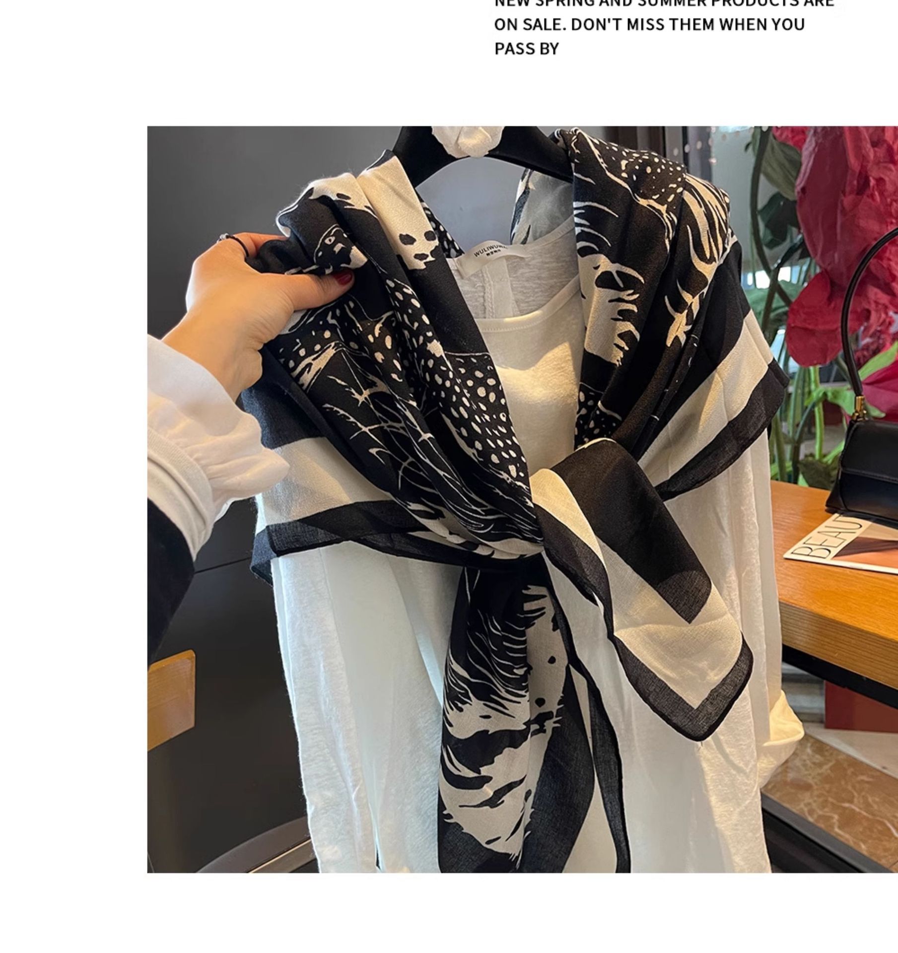 간단한 흑백 레오파드 리넨 손으로 느끼는 큰 광장 스카프 여성의 봄과 여름 여행 사진 외부 목도리 스카프 이중 사용스토어 가기