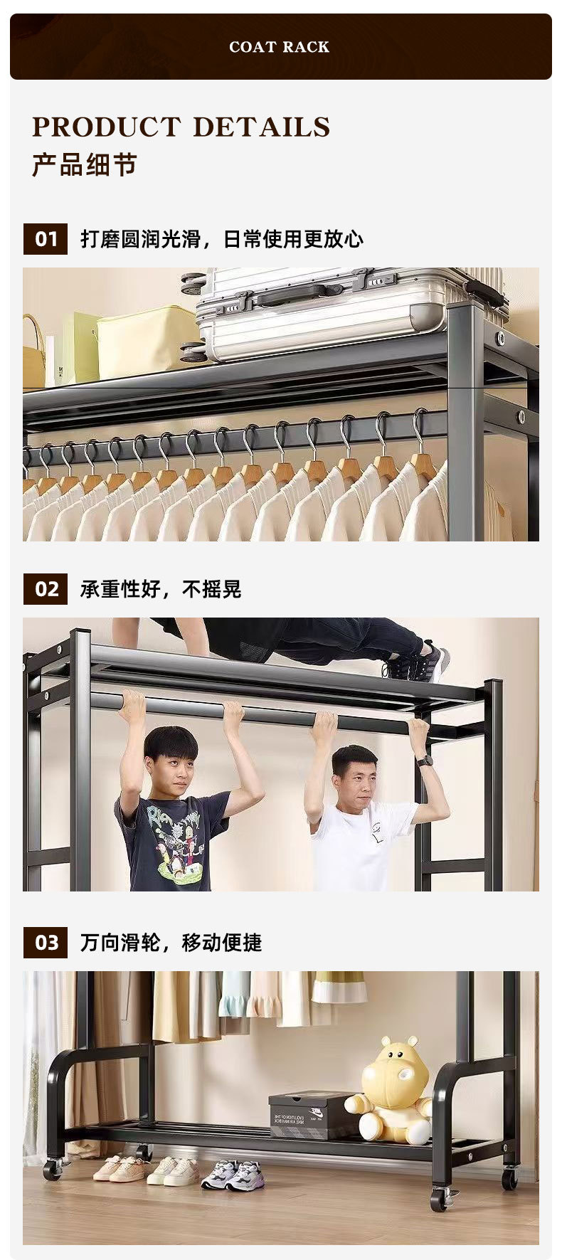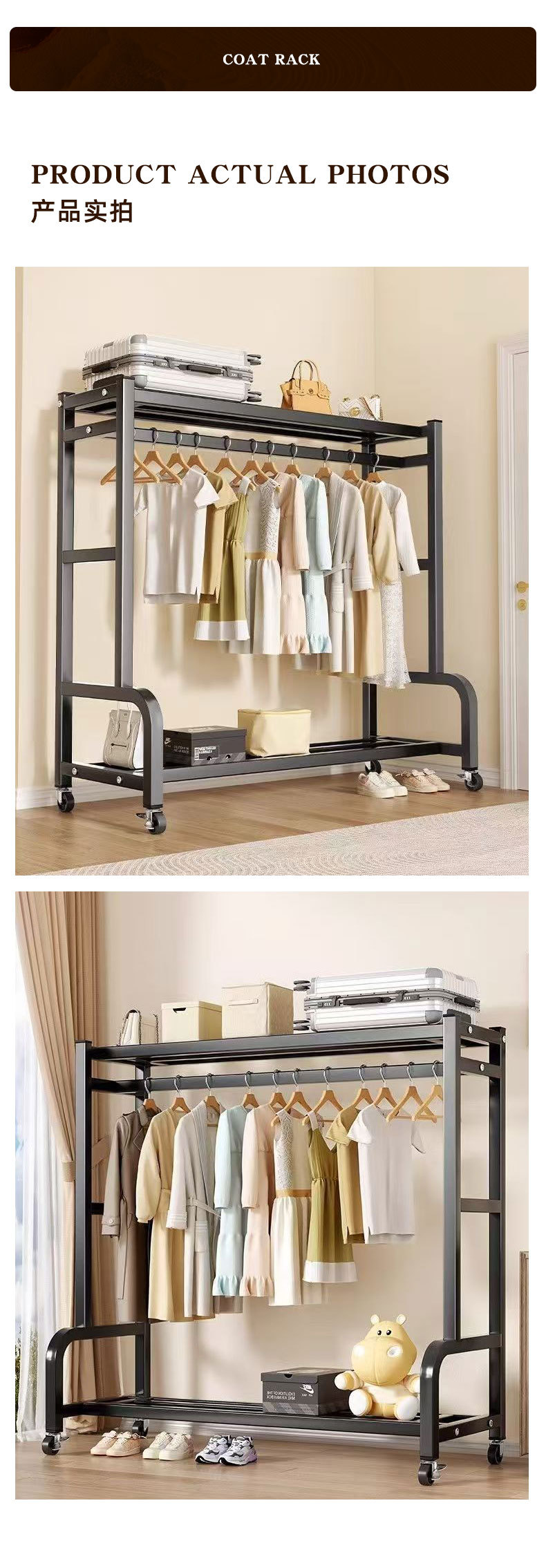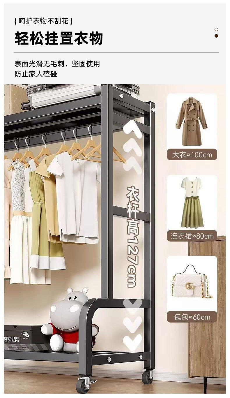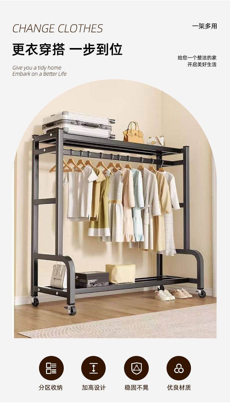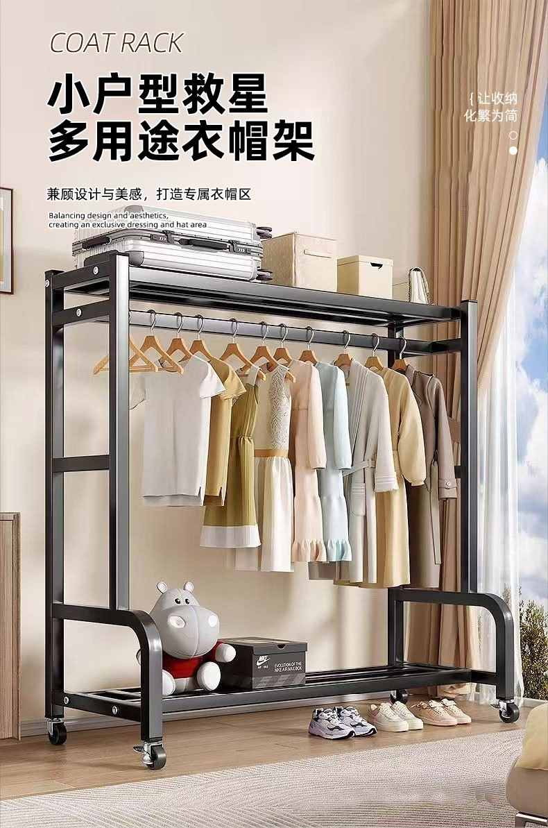 이동식 바닥 옷걸이 대용량 수납 선반 가정용 침실 임대용 옷걸이 수납 행거