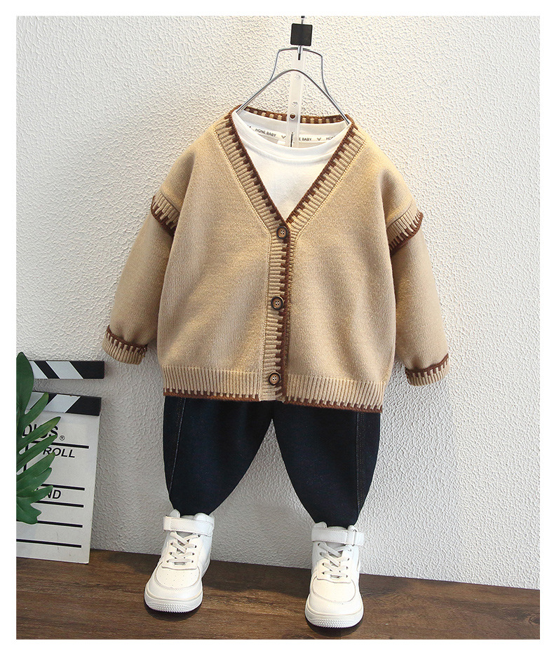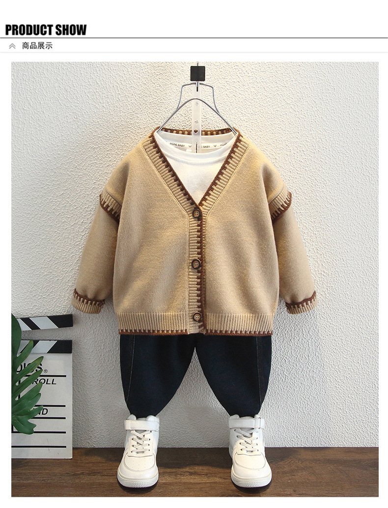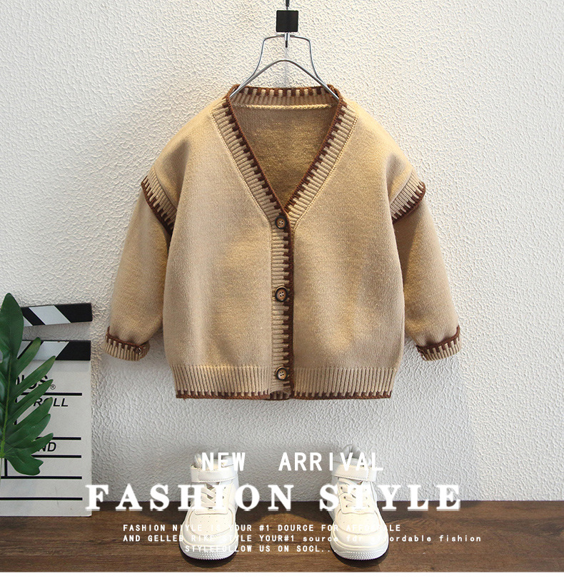 소년 니트 카디건 2025 새로운 어린이 스웨터 코트 봄과 가을 아기의 서양식 탑 어린이 튀김 거리 봄 원피스스토어 가기