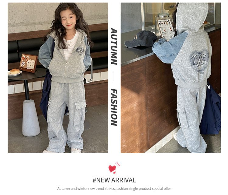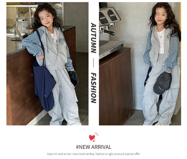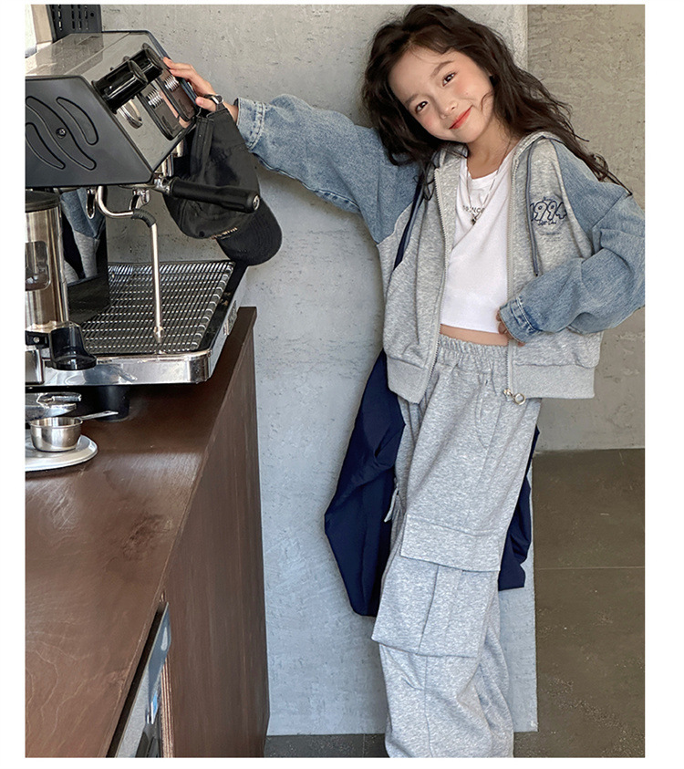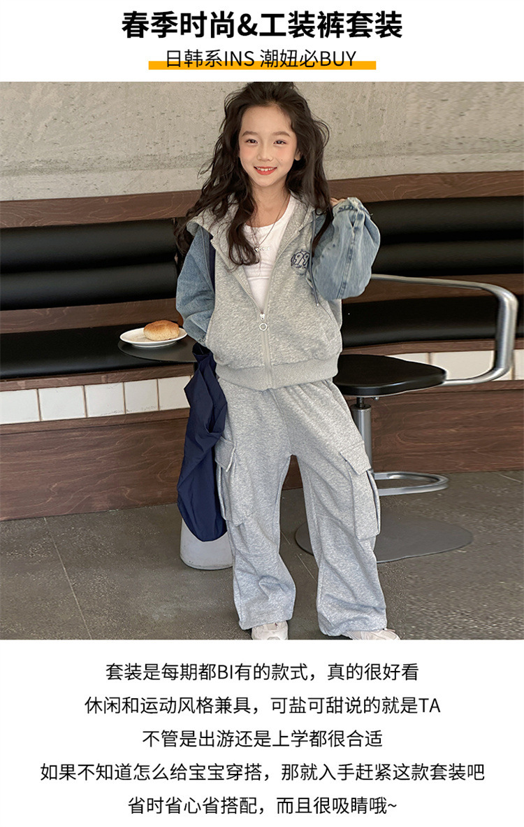 여자 세트 봄 한국 스타일 아동복 스포츠 인터넷 인기 캐주얼 자켓 학생 소녀 오버홀 후주 질리스토어 가기
