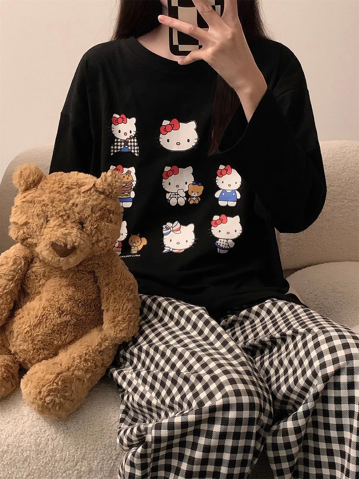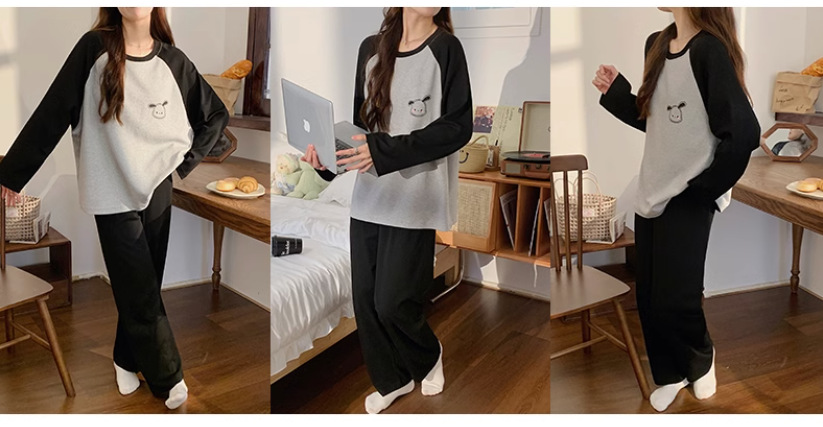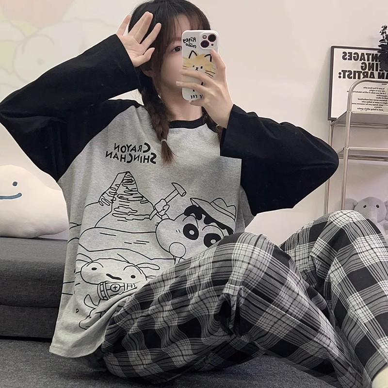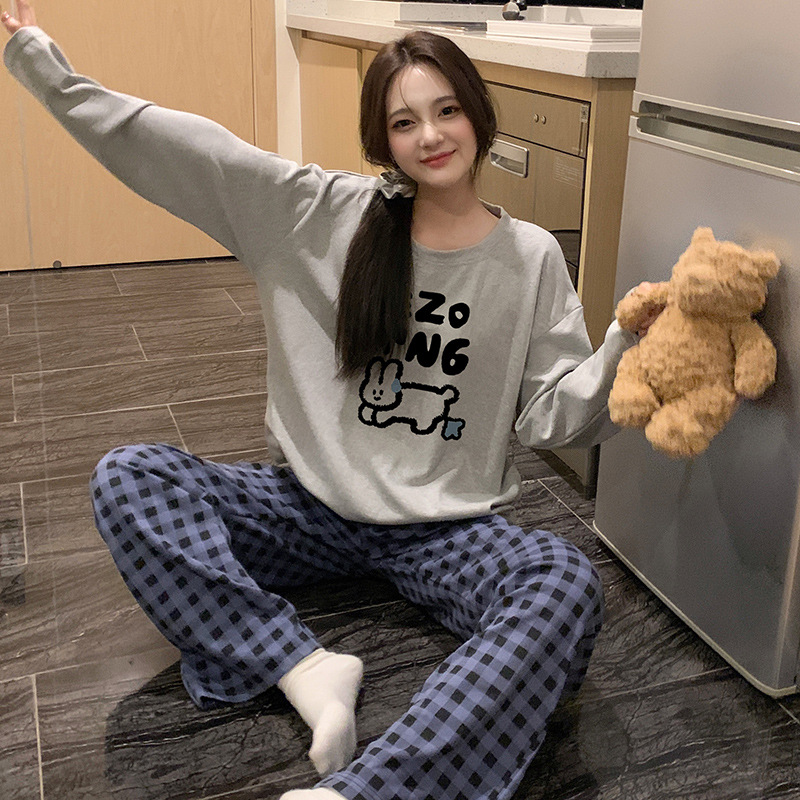 국경 봄과 가을 한국 스타일 잠옷 여성 긴 소매 라이브 만화 귀여운 패션 홈 의류 세트스토어 가기