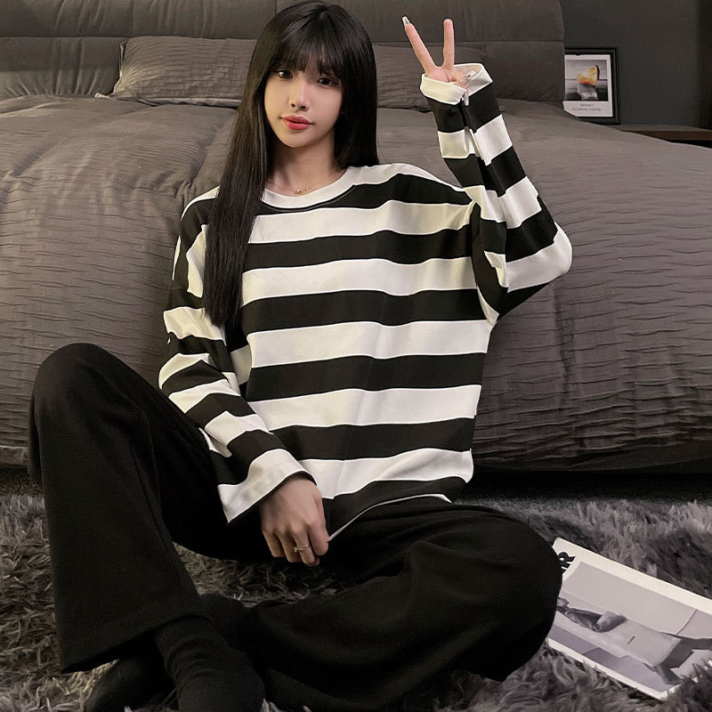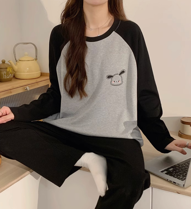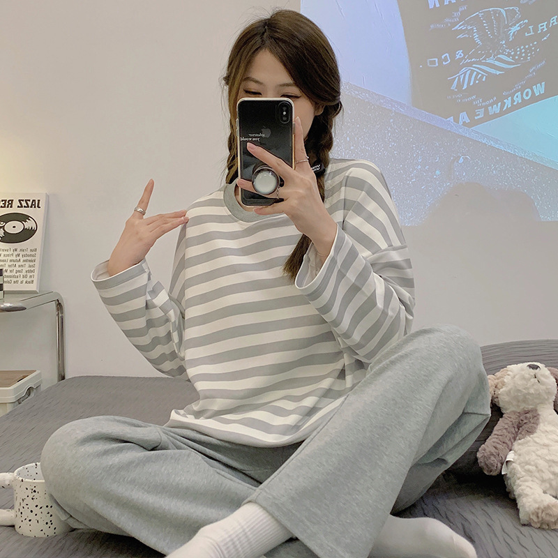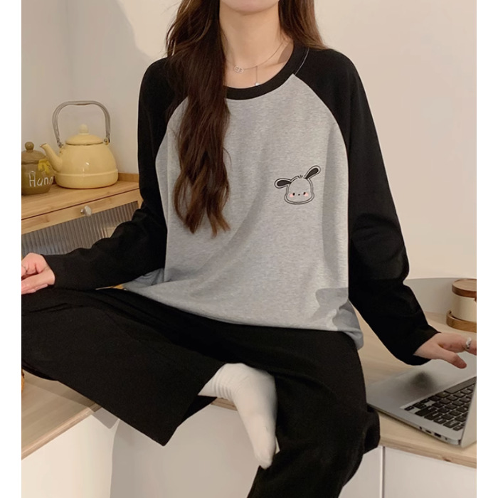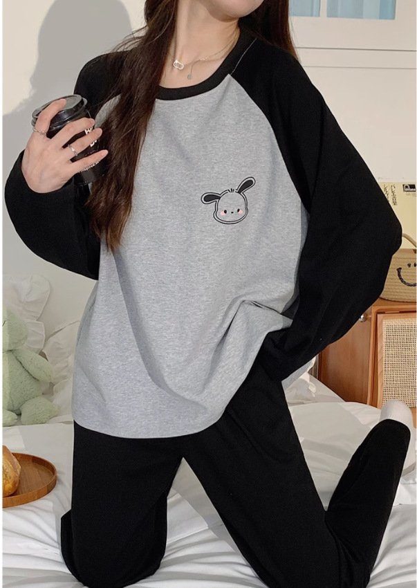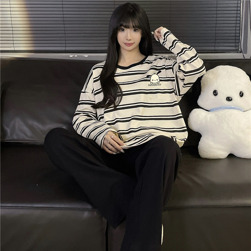 국경 봄과 가을 한국 스타일 잠옷 여성 긴 소매 라이브 만화 귀여운 패션 홈 의류 세트