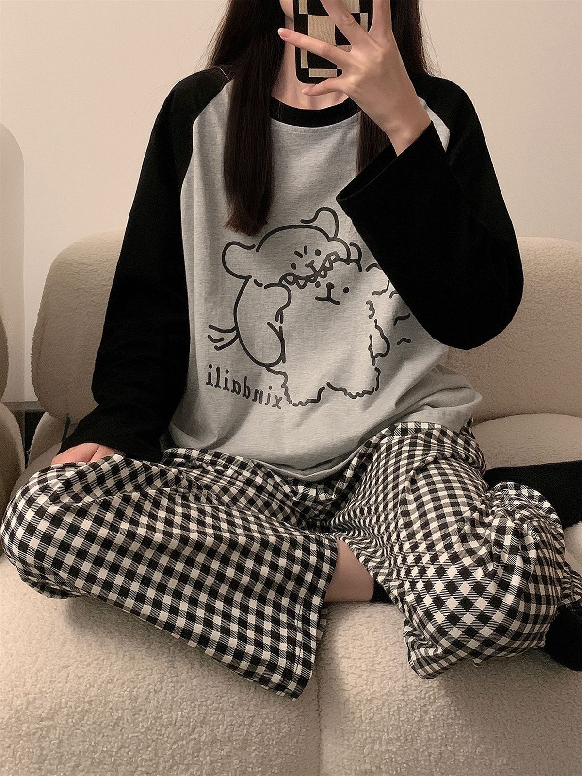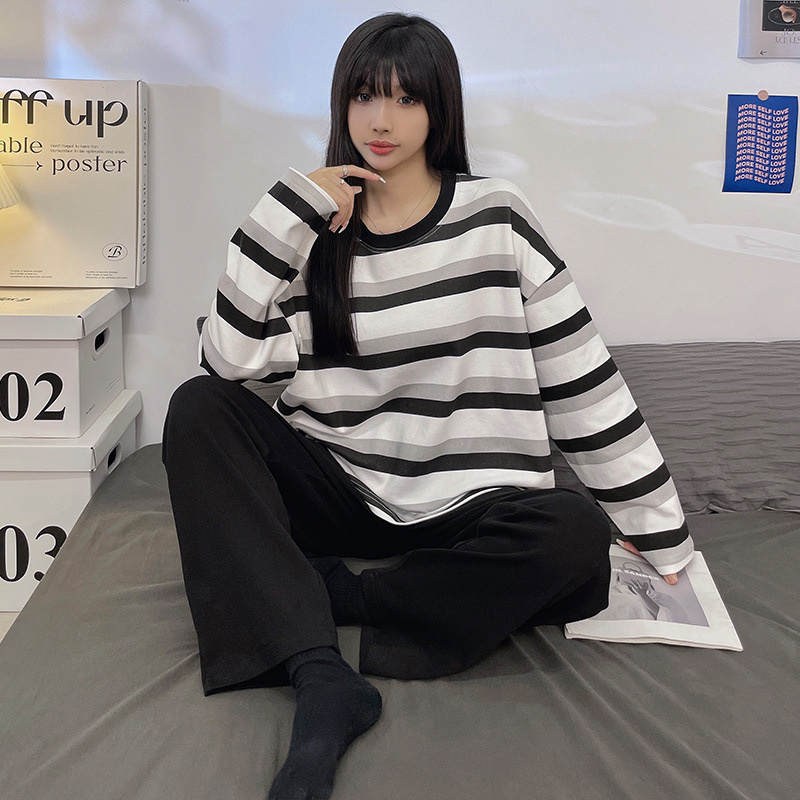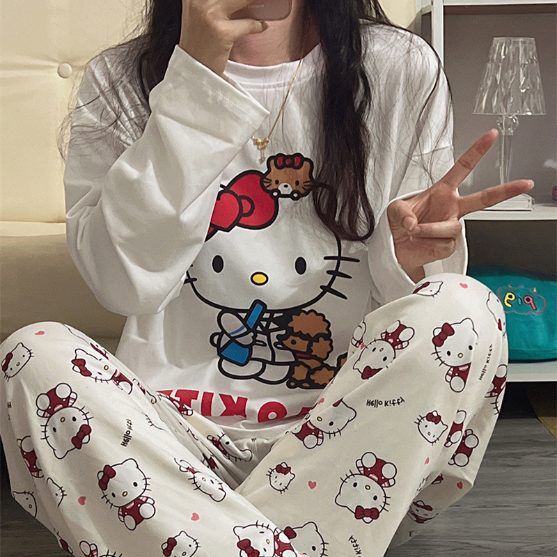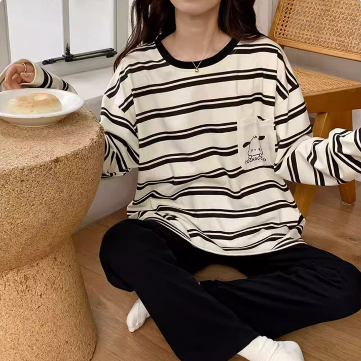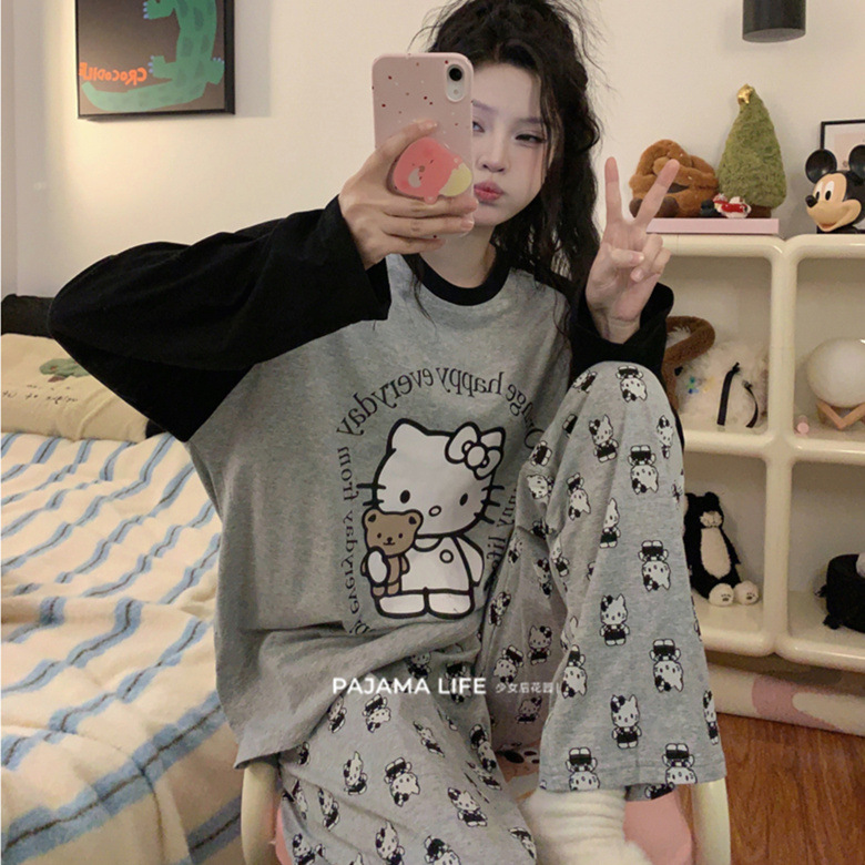 국경 봄과 가을 한국 스타일 잠옷 여성 긴 소매 라이브 만화 귀여운 패션 홈 의류 세트