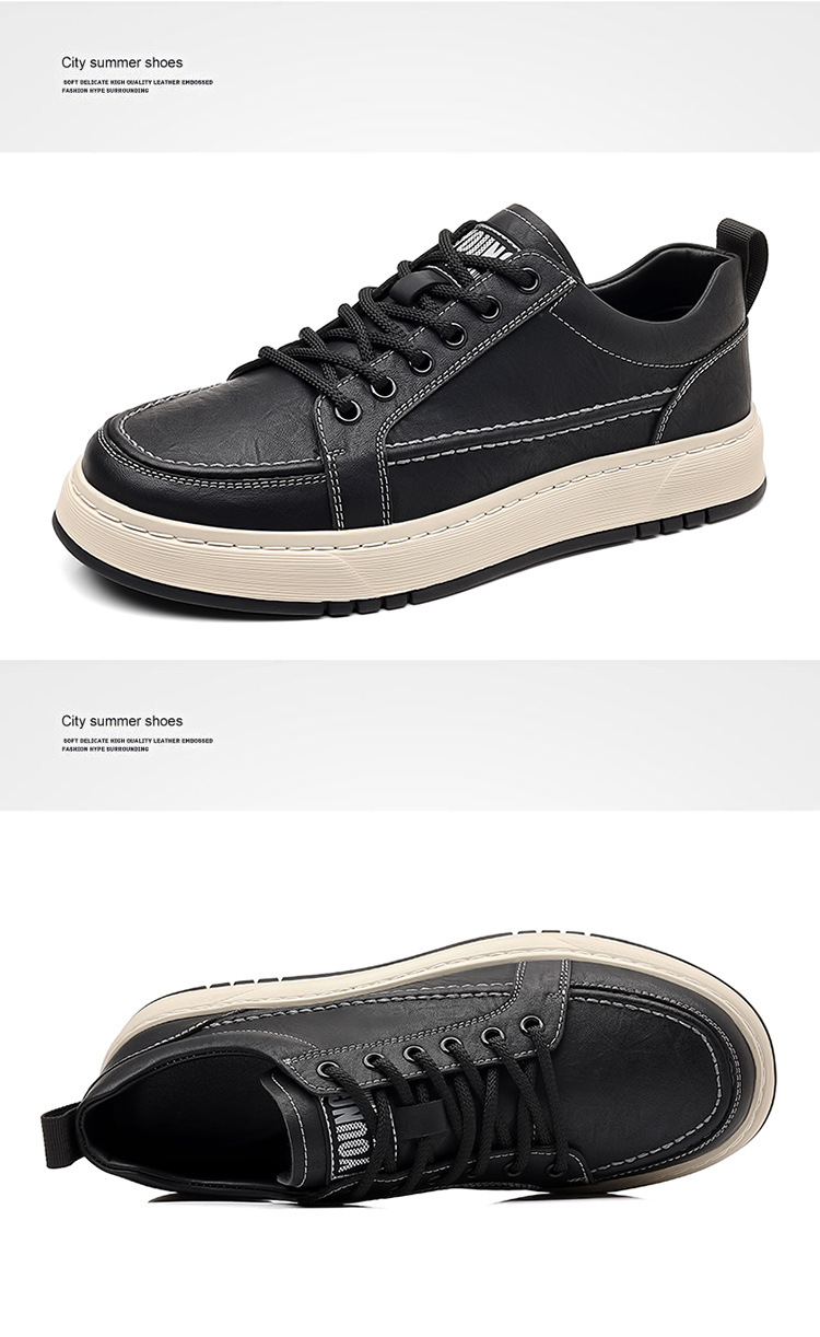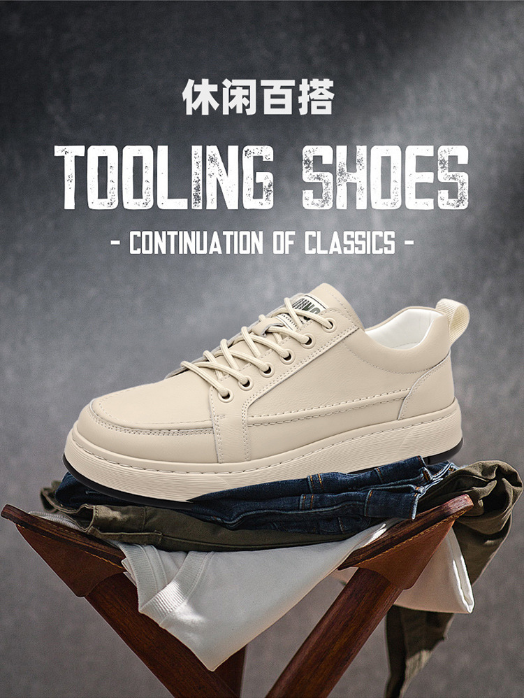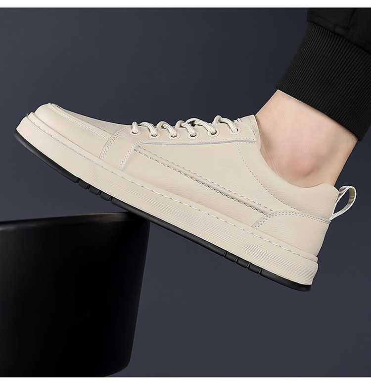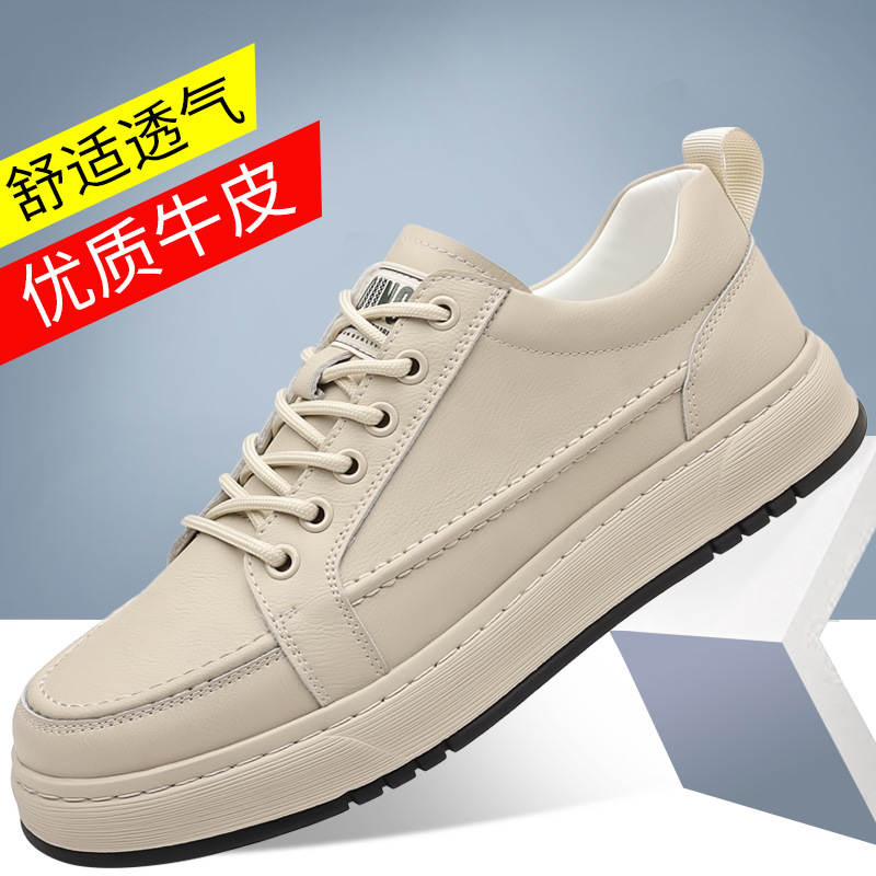 남성용 신발 2025 새로운 봄 남성 트렌디 한 올 매치 캐주얼 스포츠 신발 소프트 하단 가죽 방수 두꺼운 운동화