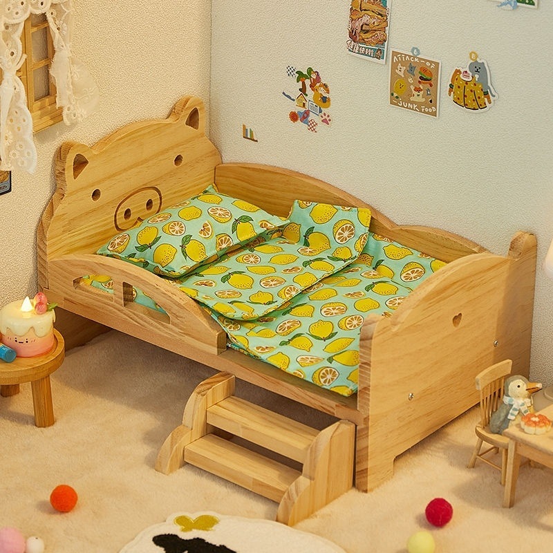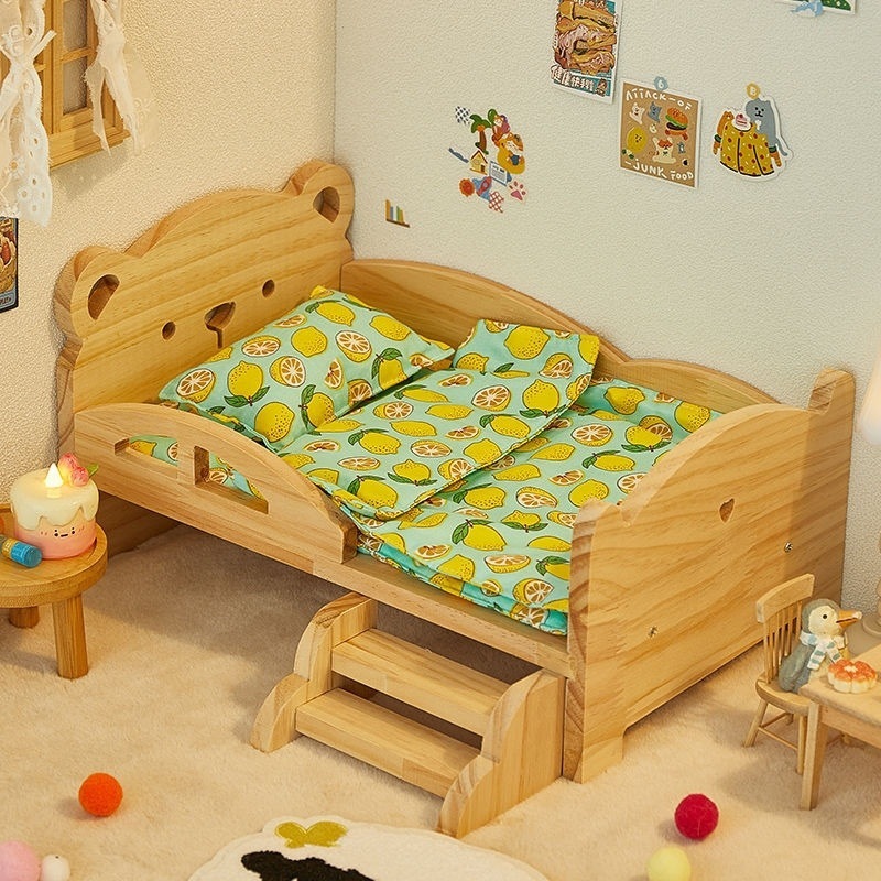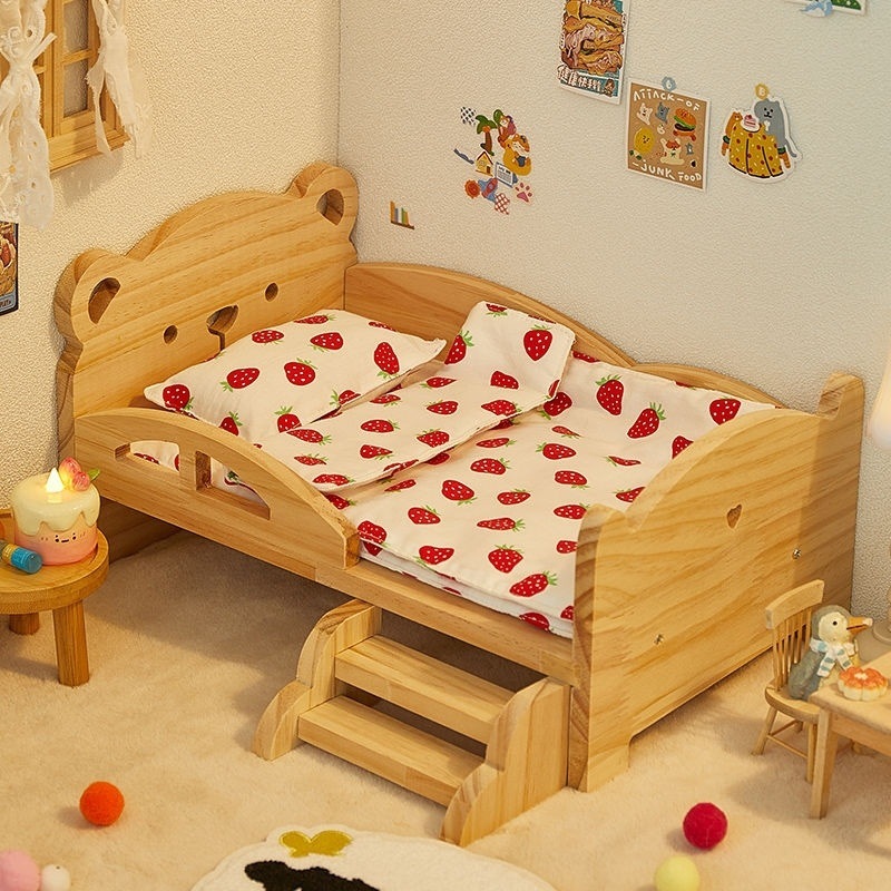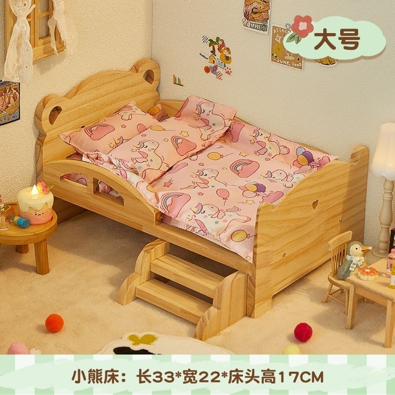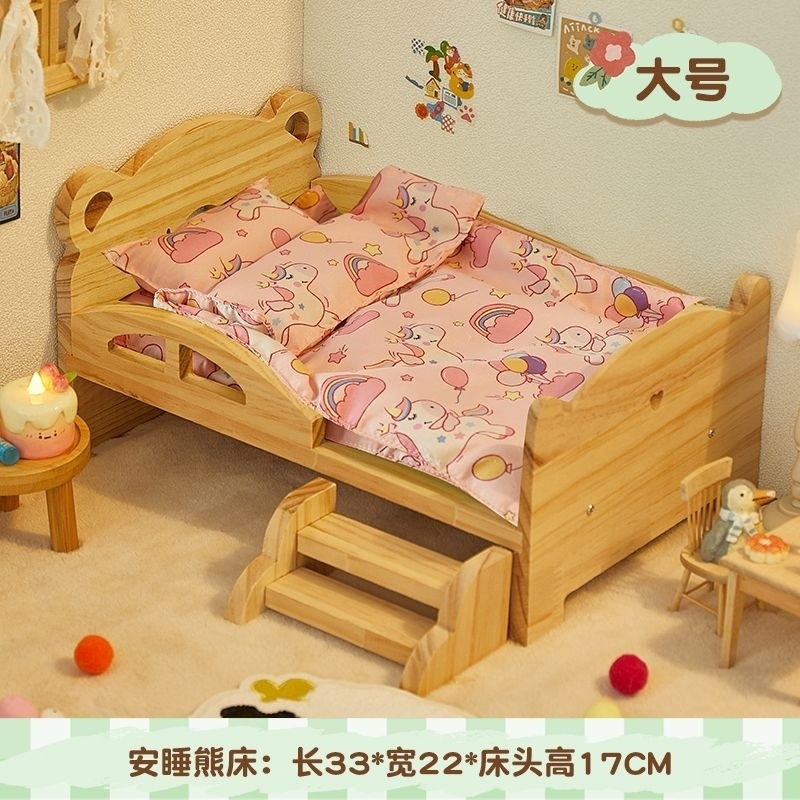 아기 침대 20cm 면 인형 가구 인형 침구 3 피스 ob11 인형 놀이 집 bjd 단단한 나무 아기 침대