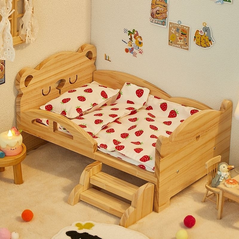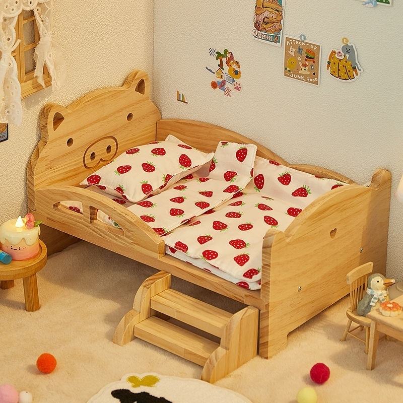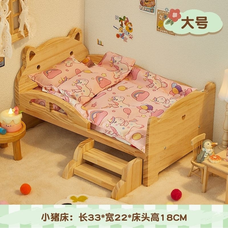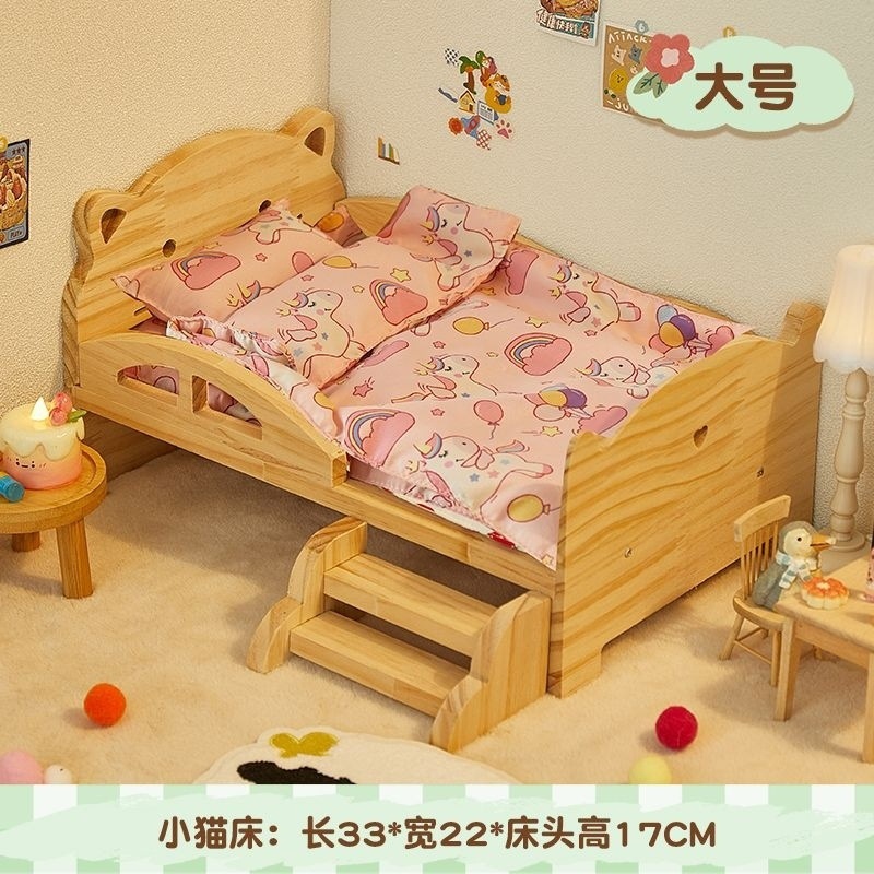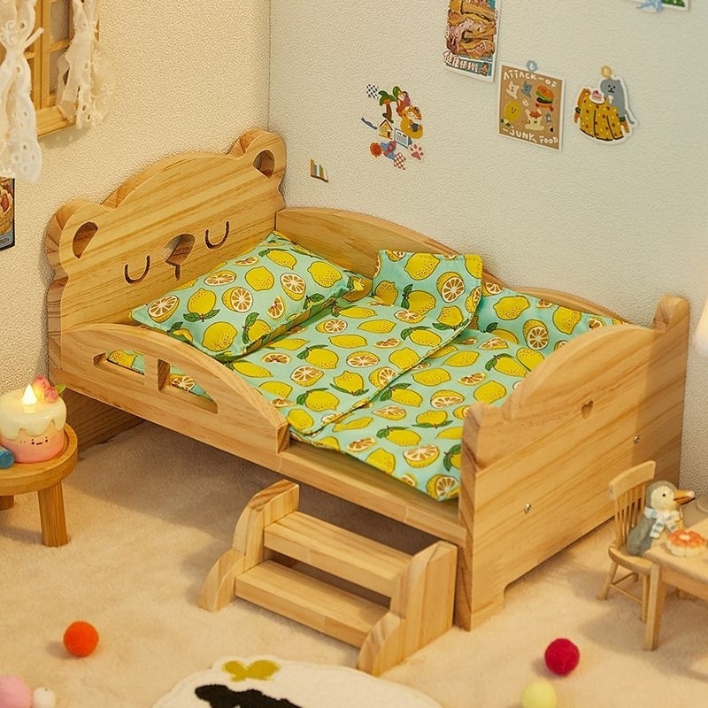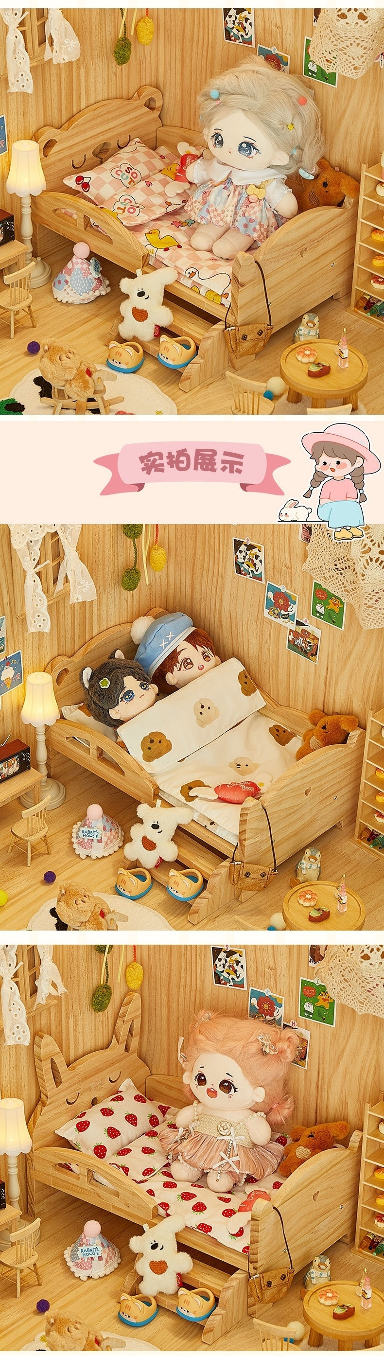 아기 침대 20cm 면 인형 가구 인형 침구 3 피스 ob11 인형 놀이 집 bjd 단단한 나무 아기 침대