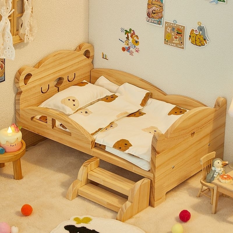 아기 침대 20cm 면 인형 가구 인형 침구 3 피스 ob11 인형 놀이 집 bjd 단단한 나무 아기 침대스토어 가기