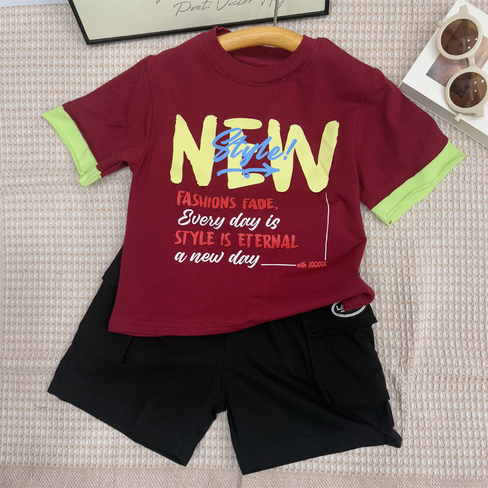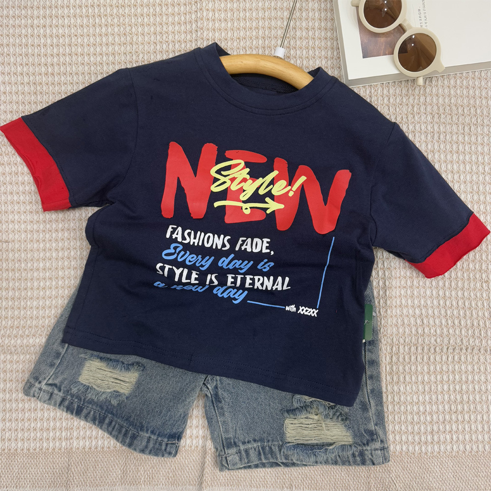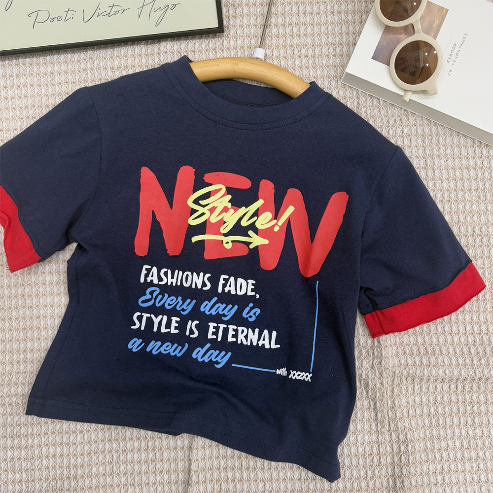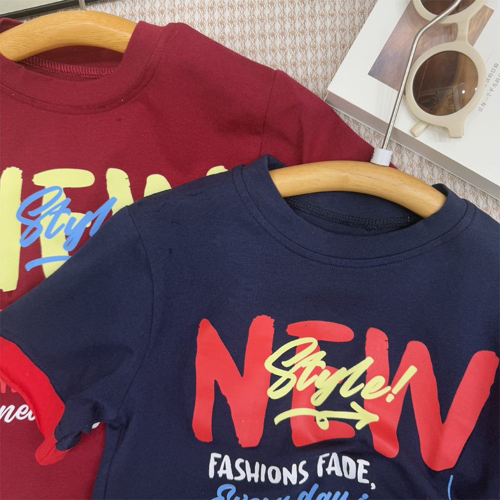 어린이 여름 가짜 투피스 반팔 2025 새로운 도착 남녀 반팔 티셔츠 유행 한국 인쇄 트렌디 쿨 올 매치 T스토어 가기