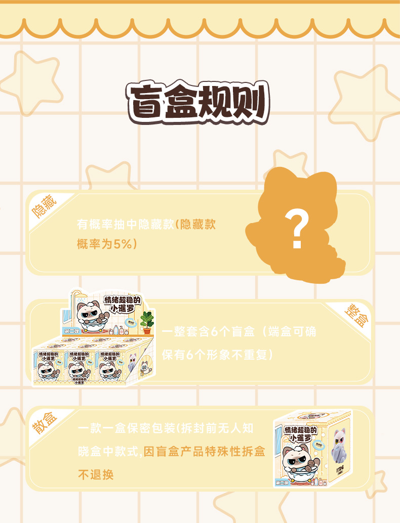 【商品名称】1040-306情绪稳定的小暹罗第二弹盲盒 【商品材质】植绒