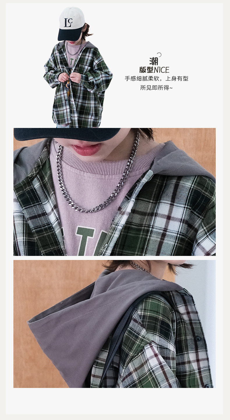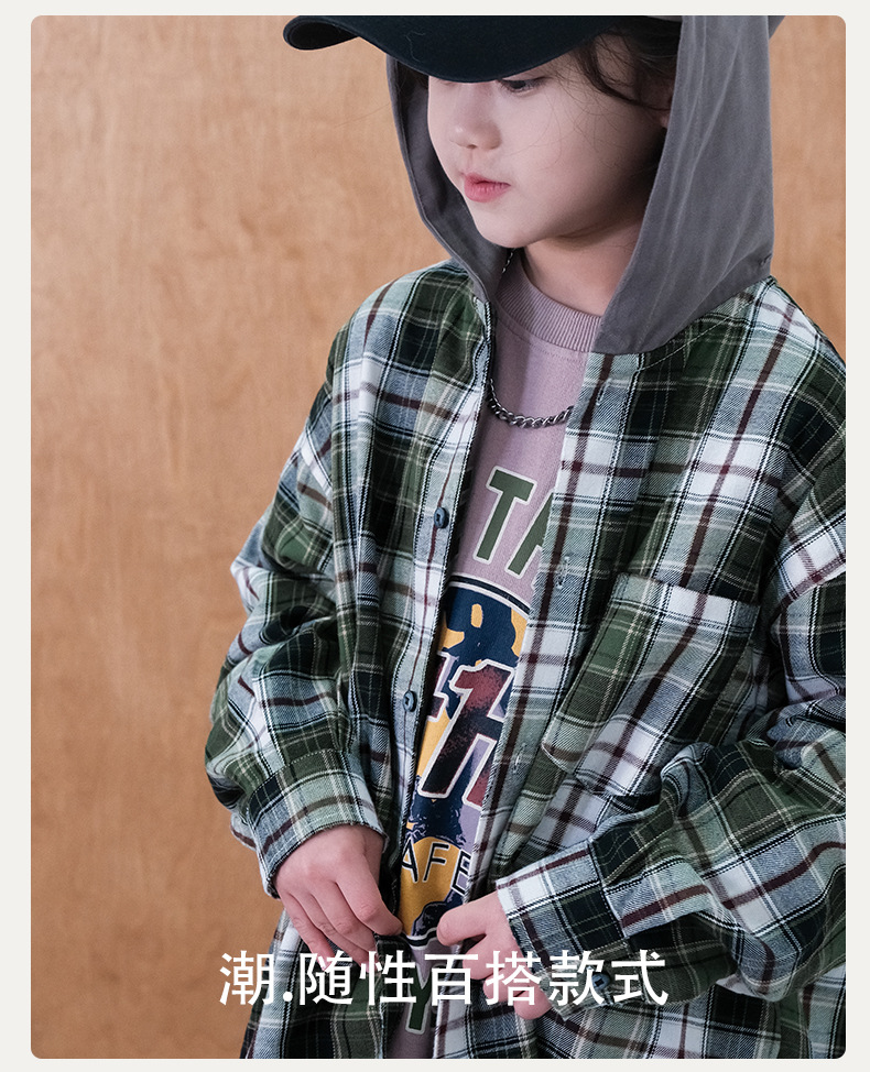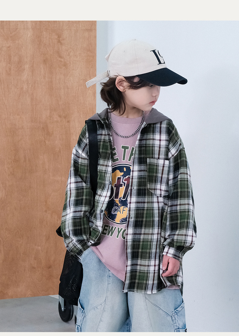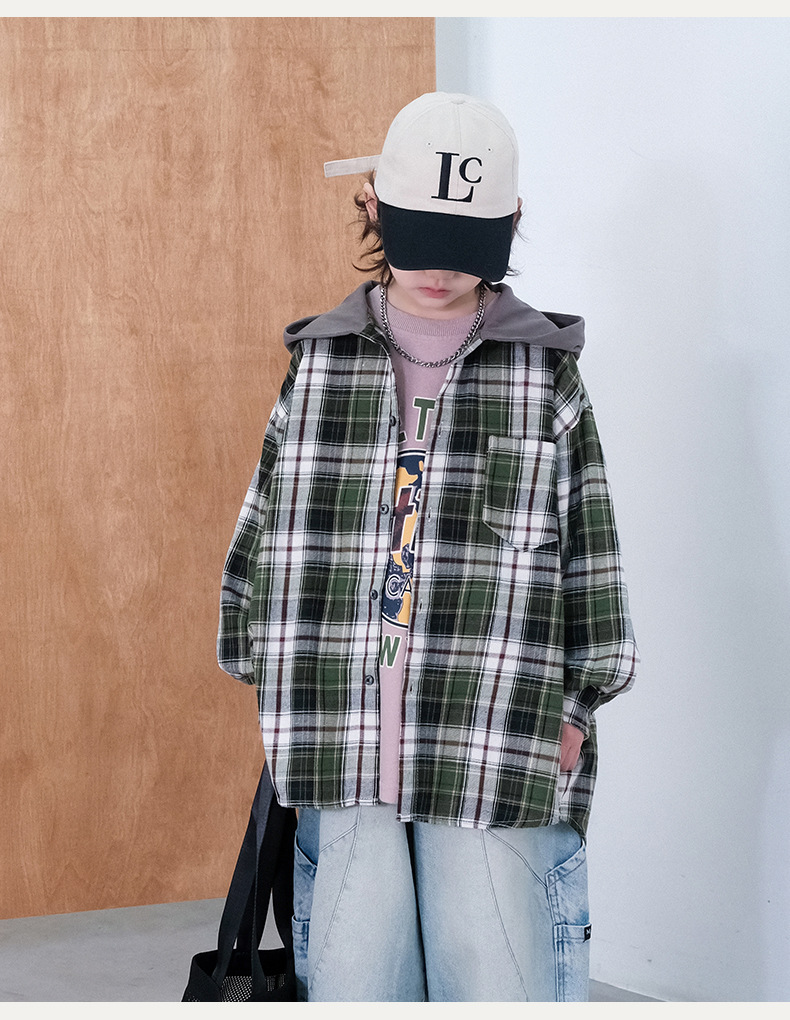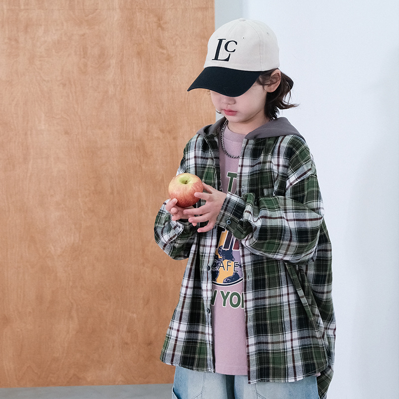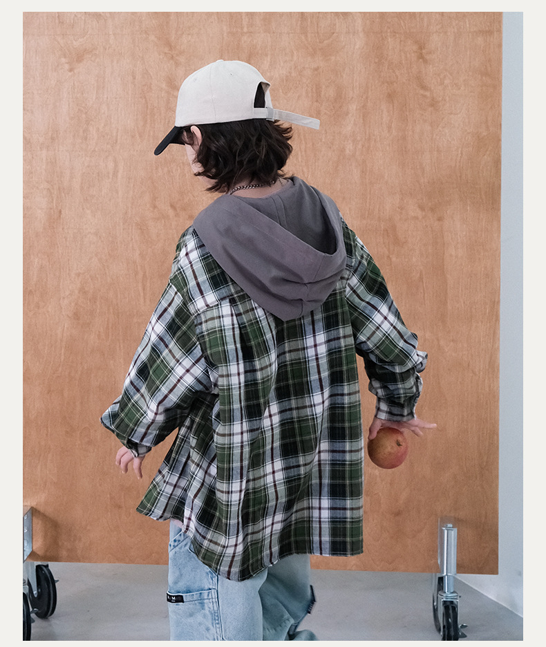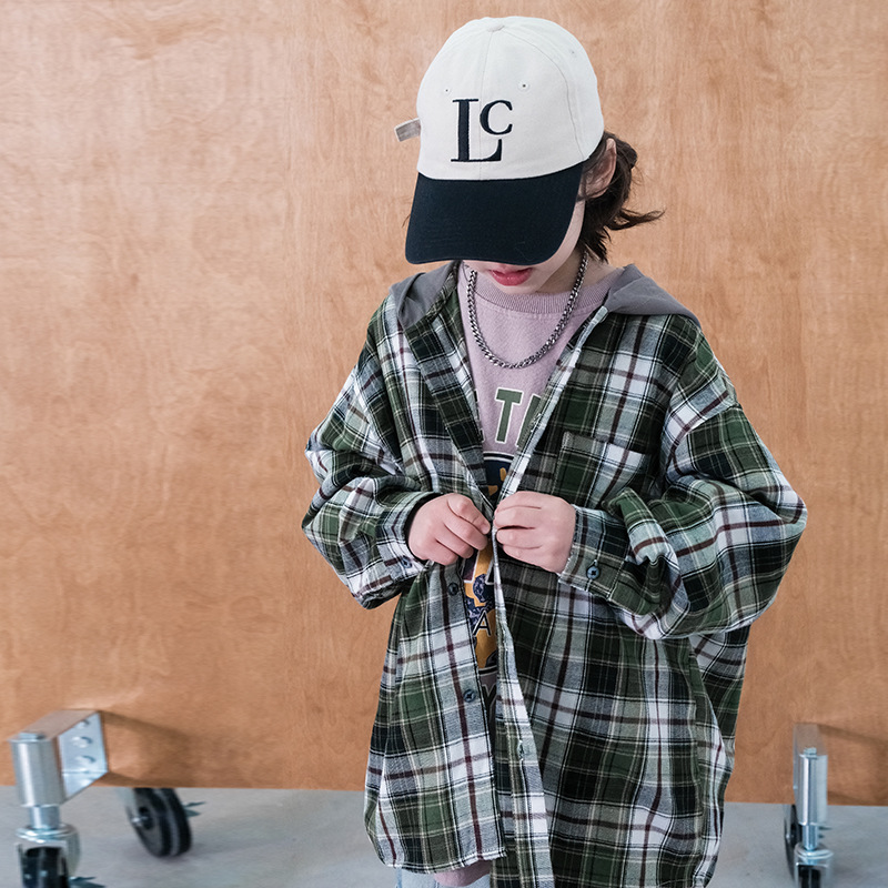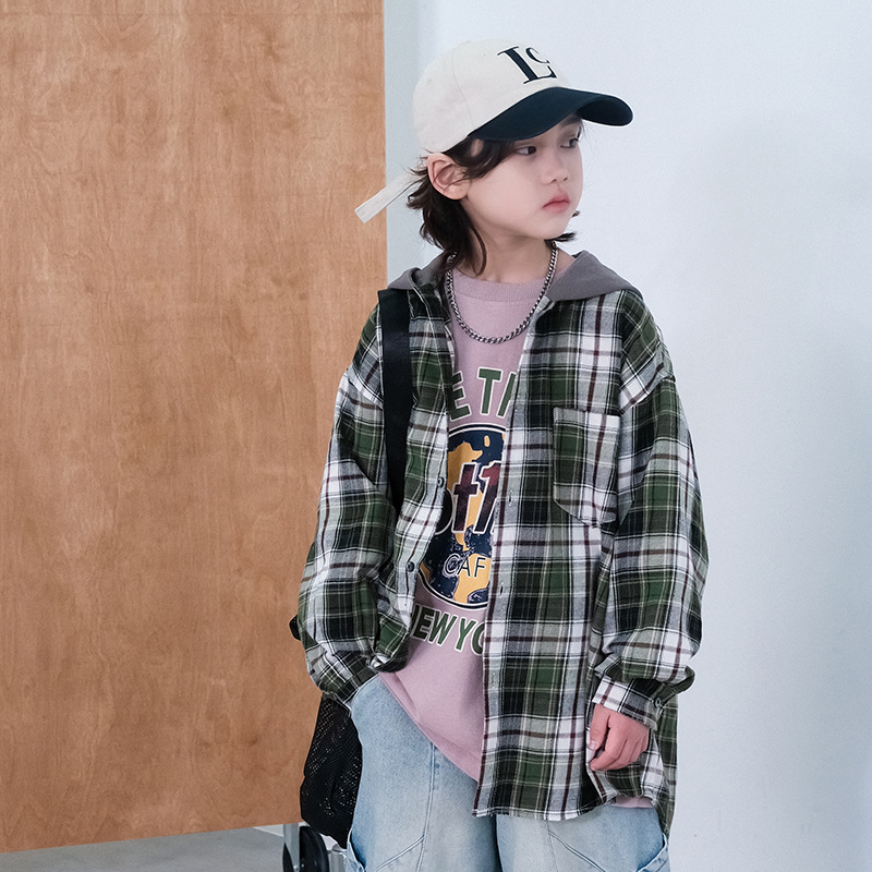 봄 소년의 셔츠 큰 어린이 착용 어린이 소년의 봄과 가을 격자 무늬 후드 셔츠 탑 캐주얼 얇은 재킷 트렌디스토어 가기