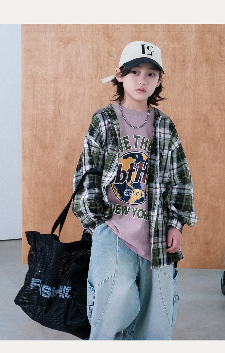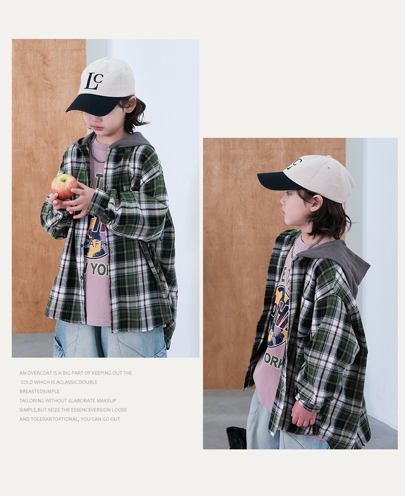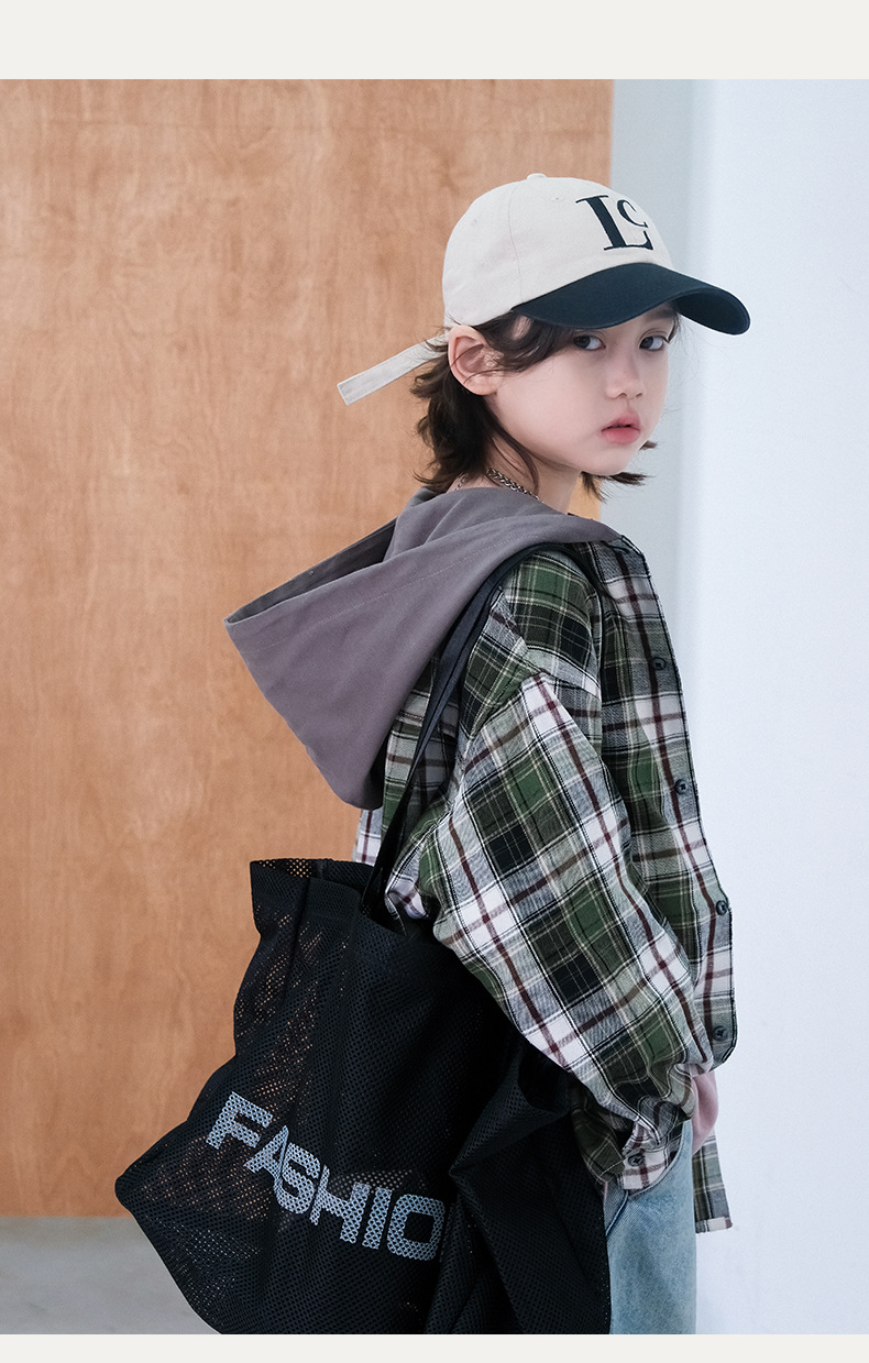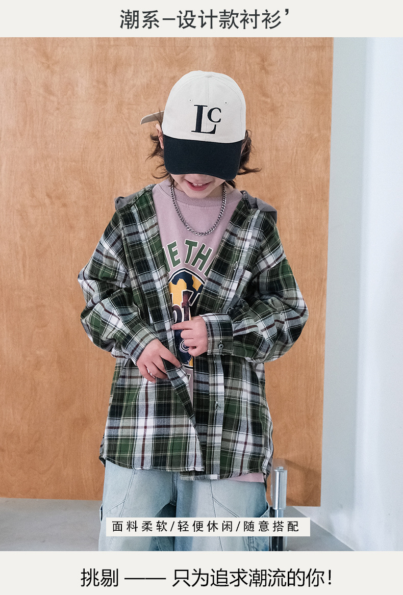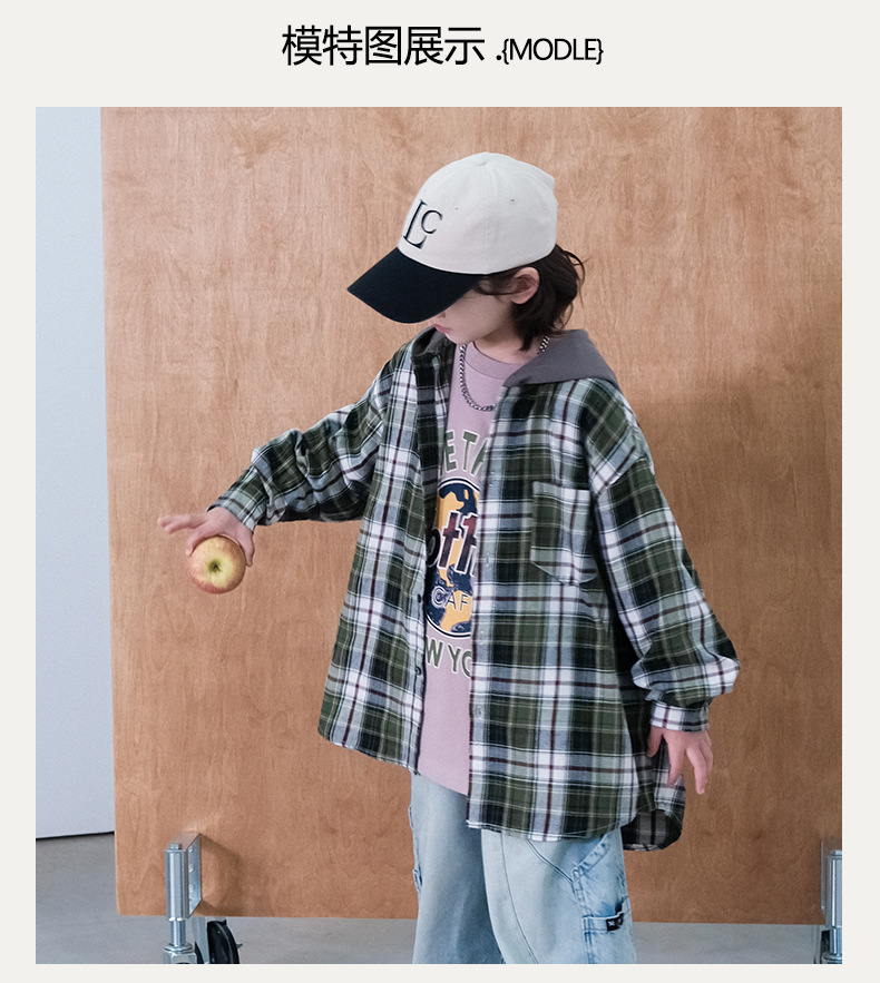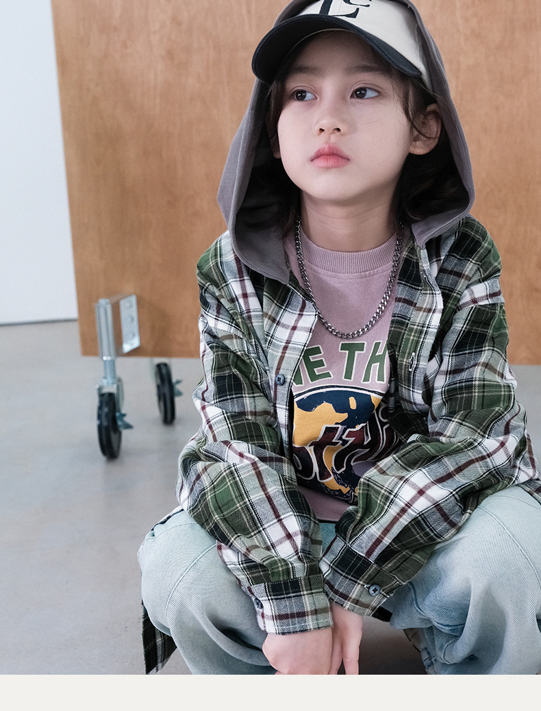 봄 소년의 셔츠 큰 어린이 착용 어린이 소년의 봄과 가을 격자 무늬 후드 셔츠 탑 캐주얼 얇은 재킷 트렌디스토어 가기