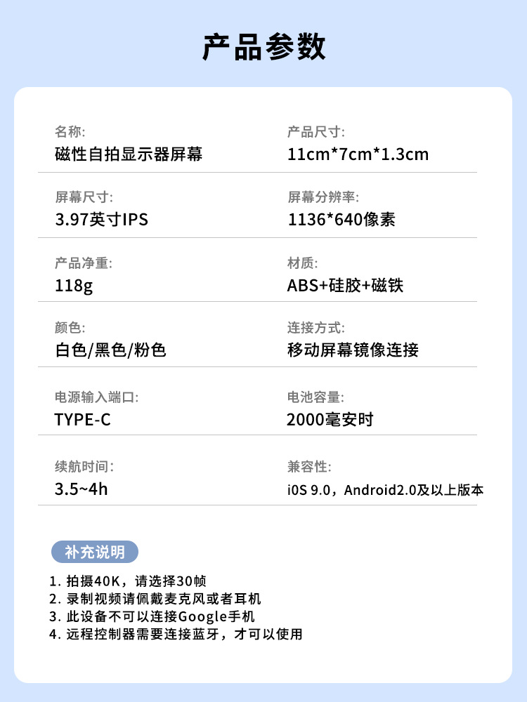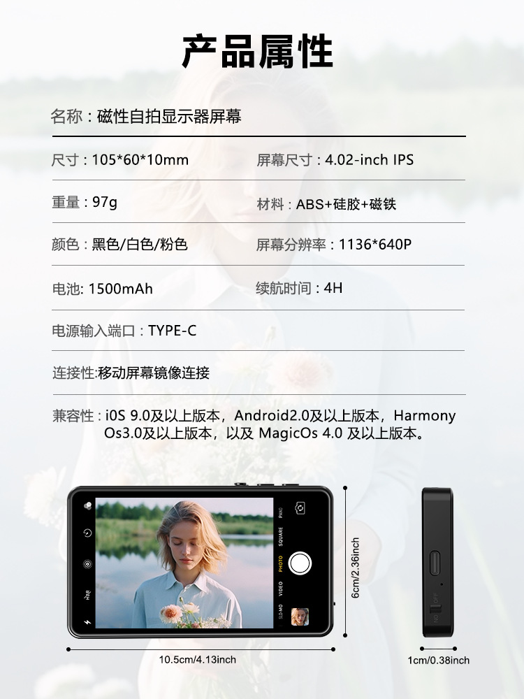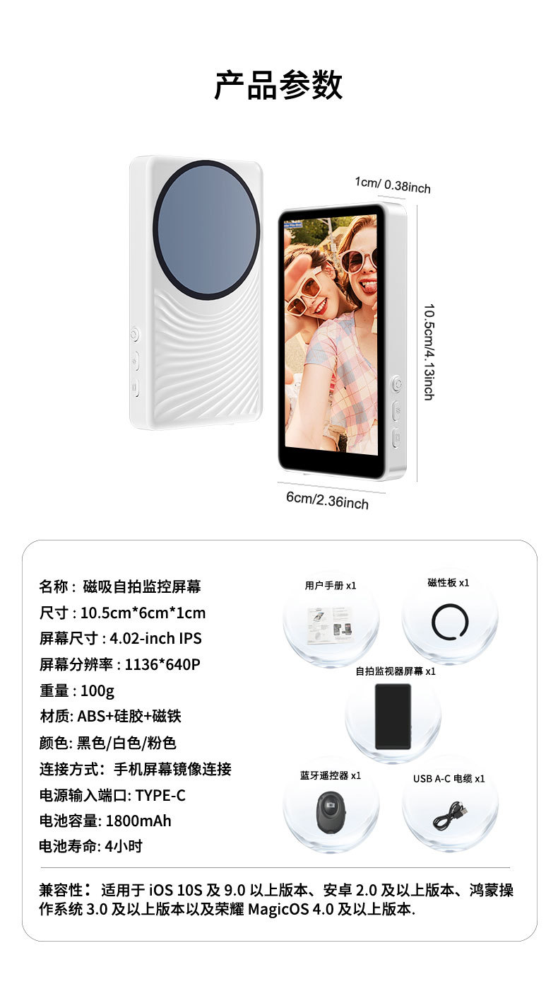 휴대 전화 셀프 타이머 무선 공동 스크린 장치 사진 모니터링 디스플레이 화면 후면 카메라 후면 셀프 타이머 자기 공동 스크린 장치스토어 가기