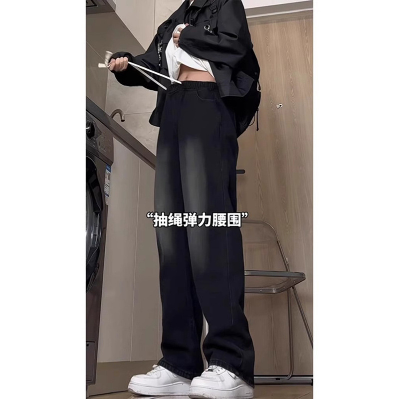 아메리칸 스타일 레트로 블랙 그레이 그라디언트 청바지 남성 봄과 가을 뉴 바이브 하이 스트리트 워시 올드 와이드 레그 스트레이트 레그 바지스토어 가기