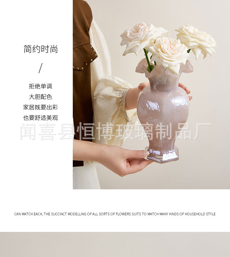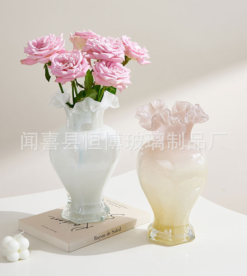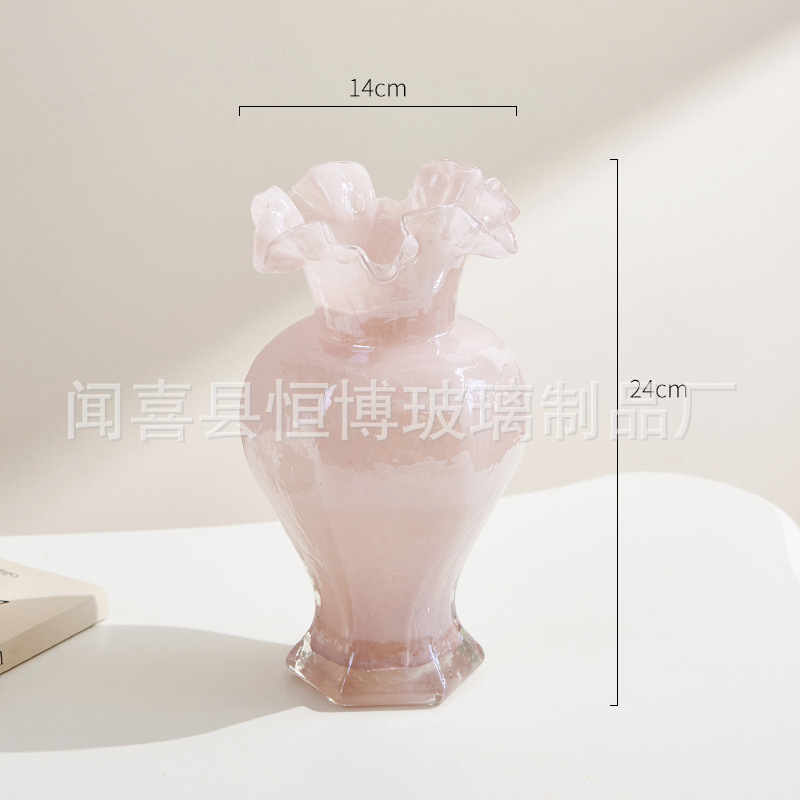 중간 펜턴 다채로운 수제 유리 꽃병 육각형 레이스 다이닝 테이블 장식품 수경 꽃 배열 홈 장식품 꽃스토어 가기