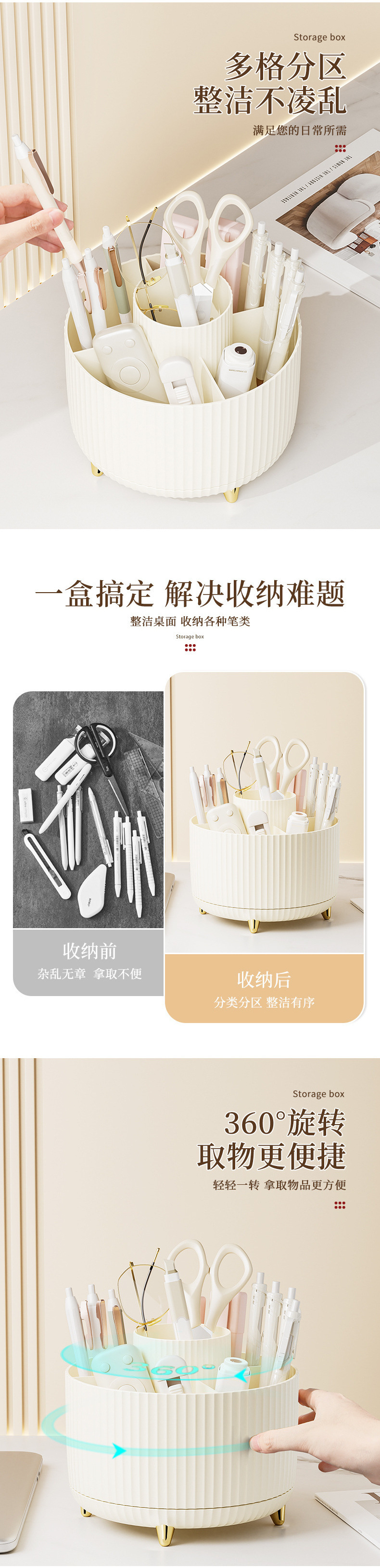 데스크 펜 홀더 회전 플라스틱 책상 문구 정리 보관 상자 립스틱 메이크업 브러쉬 버킷 데스크탑 보관 상자