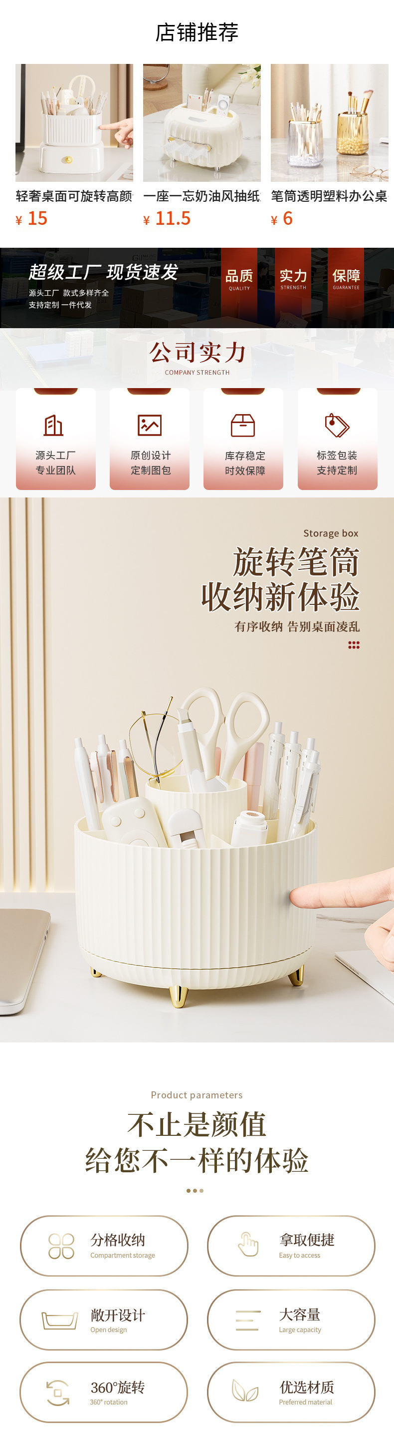 데스크 펜 홀더 회전 플라스틱 책상 문구 정리 보관 상자 립스틱 메이크업 브러쉬 버킷 데스크탑 보관 상자스토어 가기