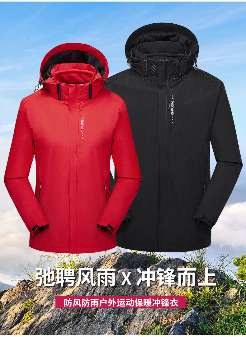충전 의류 분리 가능한 재킷 후드 재킷 3 대 1 라이너 2 피스 야외 등산 방풍 방수 새로운 스타일