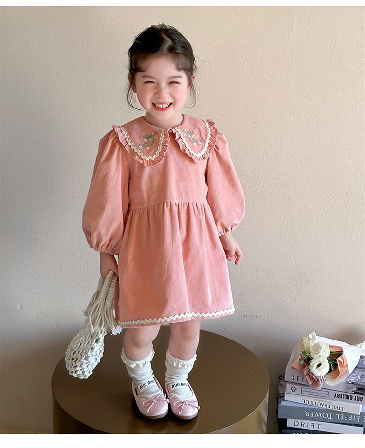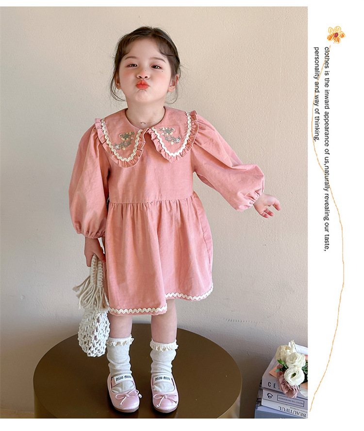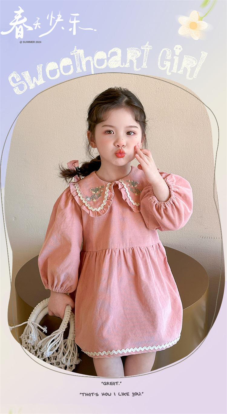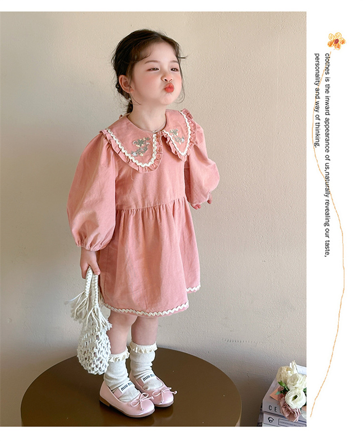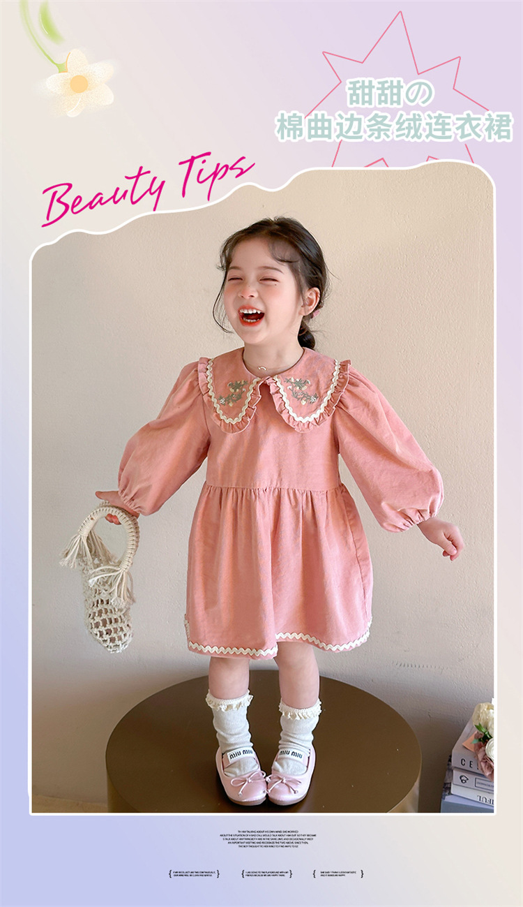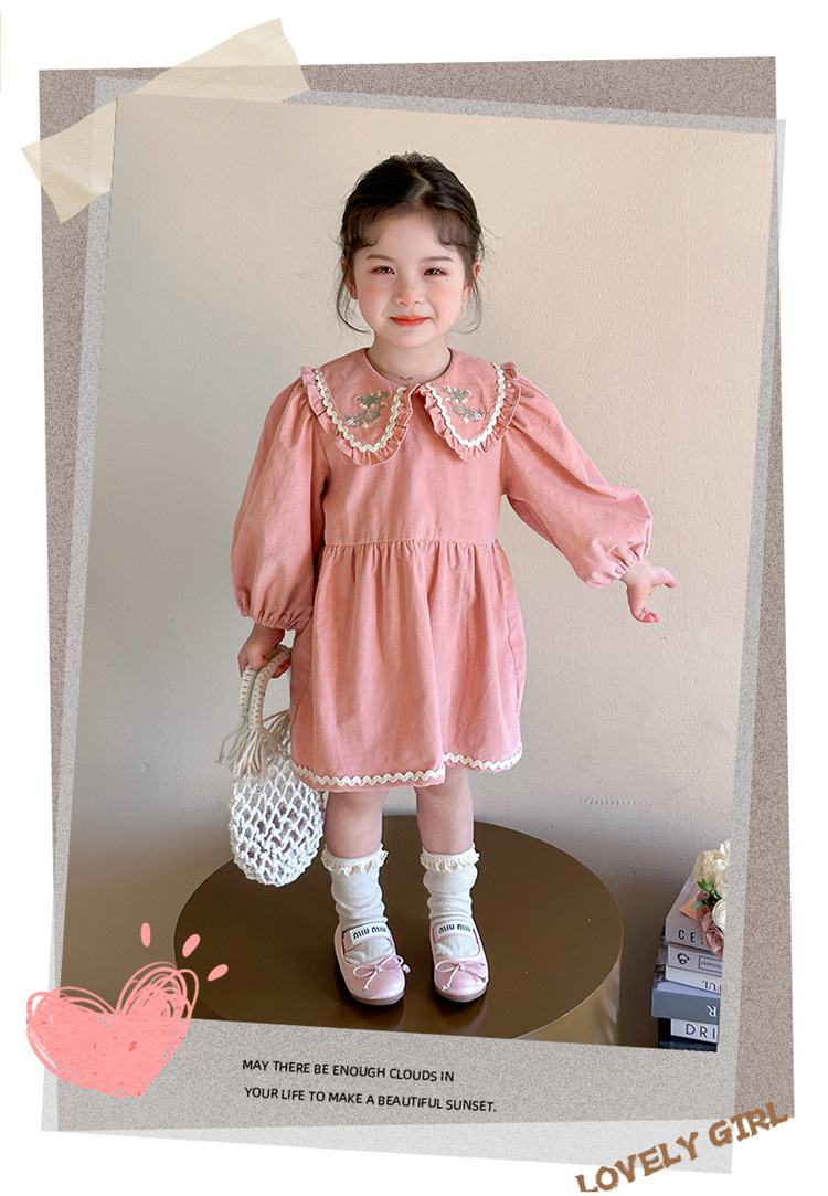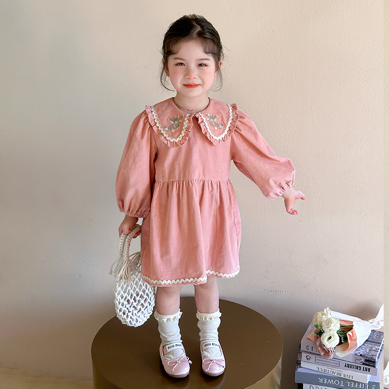 소녀 면화 기모 원피스 봄과 가을 2025 새로운 패션 소녀 어린이를위한 세련된 공주 원피스스토어 가기