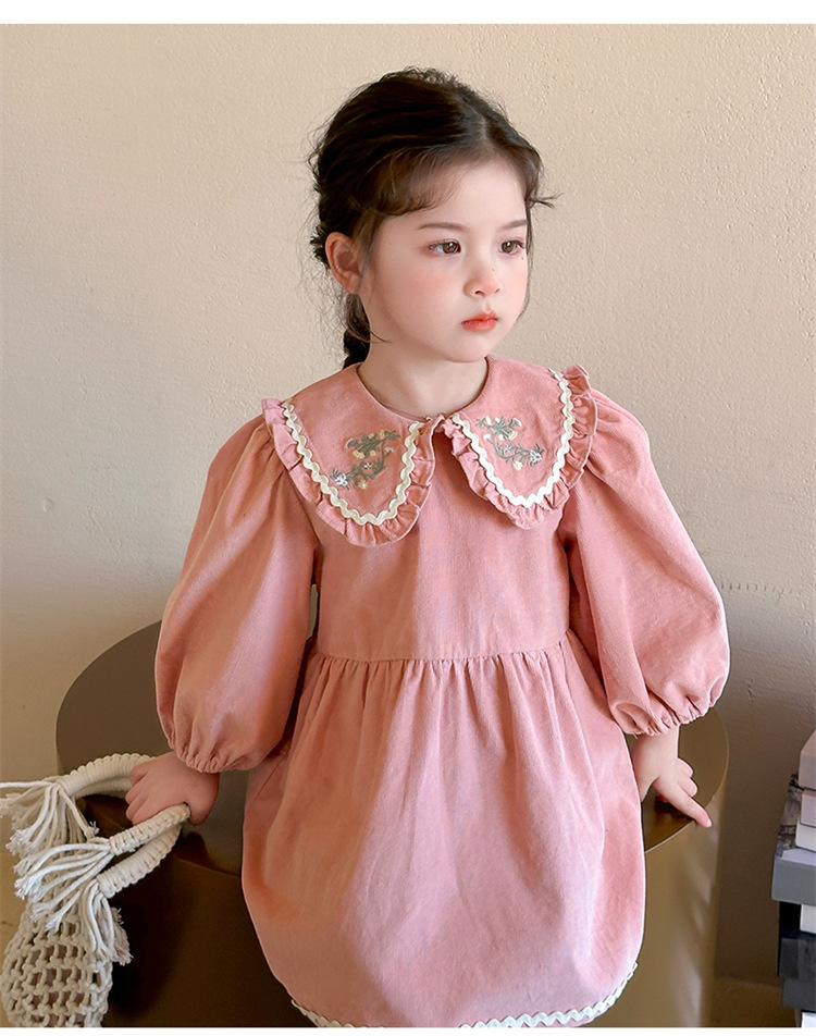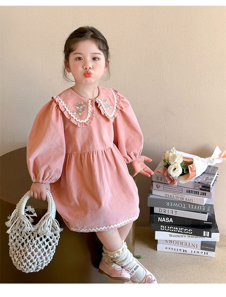 소녀 면화 기모 원피스 봄과 가을 2025 새로운 패션 소녀 어린이를위한 세련된 공주 원피스