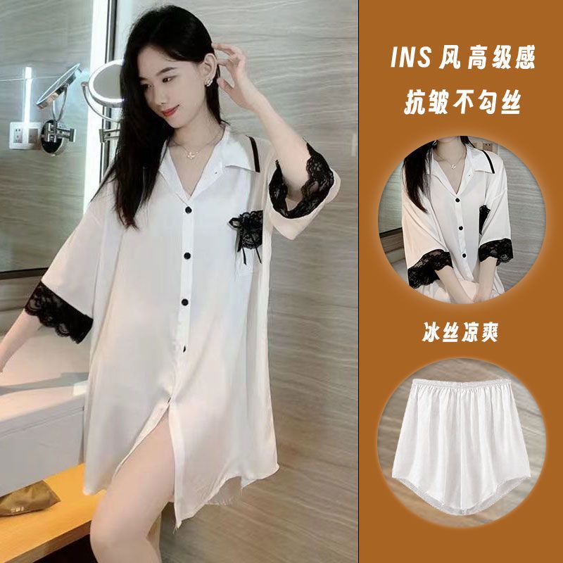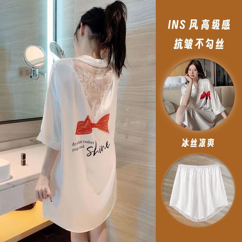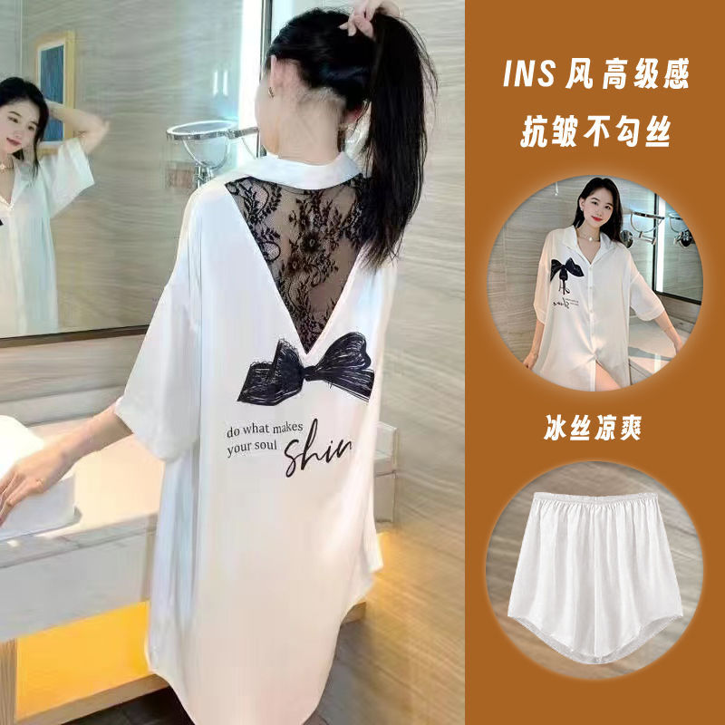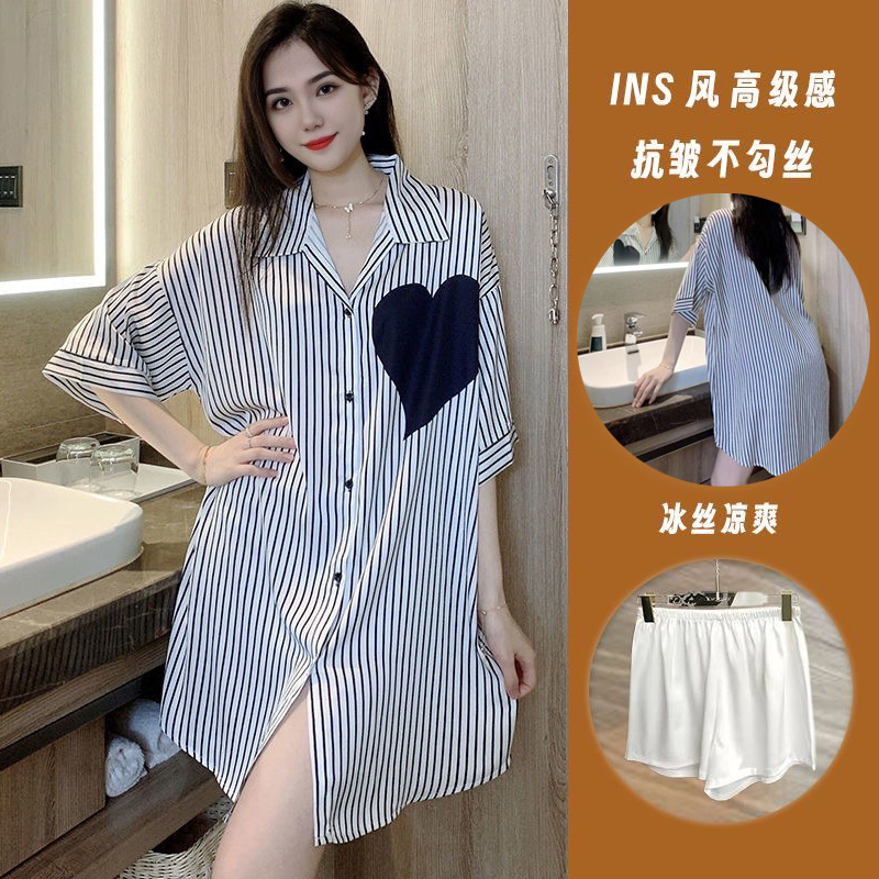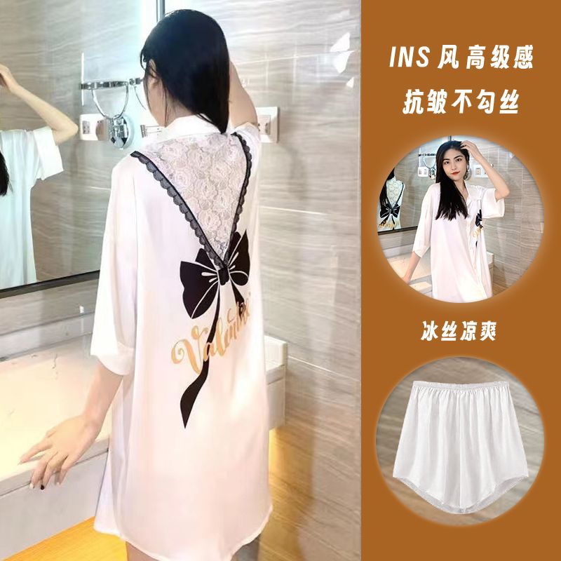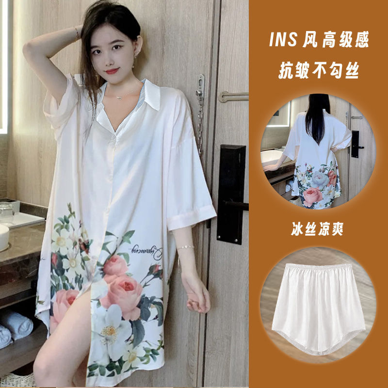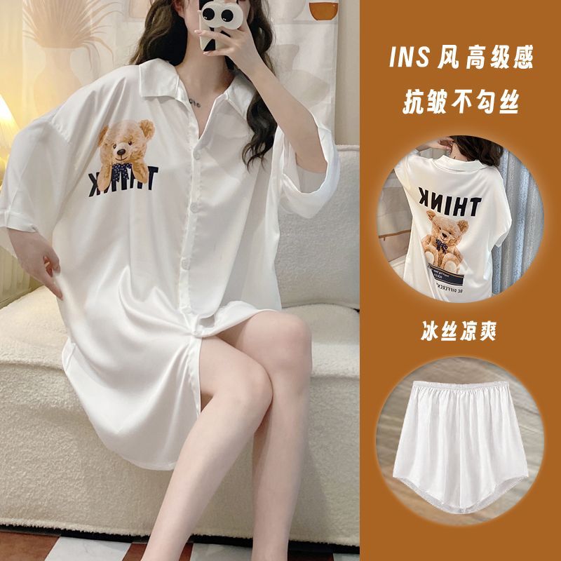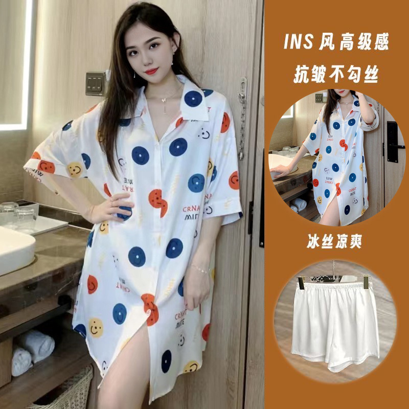 여름 셔츠 잠옷 섹시한 아이스 실크 반팔 잠옷 여성의 인쇄 달콤한 만화 느슨한 얇은 홈 의류 세트스토어 가기