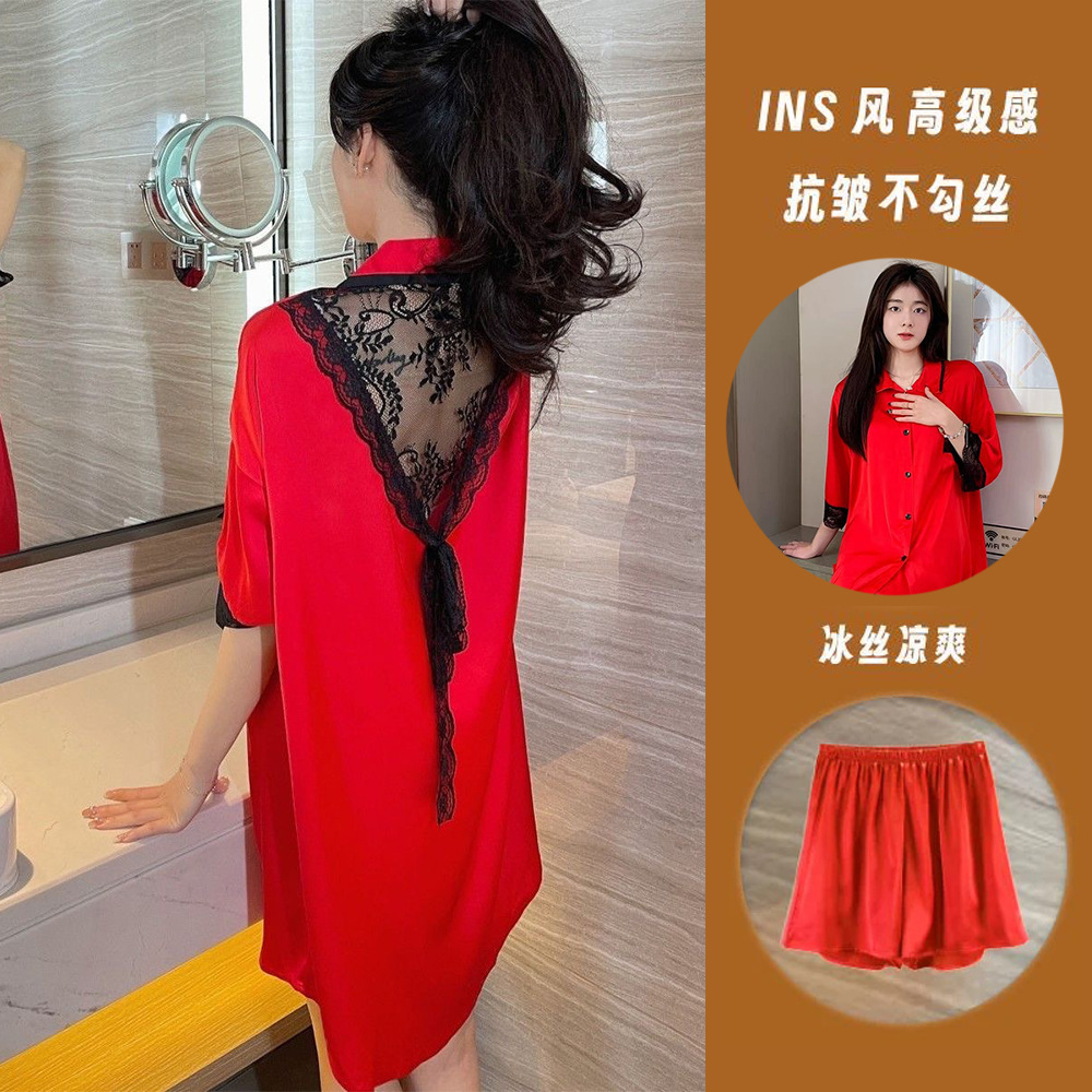 • 빨간색과 검은색 레이스 [잠옷+반바지]