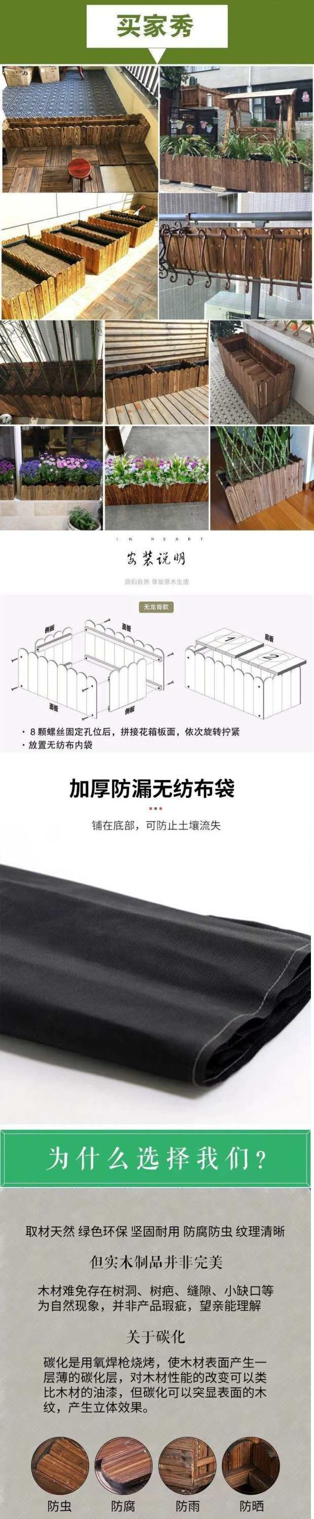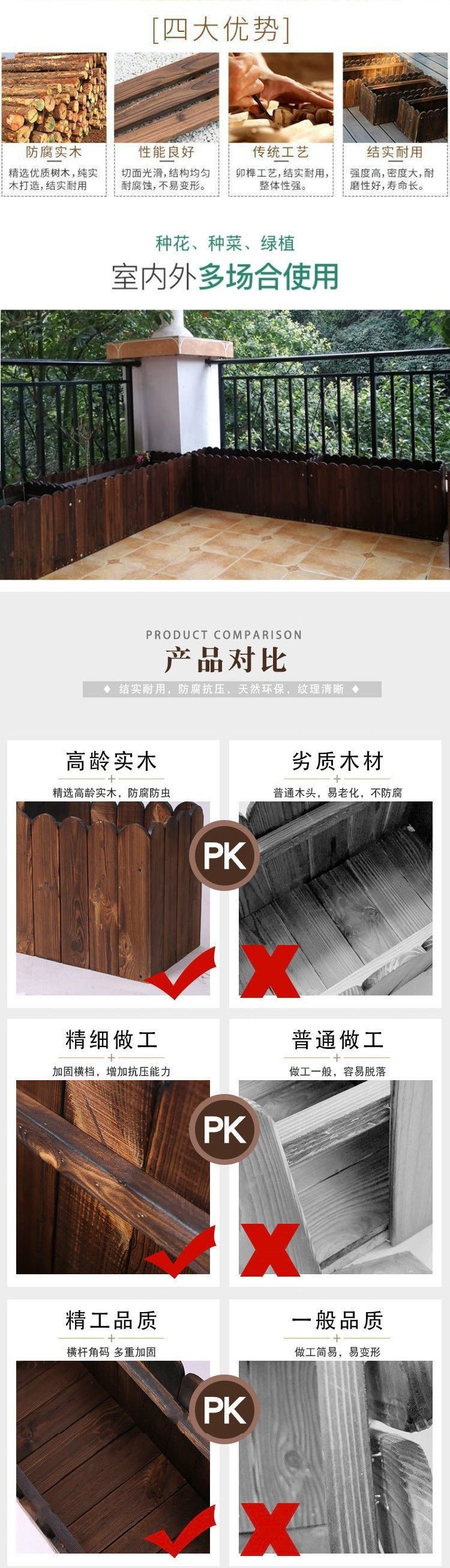 외장형 정원 꽃 냄비 단단한 나무 나무 꽃 상자 심기 상자 야외 발코니 꽃 상자 조합스토어 가기