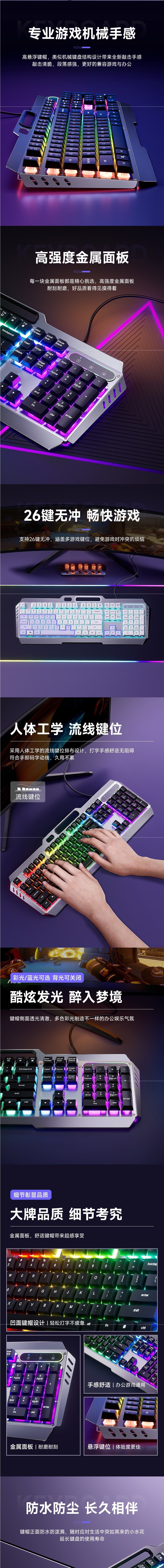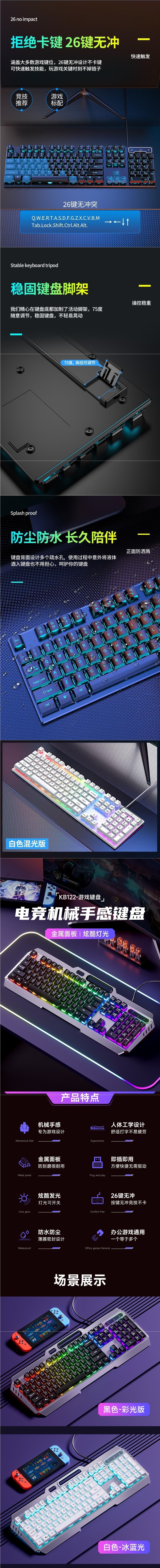 • 흑백 컬러 매칭 [무지개 빛-기계적 느낌] 단일 키보드 - 새로운 e-스포츠 칩 - 낮은 대기 시간