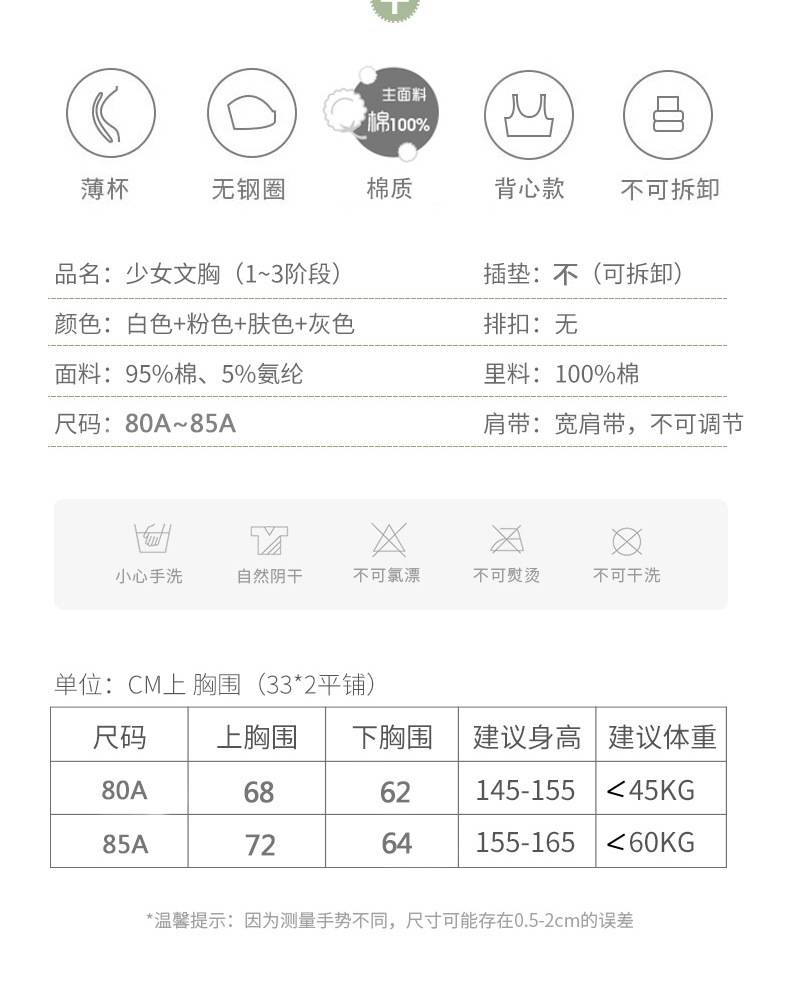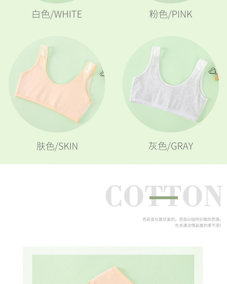 초등 및 중등 학교 학생을 개발하는 소녀를위한 50 Combed Cotton Pure Cotton 속옷 여자 조끼 어린이 안티 범프 브라
