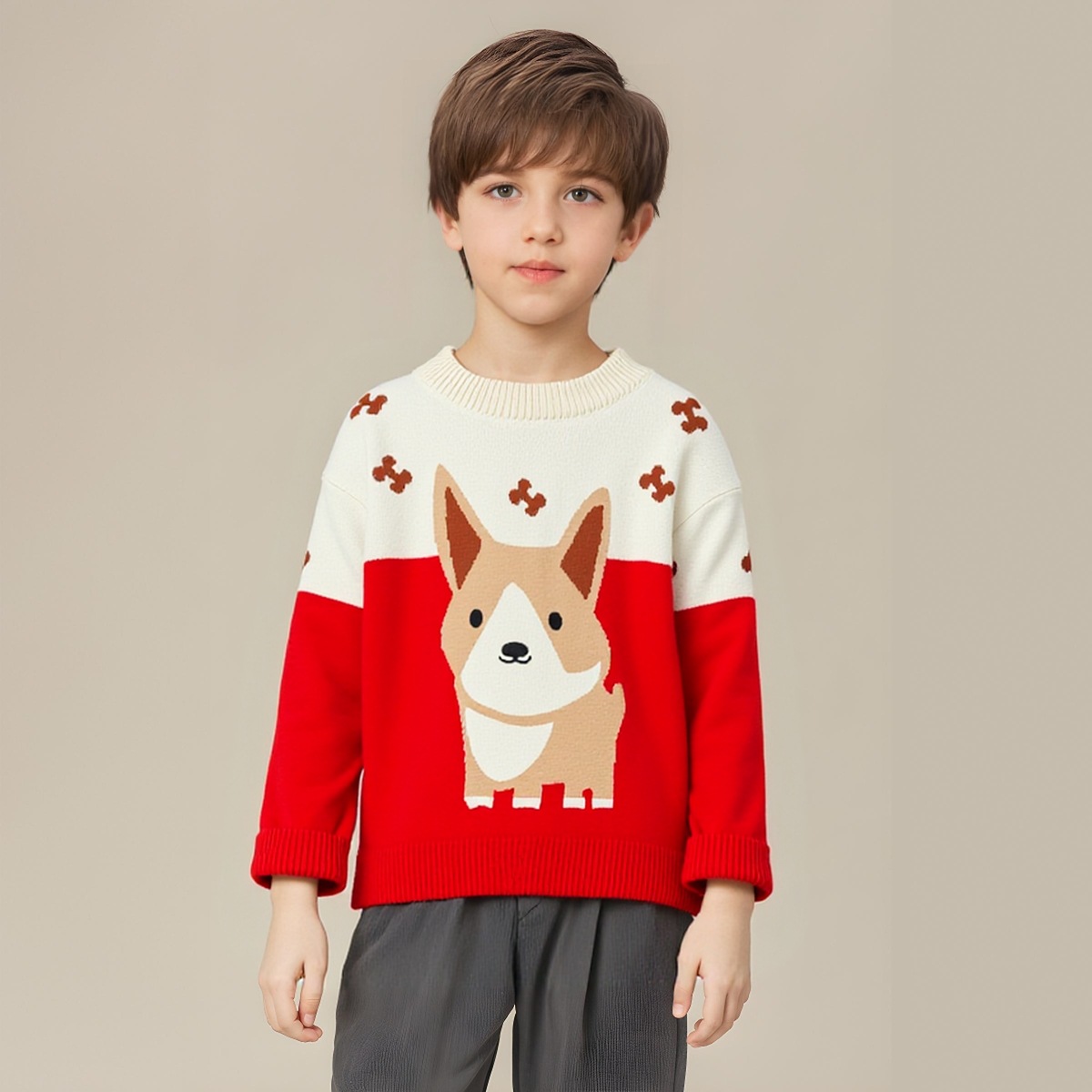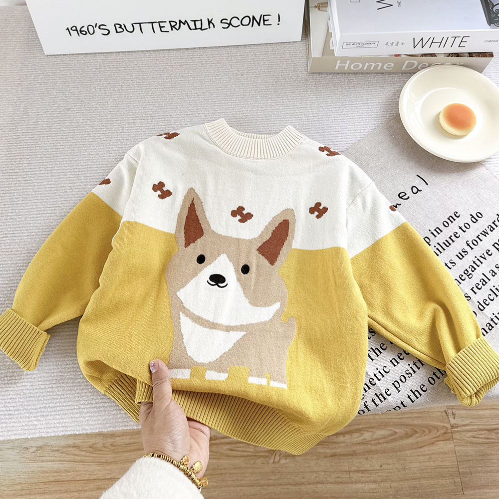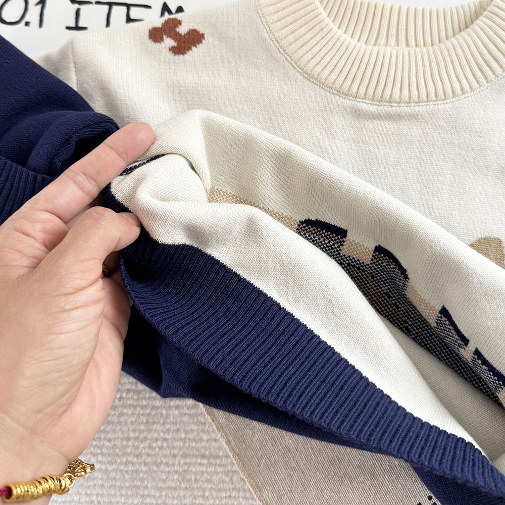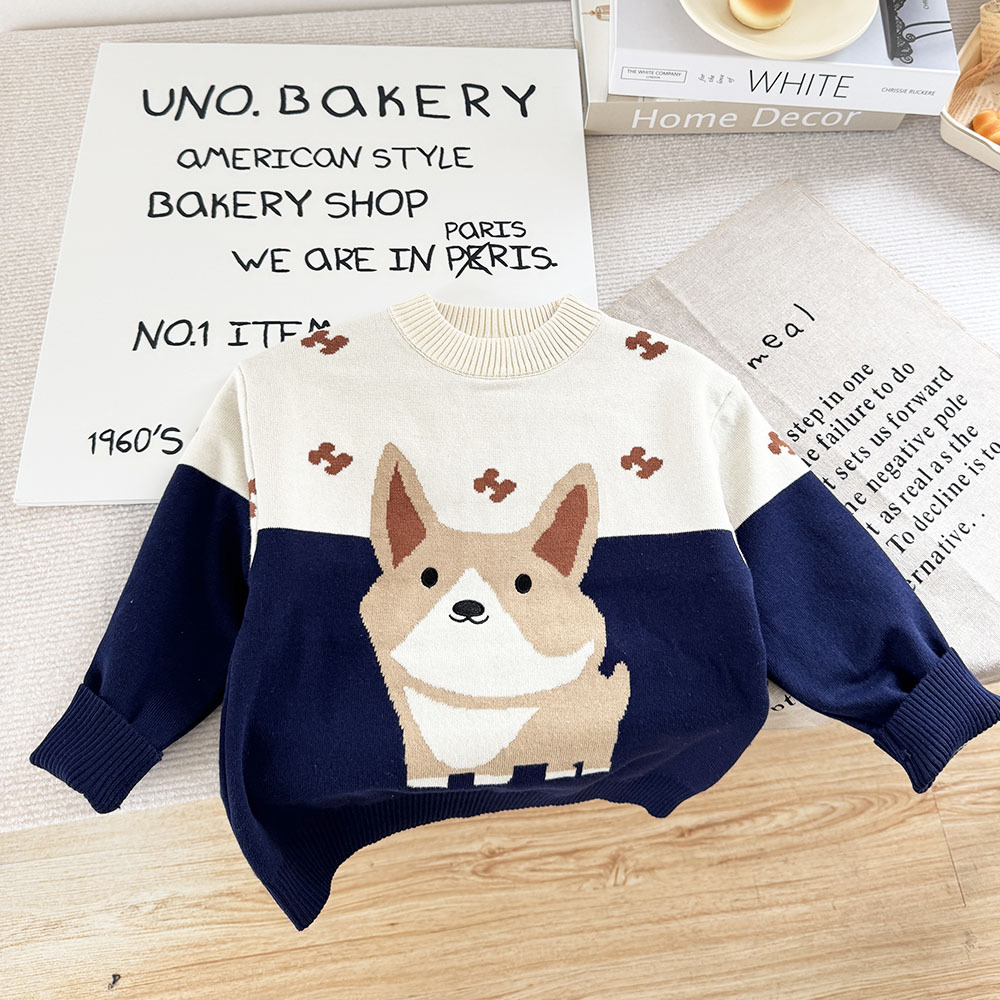 소년의 스웨터 면화 2025 가을과 겨울 어린이 둥근 목 니트 스웨터 소년의 아기 만화베이스 스웨터스토어 가기