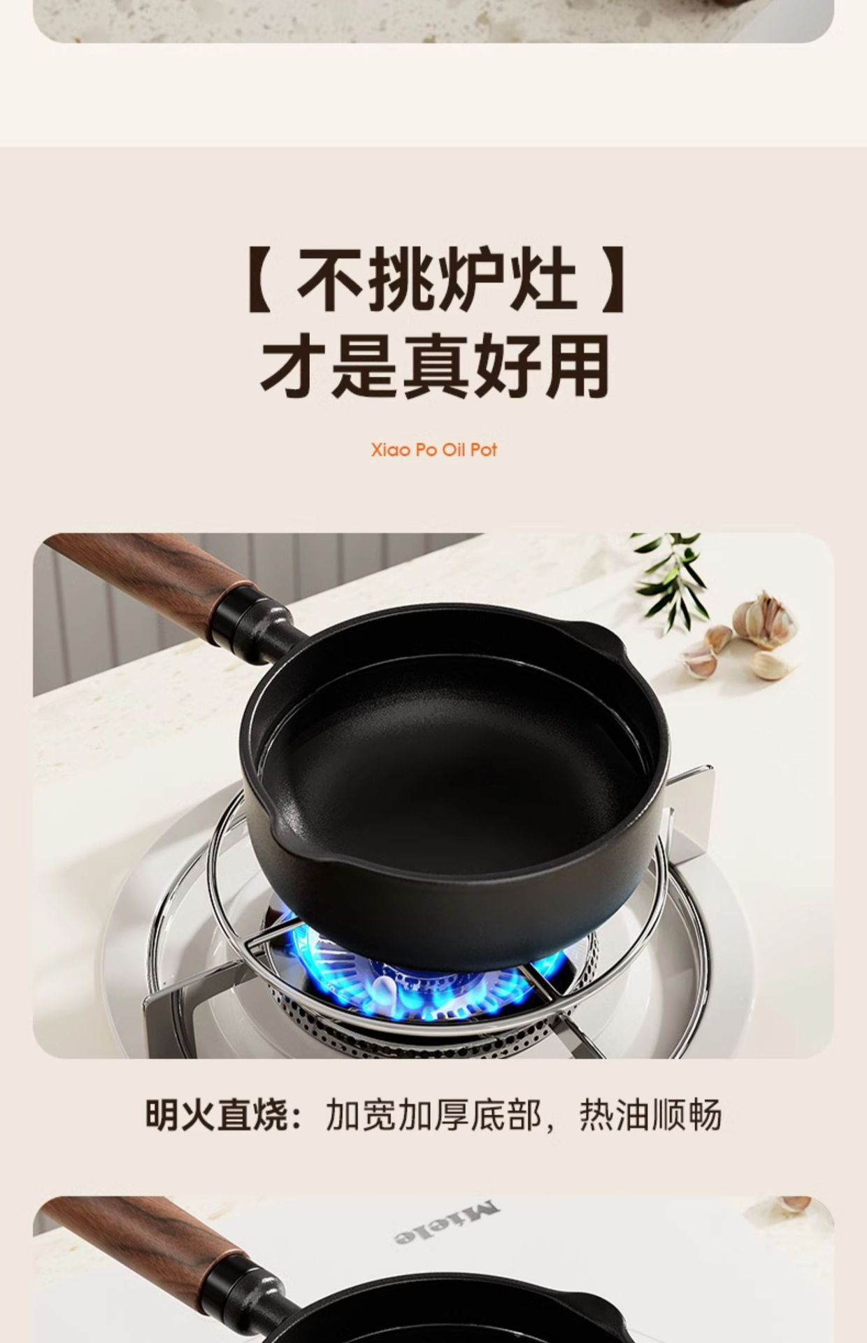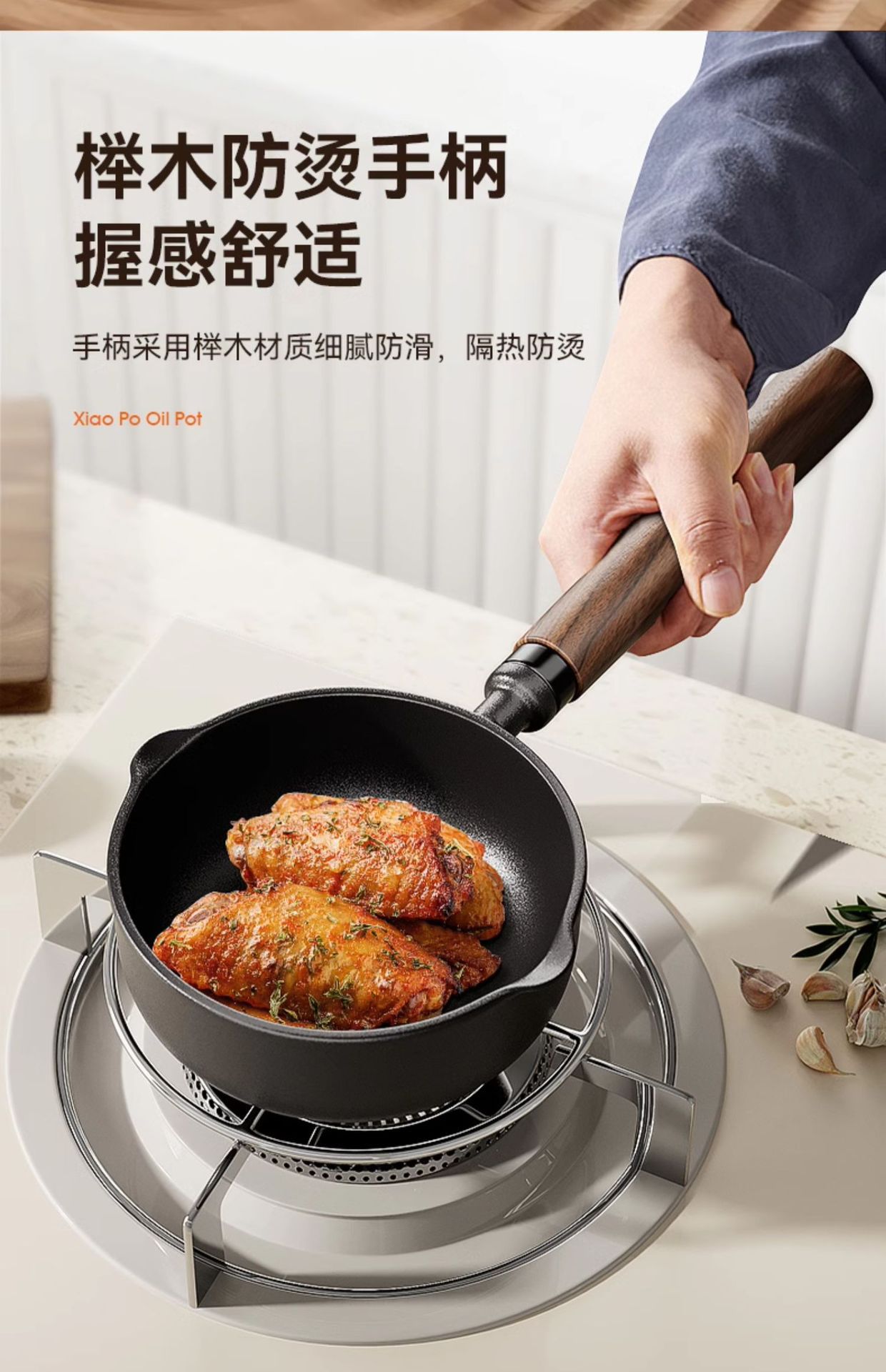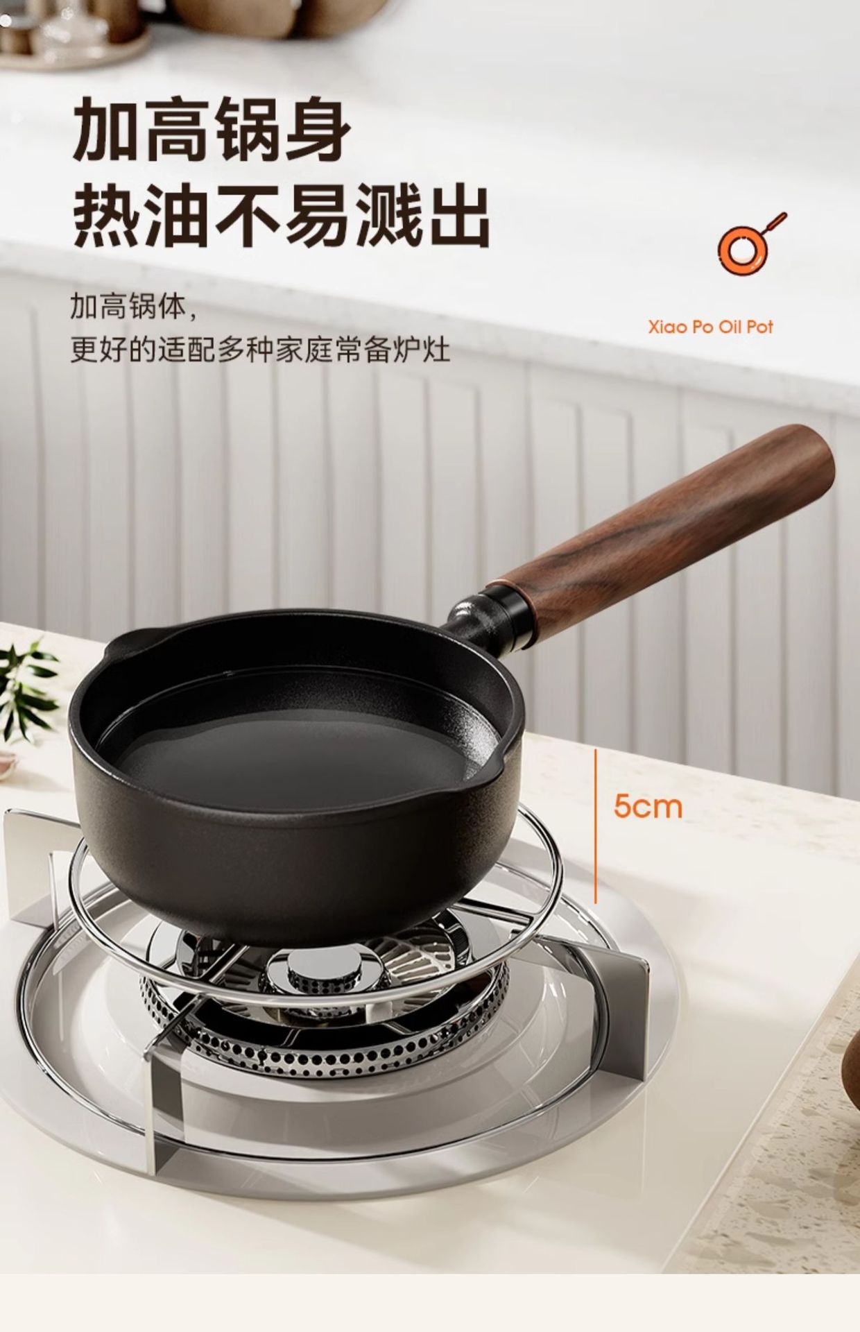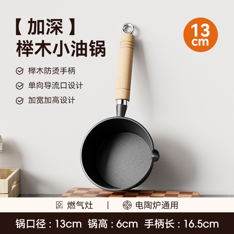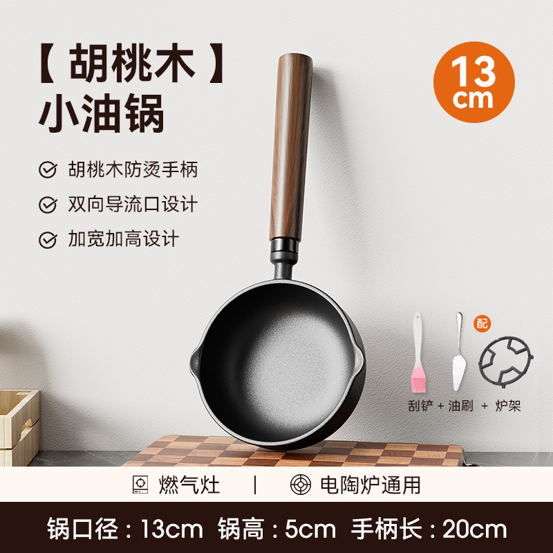 • [높이 및 넓어짐] 13cm 기름 냄비 + 무료 스토브 랙 + 오일 브러시 + 튀김 주걱 [호두 손잡이]