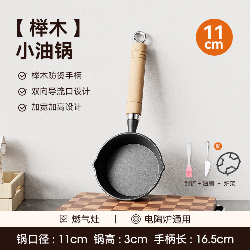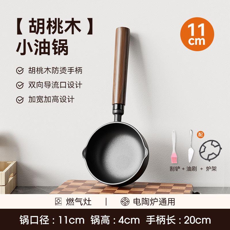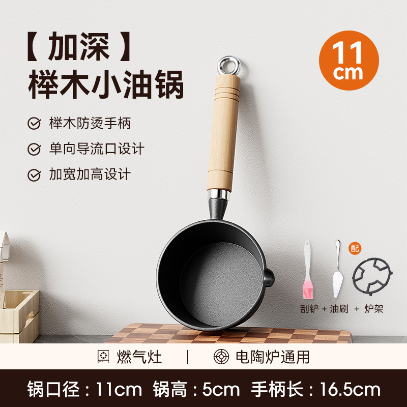 • [높이 및 넓어짐] 11cm 기름 냄비 + 무료 스토브 랙 + 오일 브러시 + 튀김 주걱 [호두 손잡이].