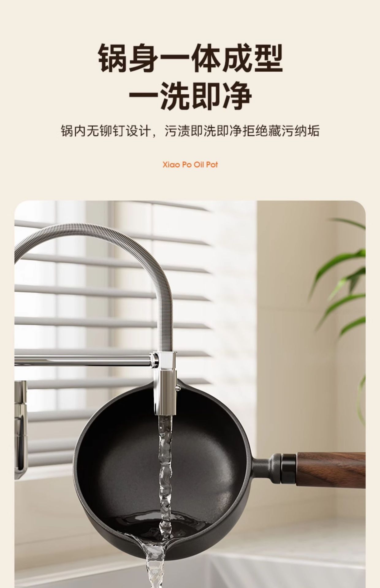 • [높이고 넓어진] 11cm 기름 붓는 팬 [호두나무 손잡이]
