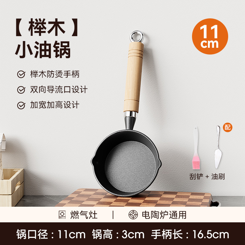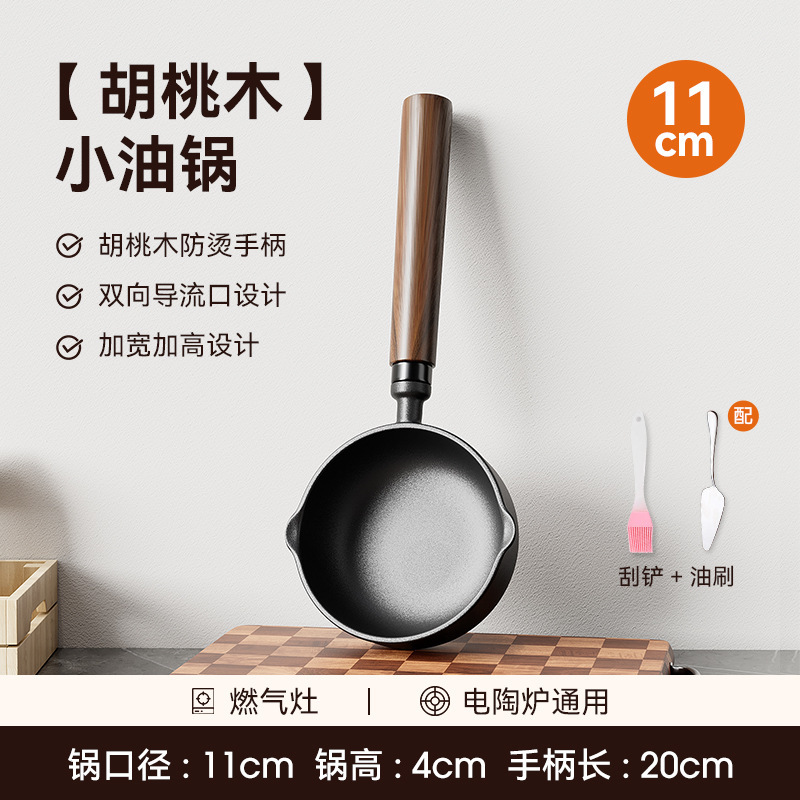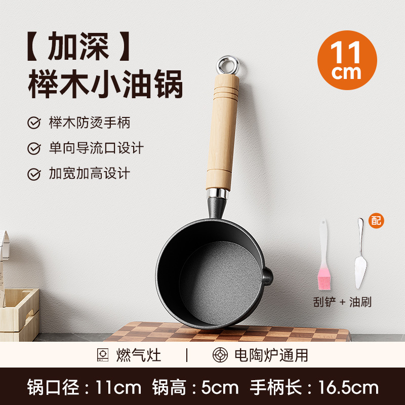 • [높이 및 넓어짐] 11cm 기름 붓는 팬 + 무료 기름 브러시 + 튀김 주걱 [호두 손잡이].