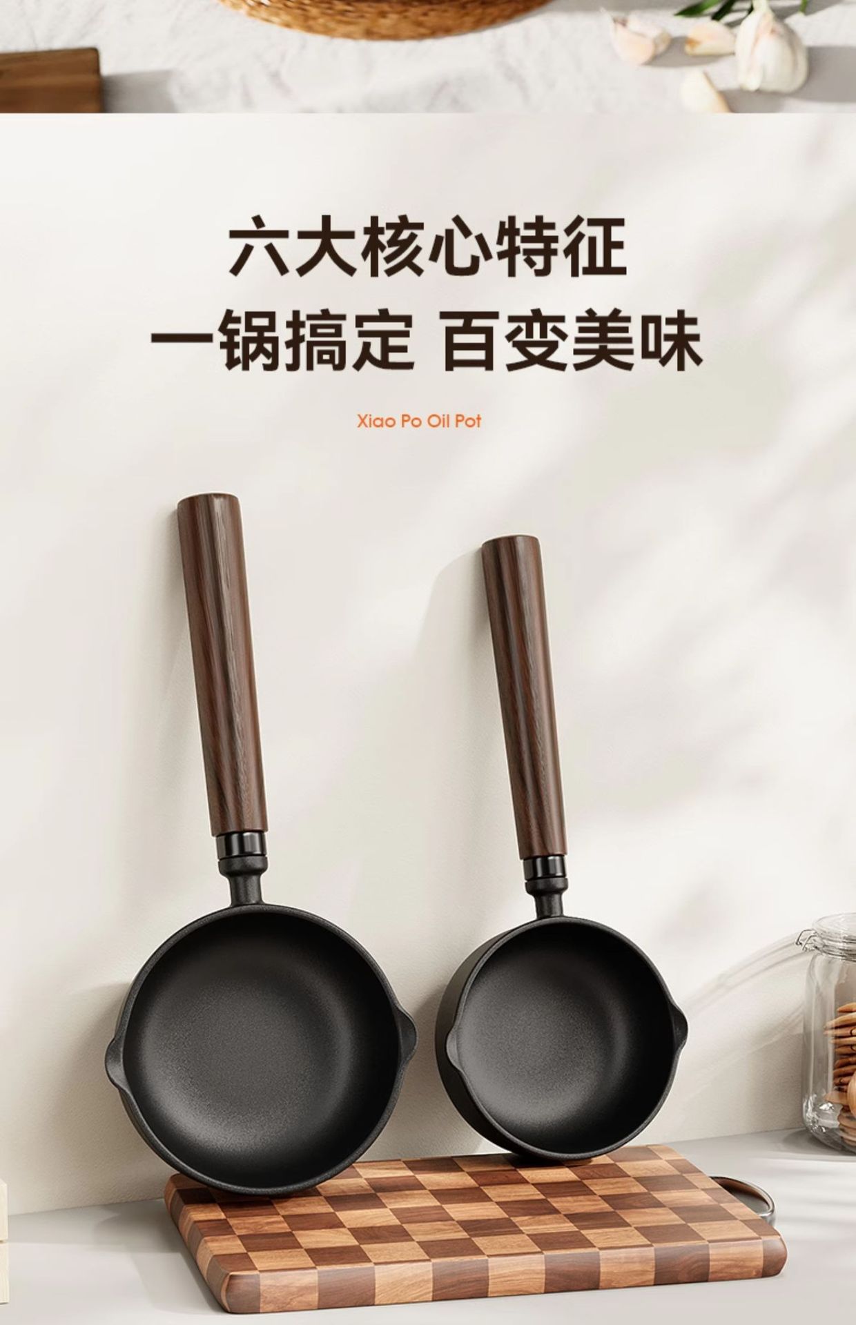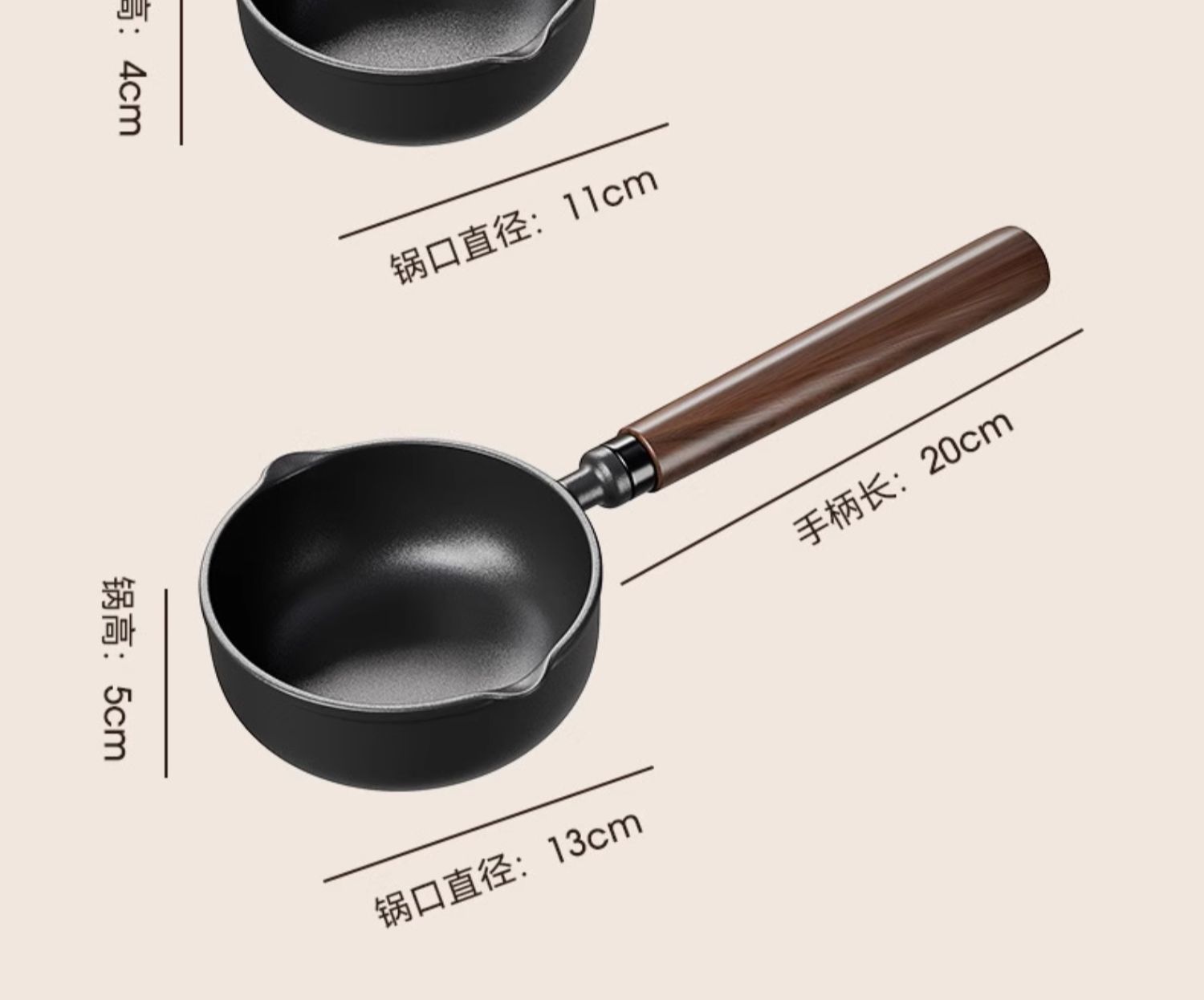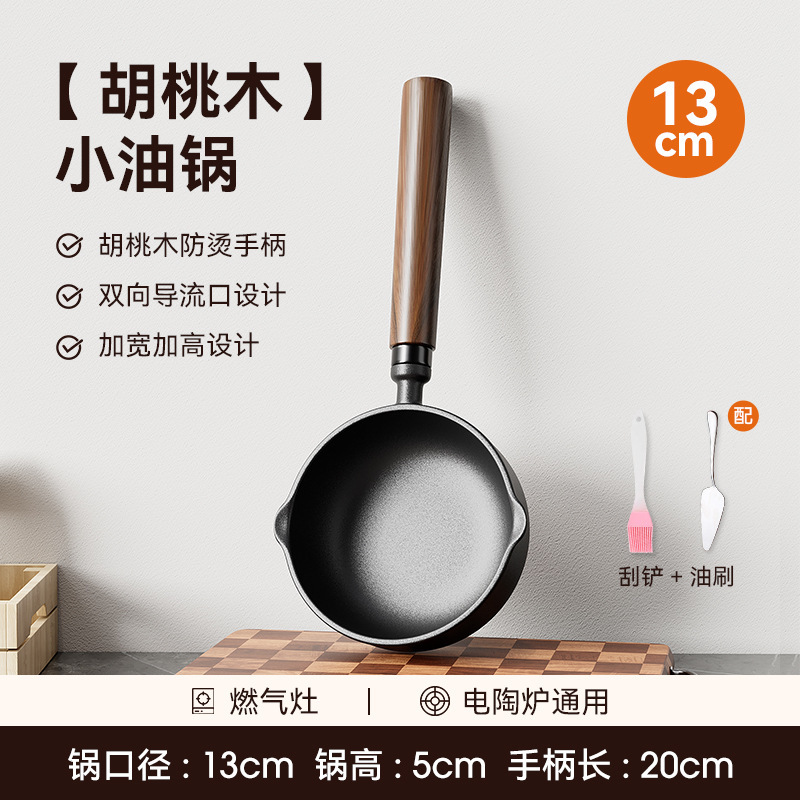 • [높이고 넓어진] 13cm 기름 붓는 팬 [호두나무 손잡이]