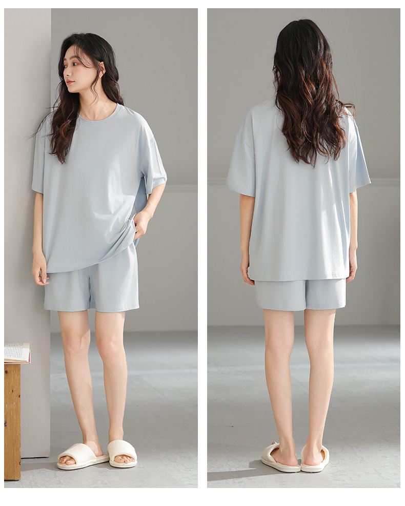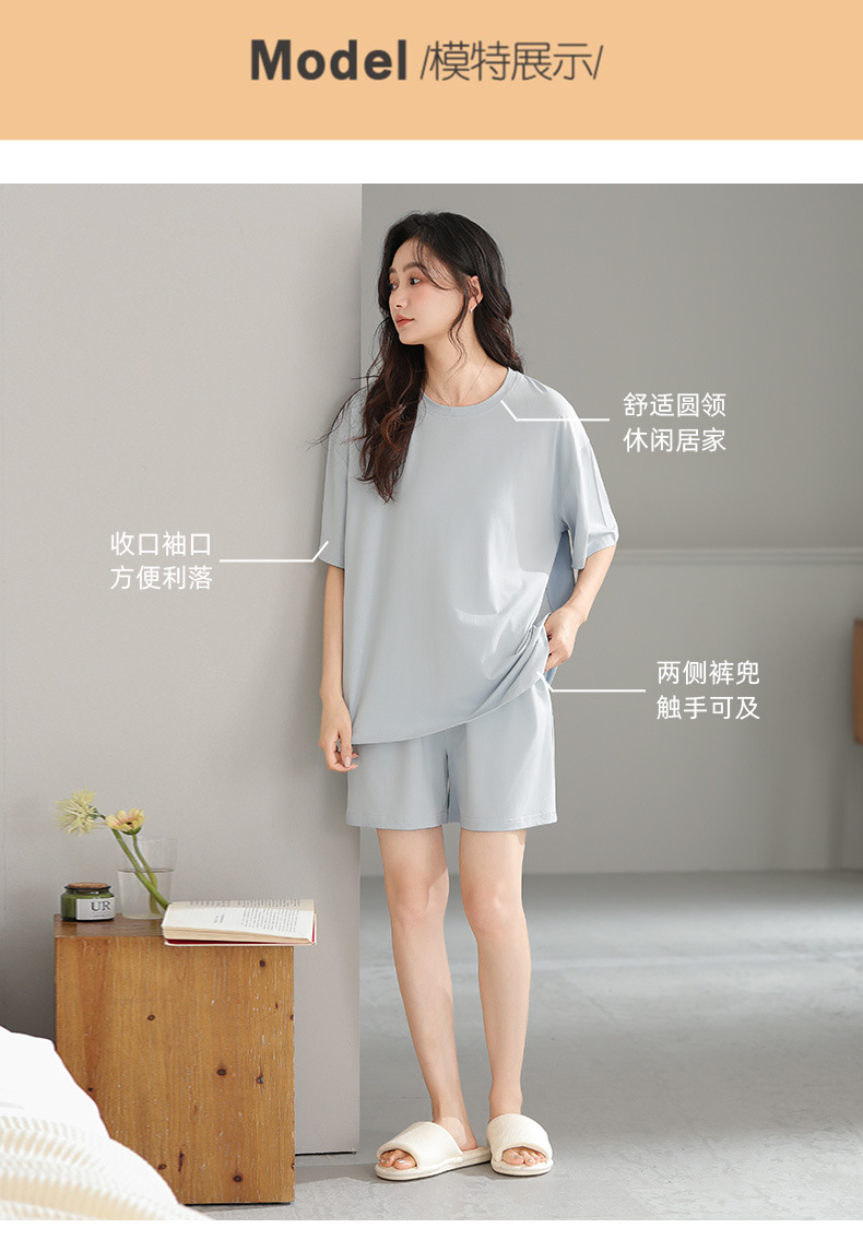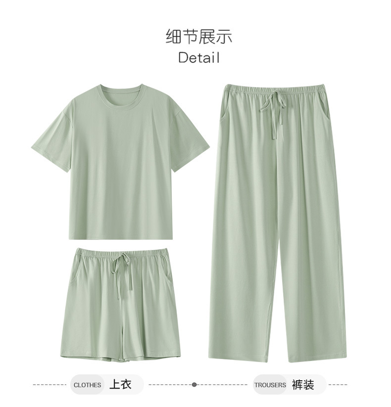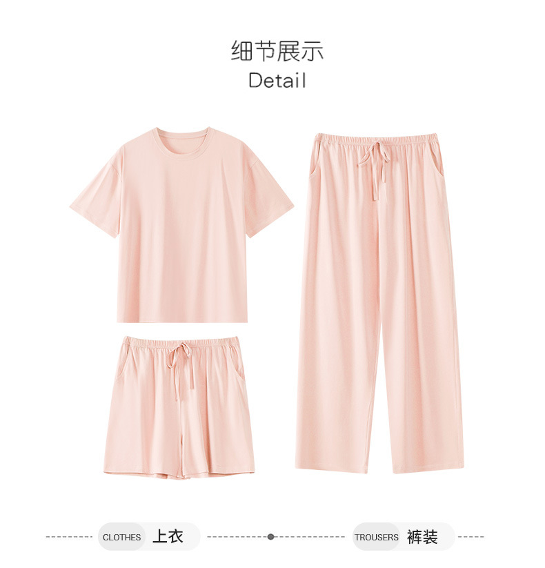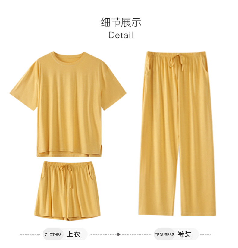 여름 얇은 여성 잠옷 단색 반바지 바지 3 피스 세트 모데일 코튼 느슨한 레저 홈 의류스토어 가기