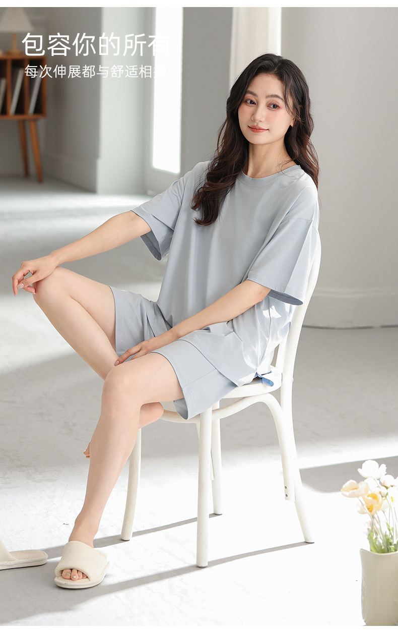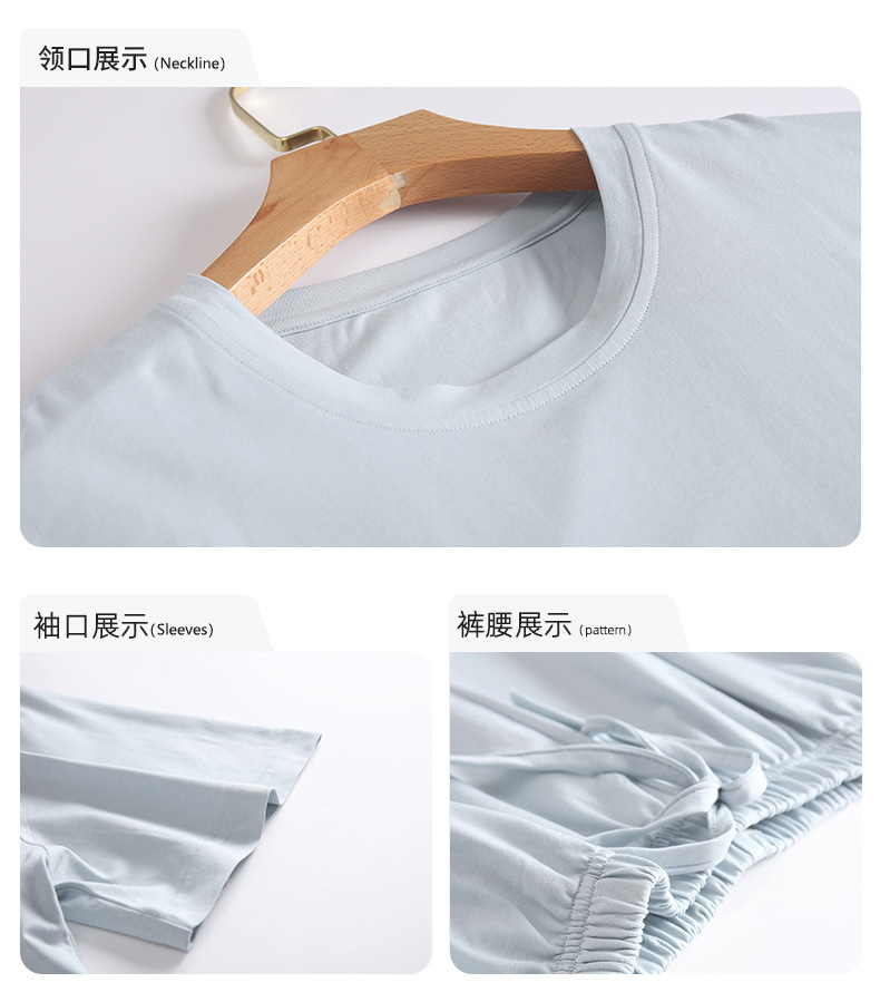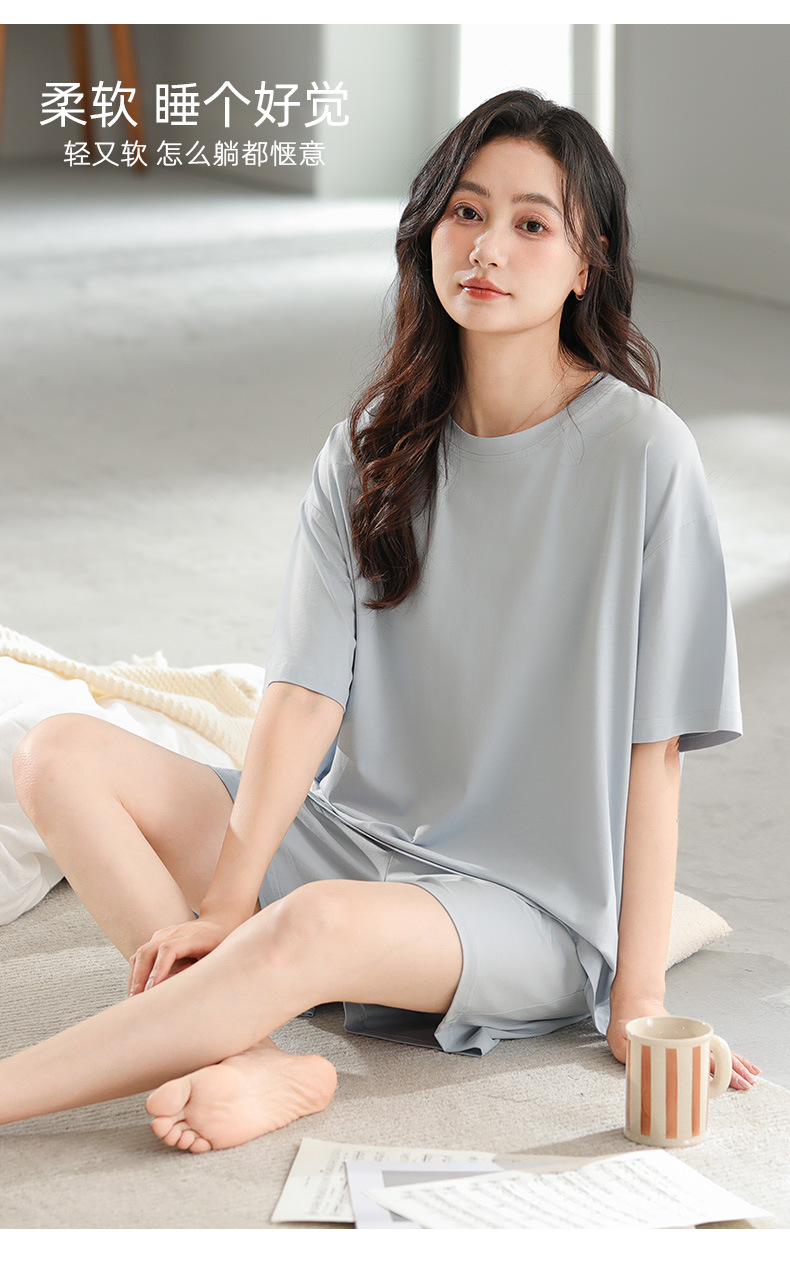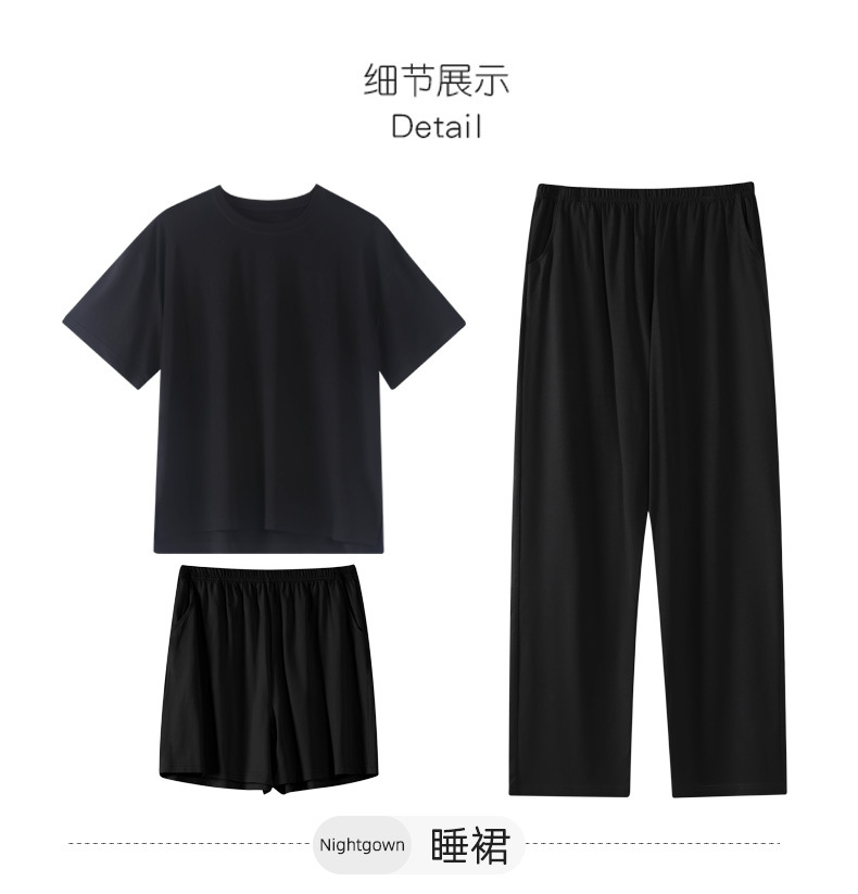 여름 얇은 여성 잠옷 단색 반바지 바지 3 피스 세트 모데일 코튼 느슨한 레저 홈 의류스토어 가기