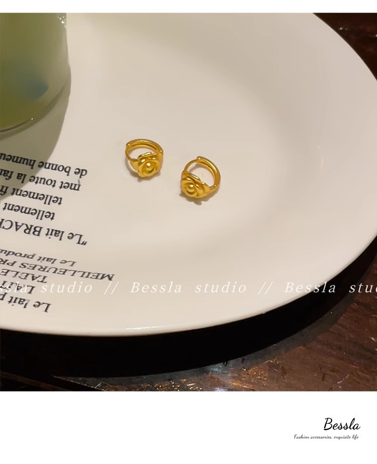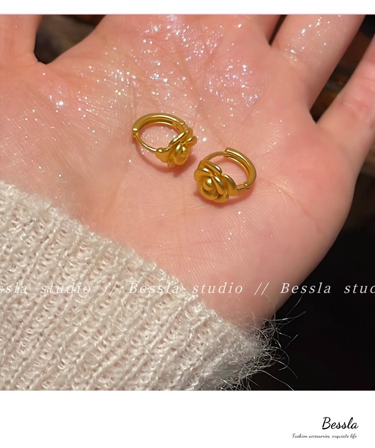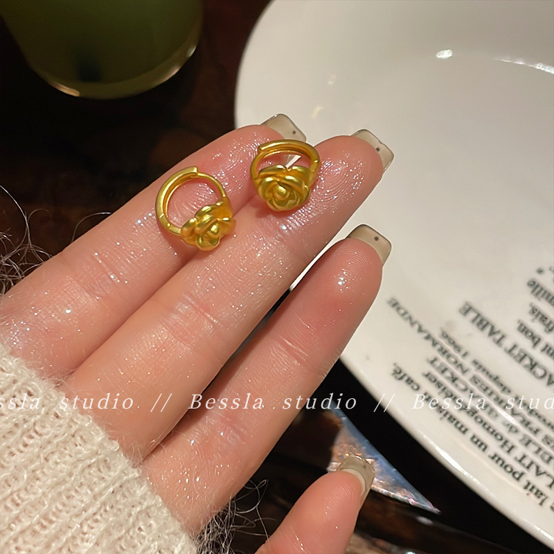 골든 로즈 올 매치 패션 우아한 틈새 간단한 황금 동백 도금 귀 버클 프랑스 빛 럭셔리 신선한