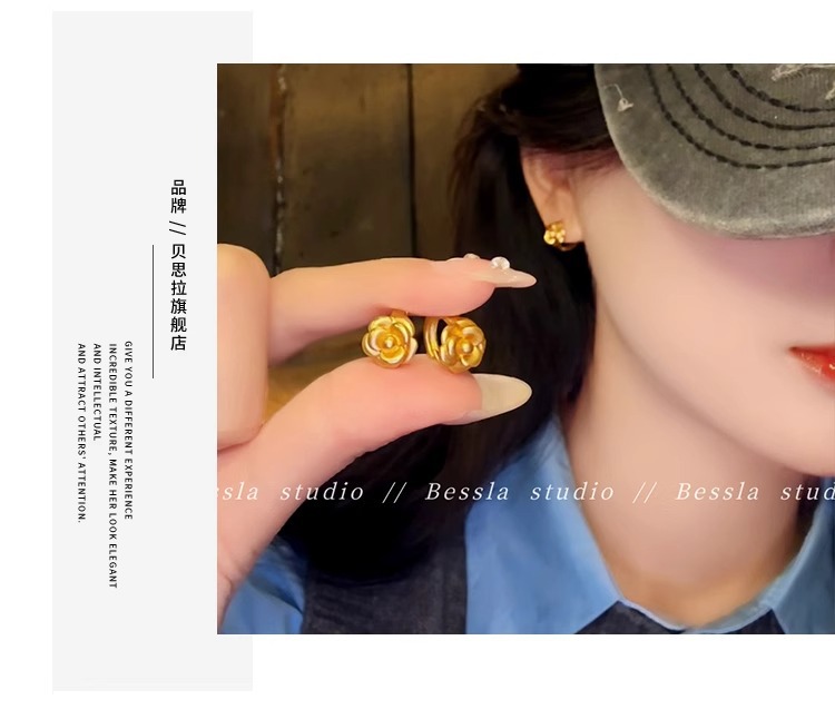 골든 로즈 올 매치 패션 우아한 틈새 간단한 황금 동백 도금 귀 버클 프랑스 빛 럭셔리 신선한스토어 가기