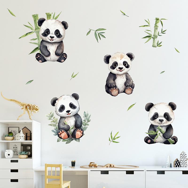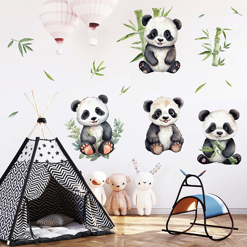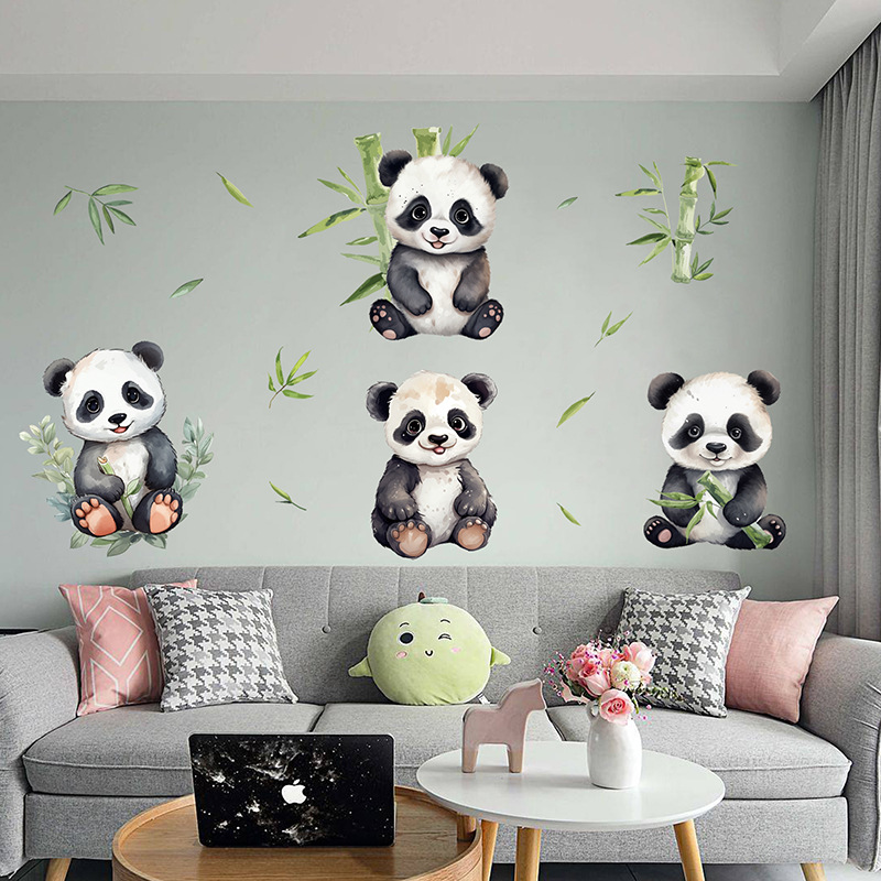 신제품 룸 장식 벽 스티커 팬더 대나무 거실 침실 TV 스티커 장식 셀프 접착 벽지