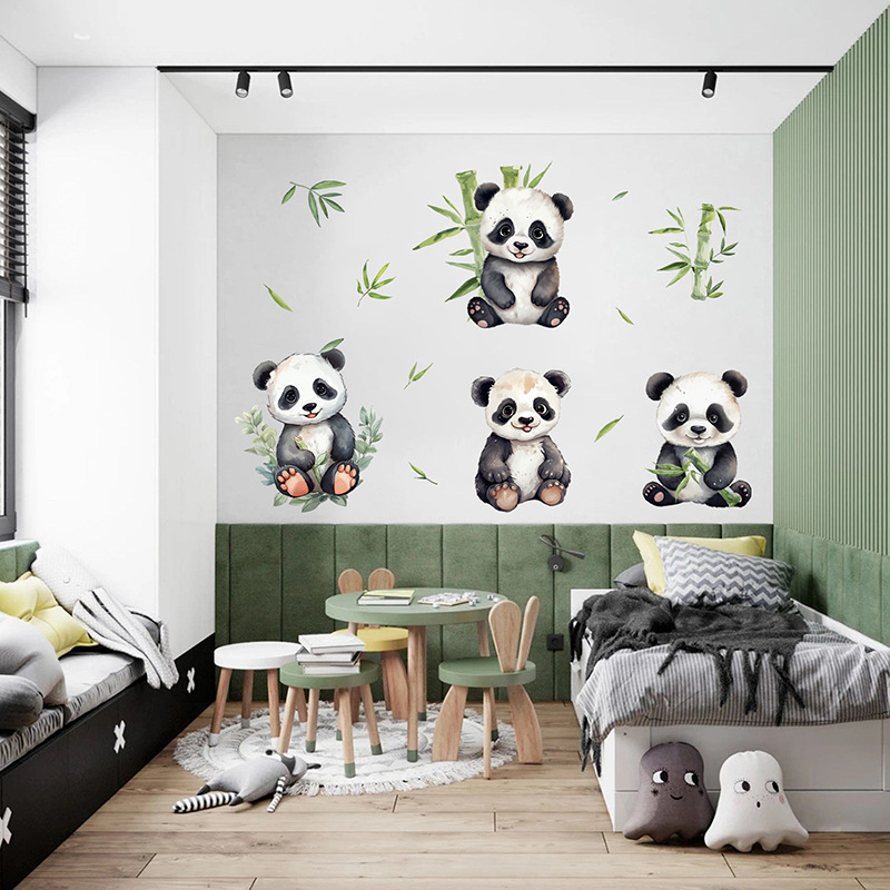 신제품 룸 장식 벽 스티커 팬더 대나무 거실 침실 TV 스티커 장식 셀프 접착 벽지스토어 가기