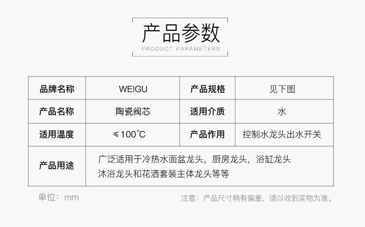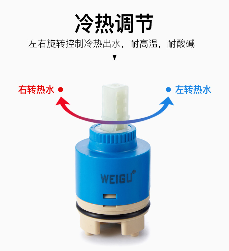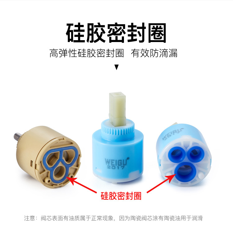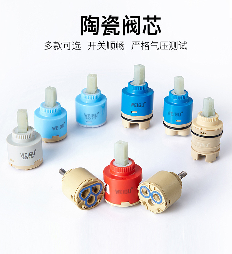 高品质陶阀芯经受50万次以上的开关操作以后仍然可以畅省力的操作,能够耐久使用。维固阀芯的耐老化、耐磨损、无需维修,保证了运行的稳定性,节约维修费用和劳动强度等等。同时,耐老化和耐磨损也使得陶瓷阀芯的使用寿命远远超过了其他阀芯的使用寿命。