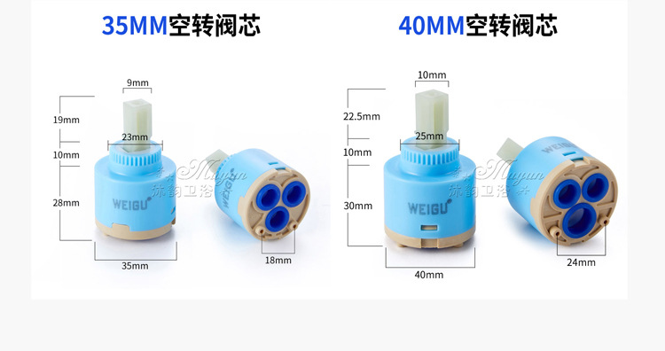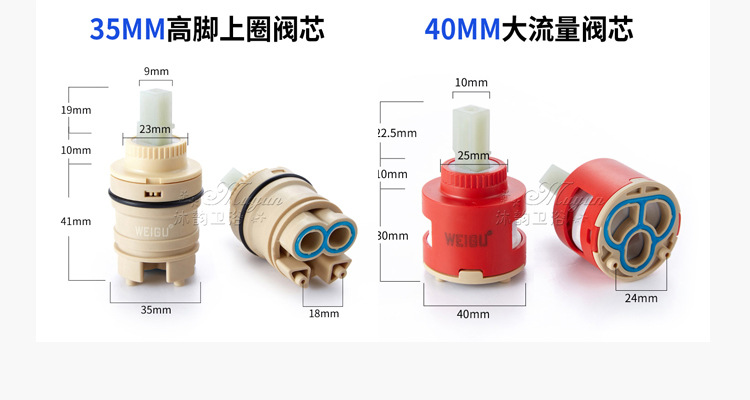 수도꼭지 밸브 코어 수입 세라믹 코어 혼합 물 냉각 및 난방 액세서리 구리 커버 세라믹 시트 35mm 높은 다리 전기 난방 40mm스토어 가기