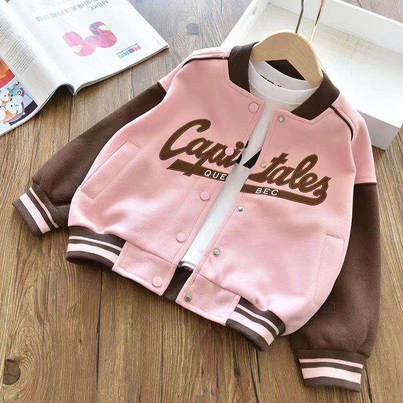 소녀 코트 봄과 가을 2025 새로운 서양식 어린이 유행 야구 세트 봄 소녀의 느슨한 캐주얼 탑