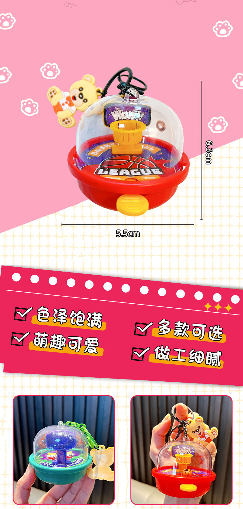 곰 바구니 슈팅 기계 키 체인 사운드 장난감 학생 키 체인 가방 펜던트 아기 기계 작은 선물 도매스토어 가기