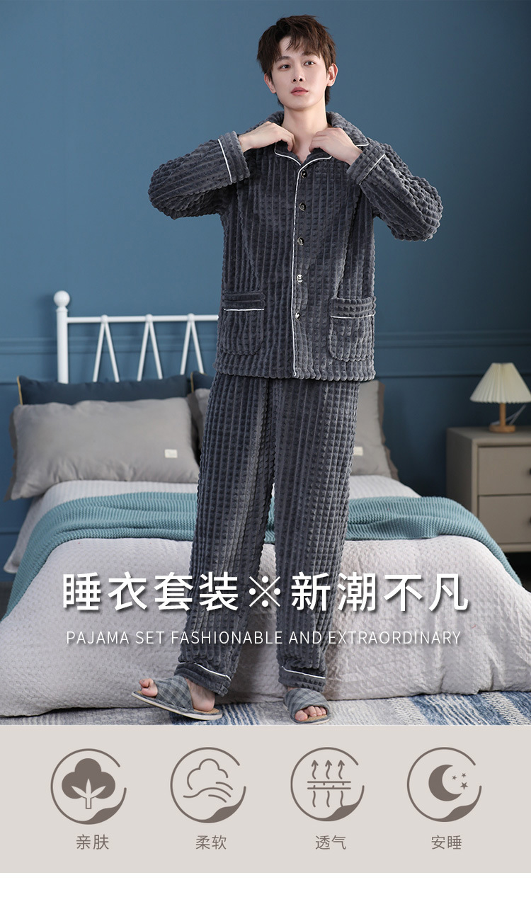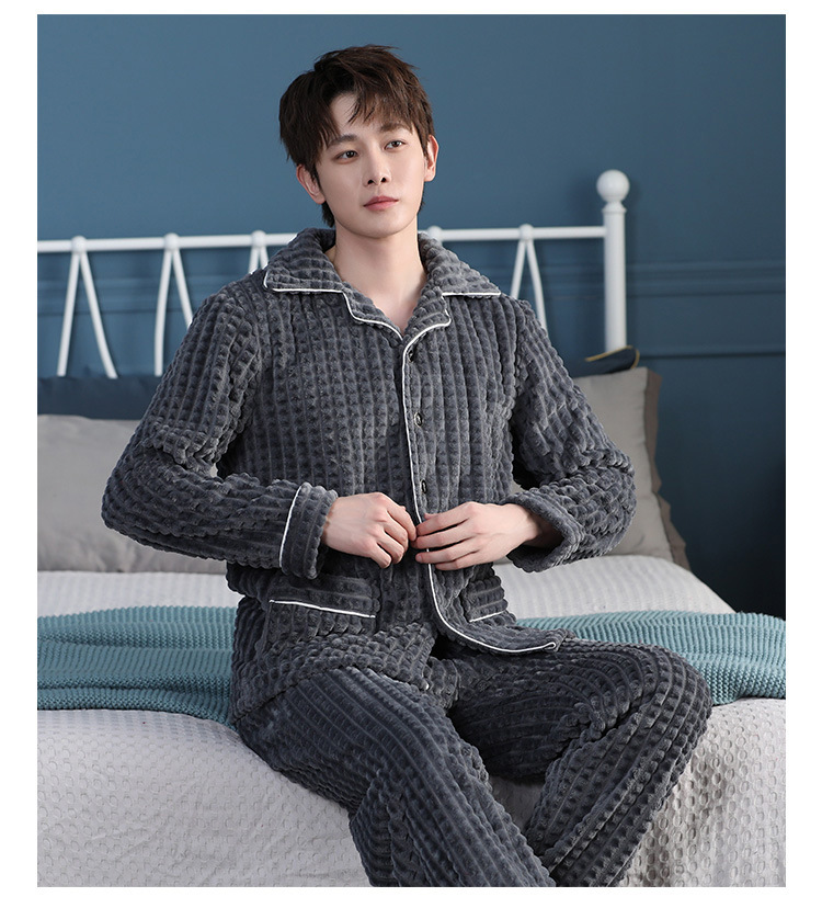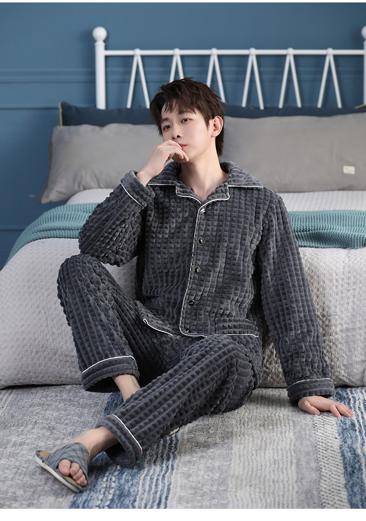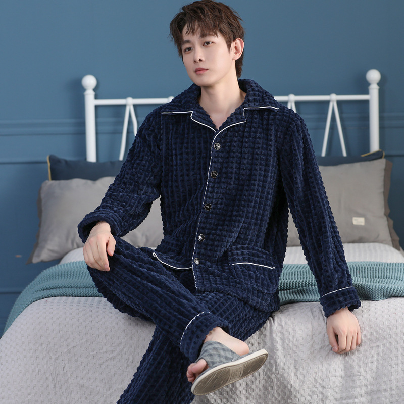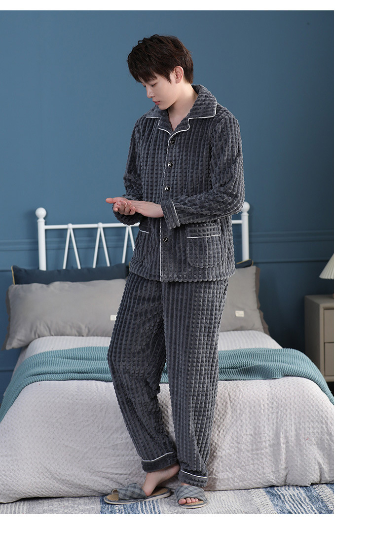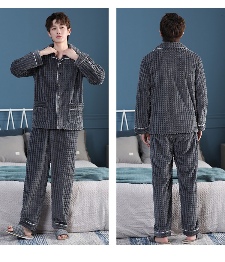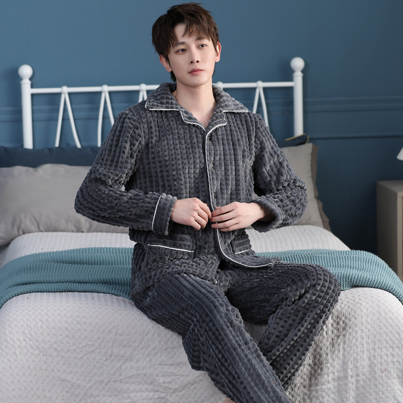 가을과 겨울 산호 양털 파자마 남자의 두꺼운 기모 플란넬 따뜻한 옷깃 플러스 사이즈 청소년 홈 의류 세트스토어 가기