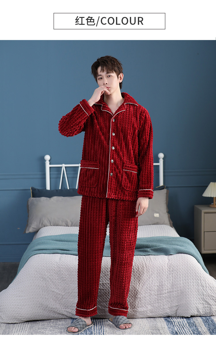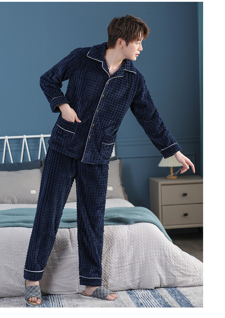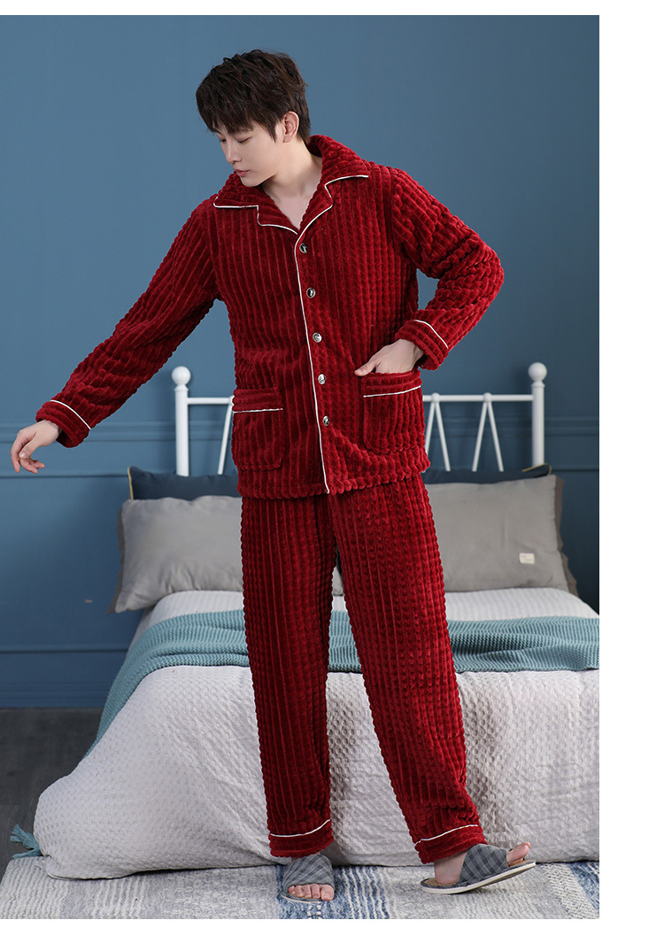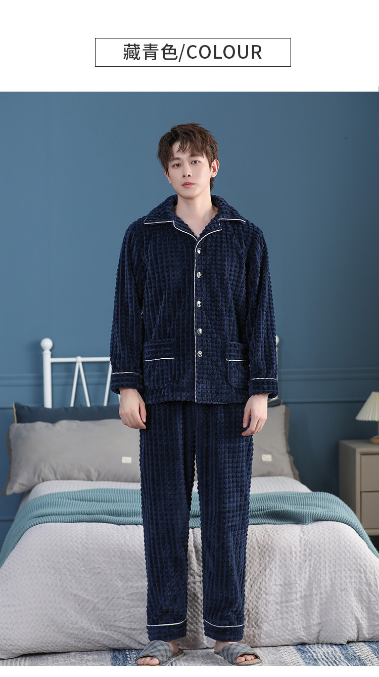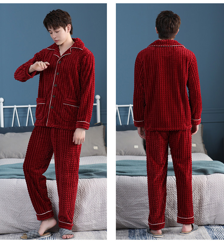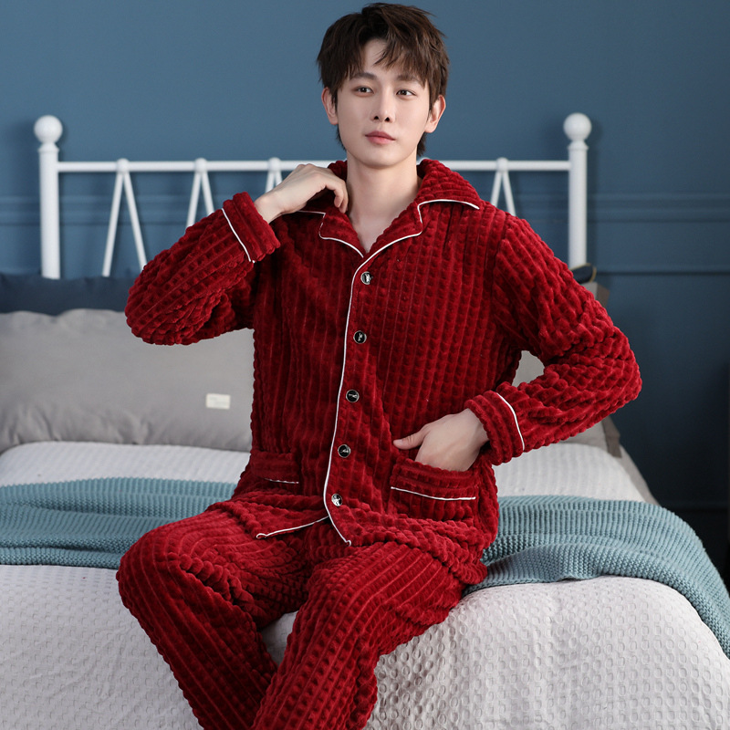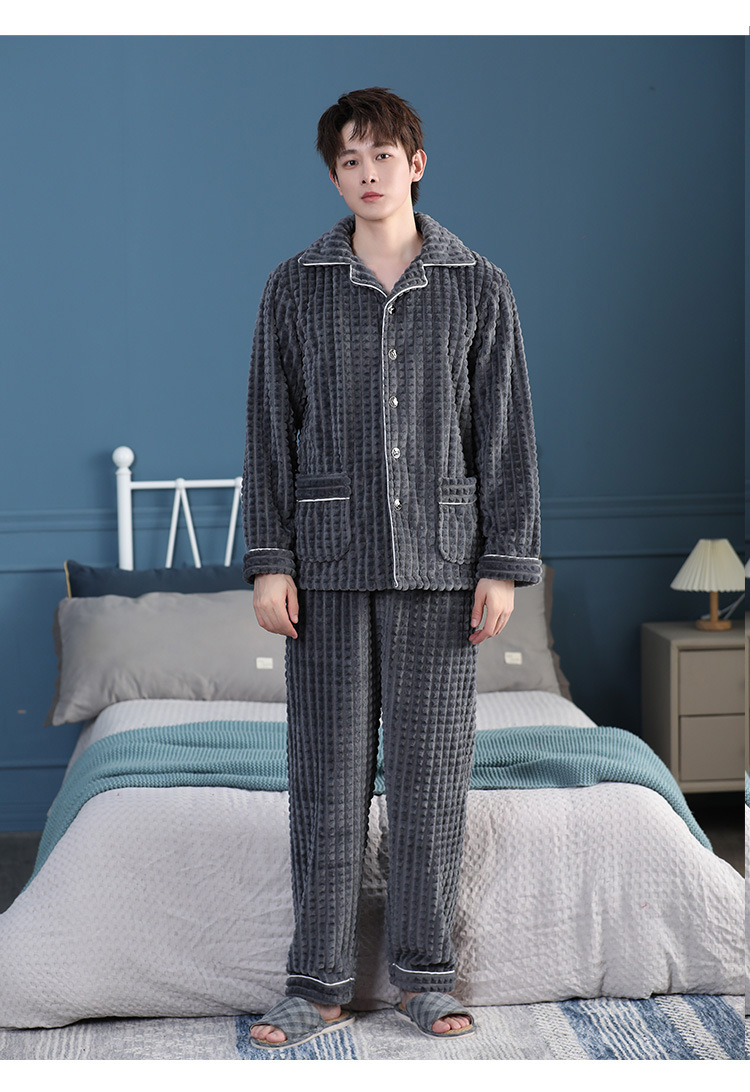 가을과 겨울 산호 양털 파자마 남자의 두꺼운 기모 플란넬 따뜻한 옷깃 플러스 사이즈 청소년 홈 의류 세트스토어 가기