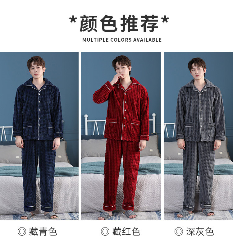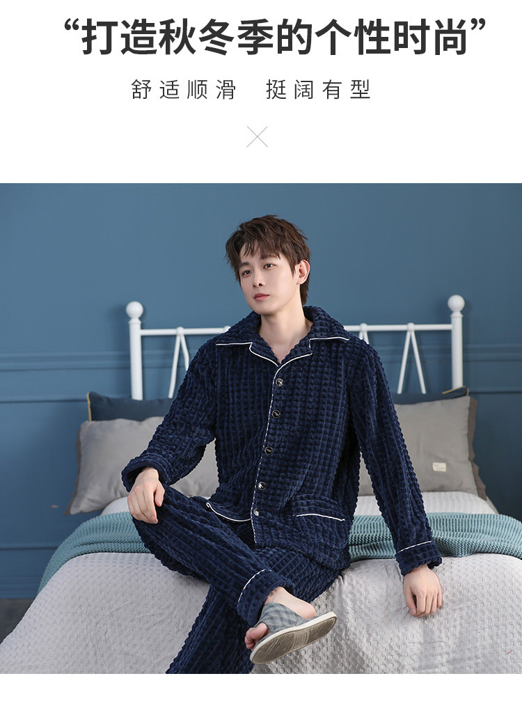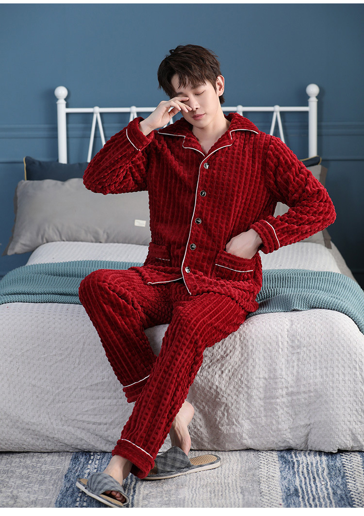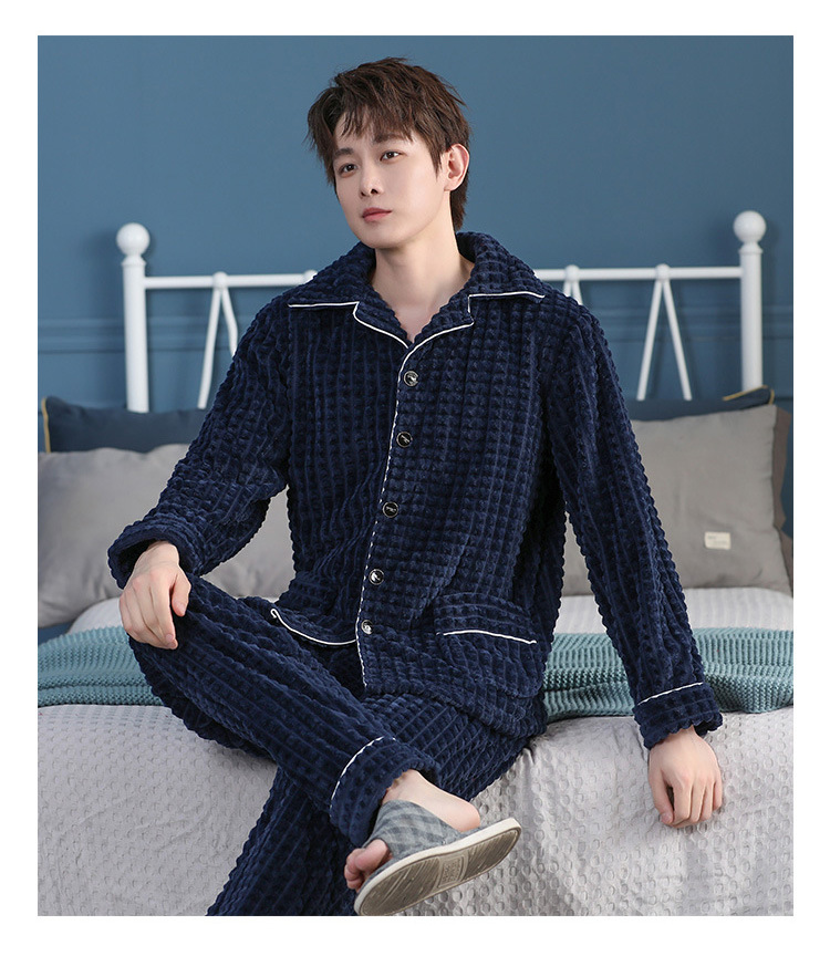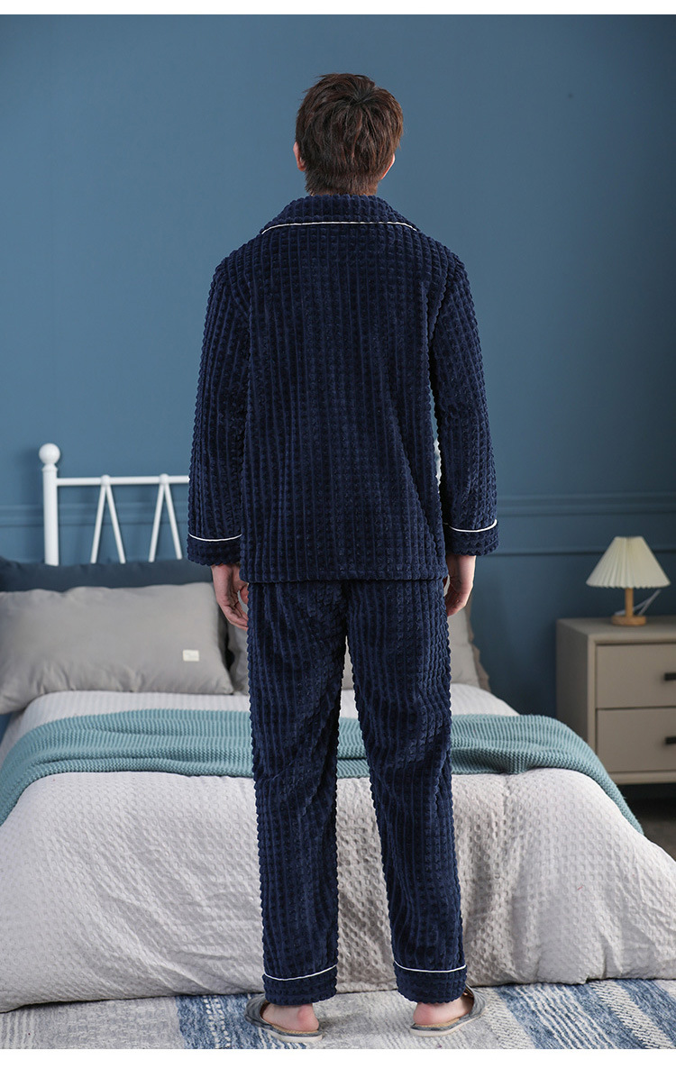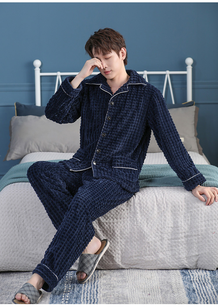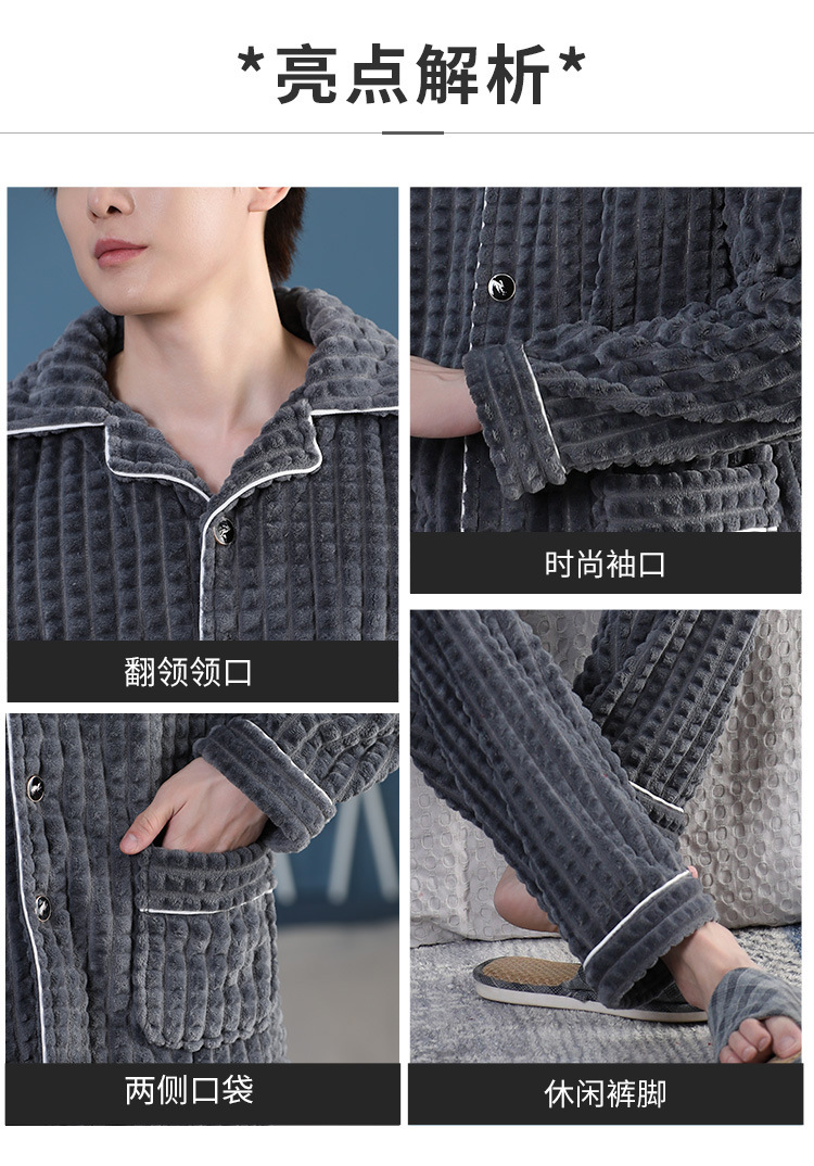 가을과 겨울 산호 양털 파자마 남자의 두꺼운 기모 플란넬 따뜻한 옷깃 플러스 사이즈 청소년 홈 의류 세트스토어 가기