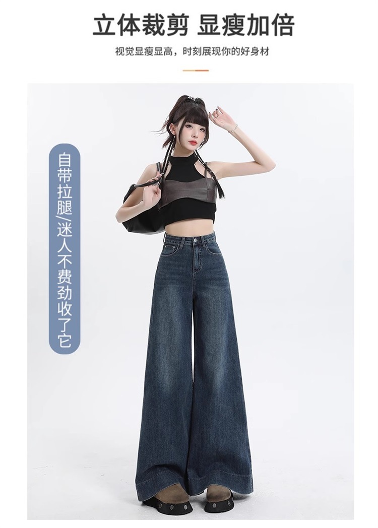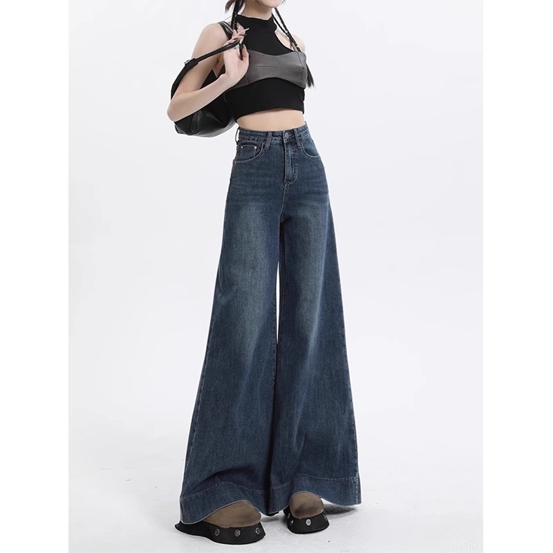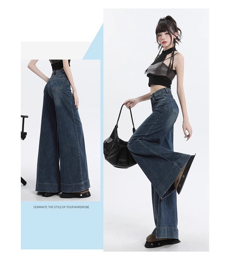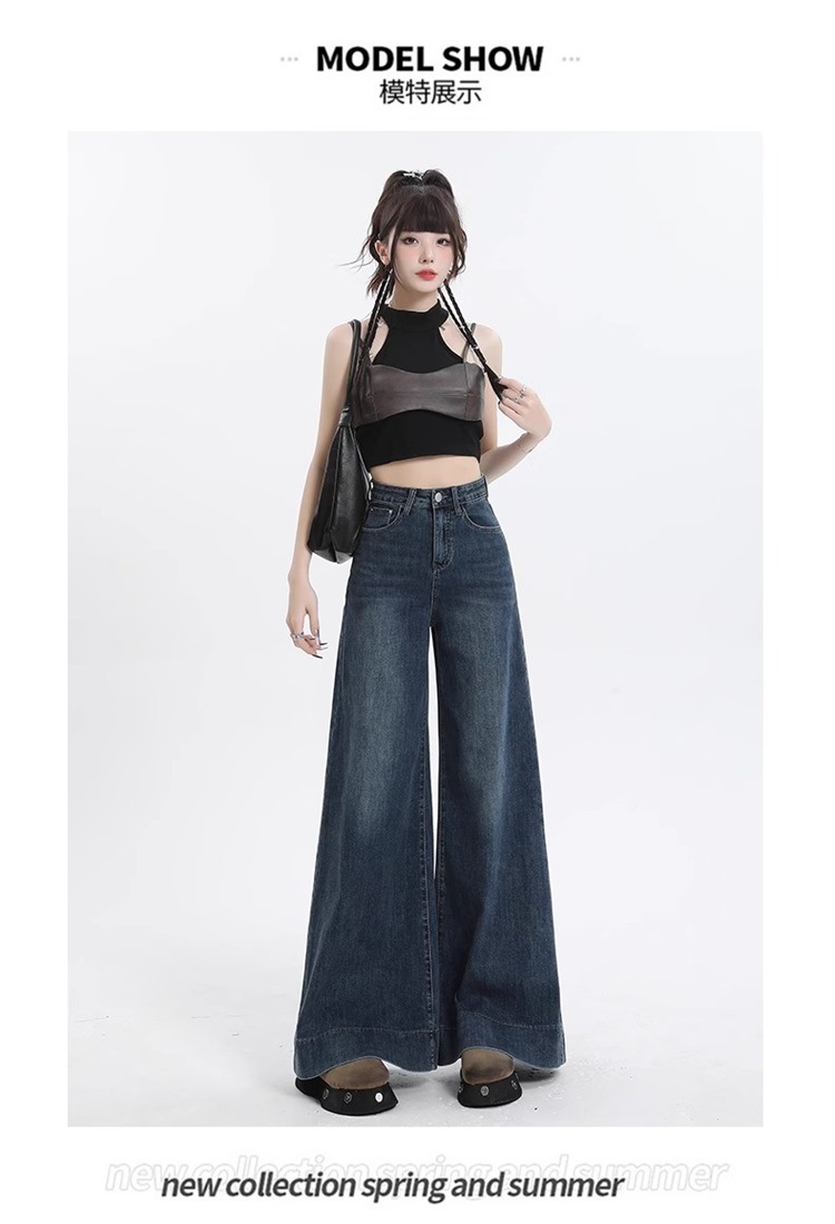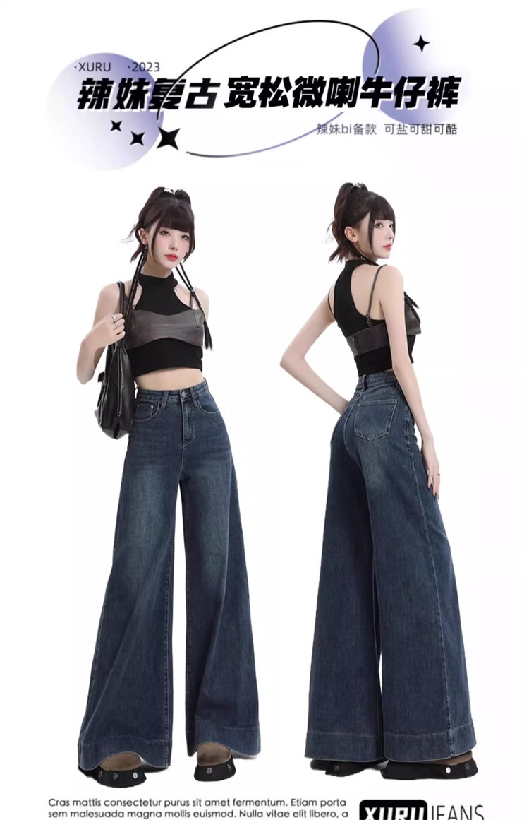 아메리칸 스타일 레트로 와이드 레그 청바지 여성 여름 유행 새로운 높은 허리 배 모양의 바디 슬리밍 트럼펫 바지스토어 가기