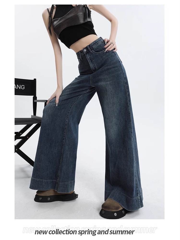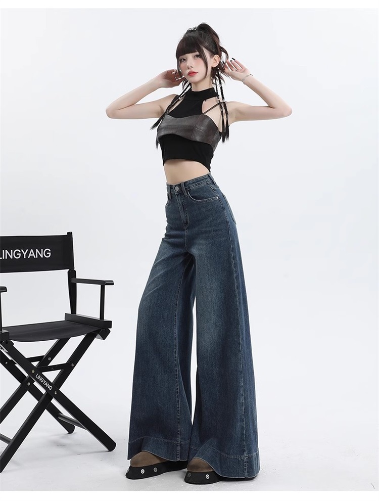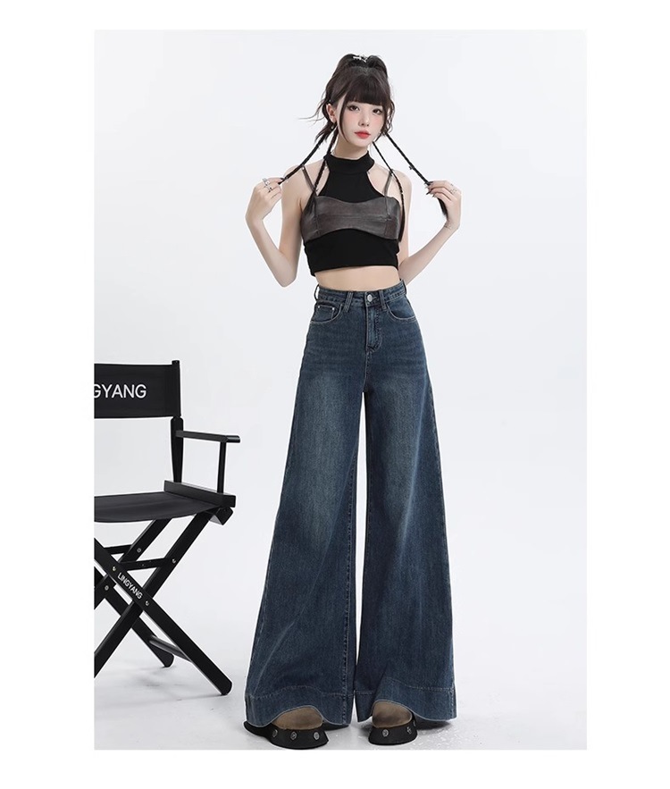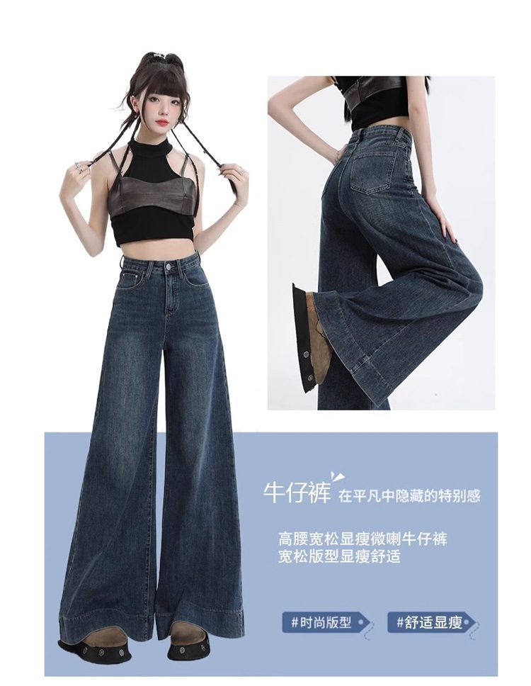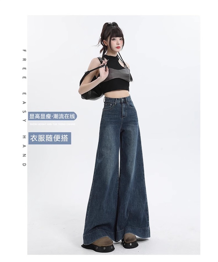 아메리칸 스타일 레트로 와이드 레그 청바지 여성 여름 유행 새로운 높은 허리 배 모양의 바디 슬리밍 트럼펫 바지스토어 가기