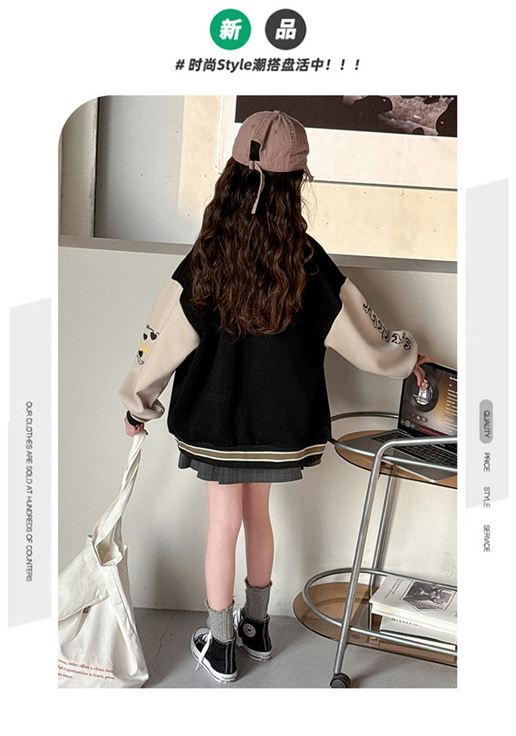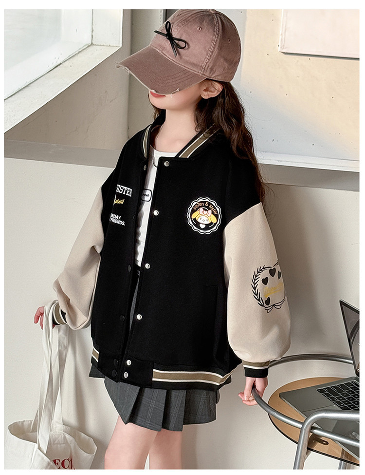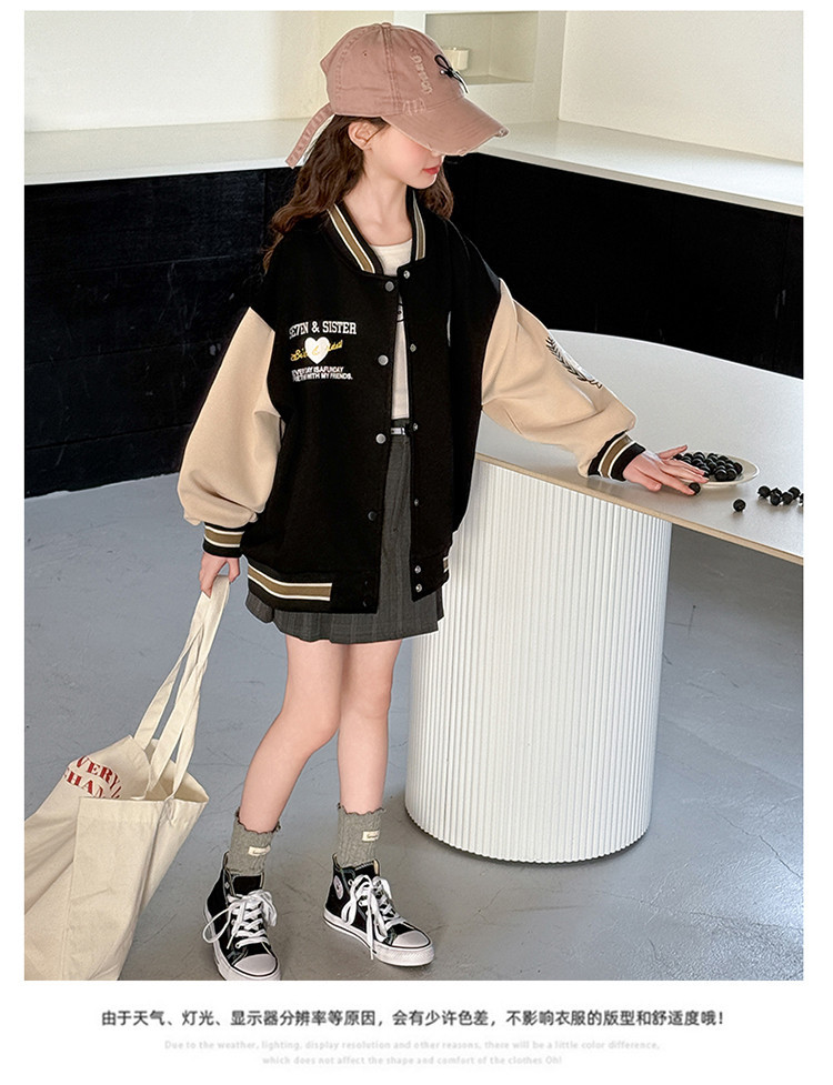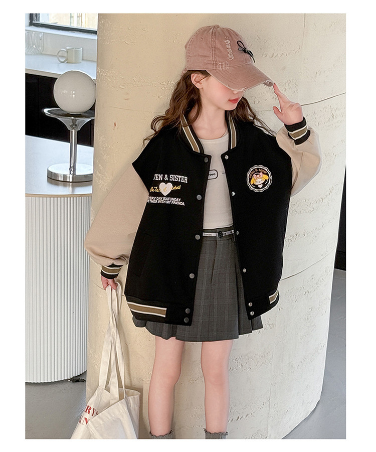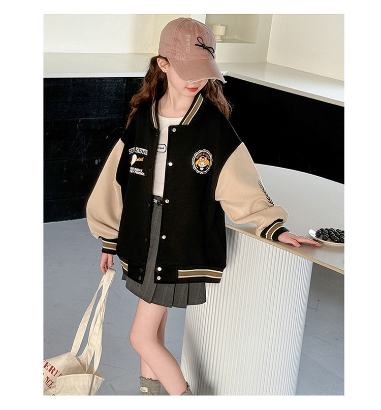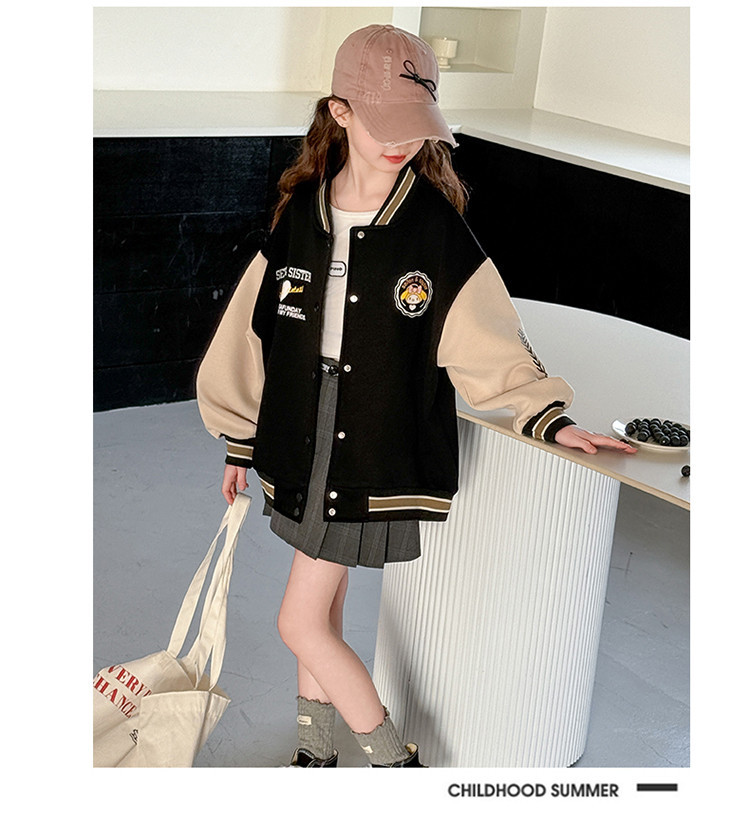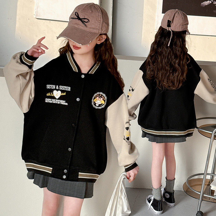 소녀 봄 컬러 블록 인쇄 야구 세트 코트 2025 새로운 어린이 서양 스타일 캐주얼 재킷 윈드 브레이커 봄과 가을 옷스토어 가기
